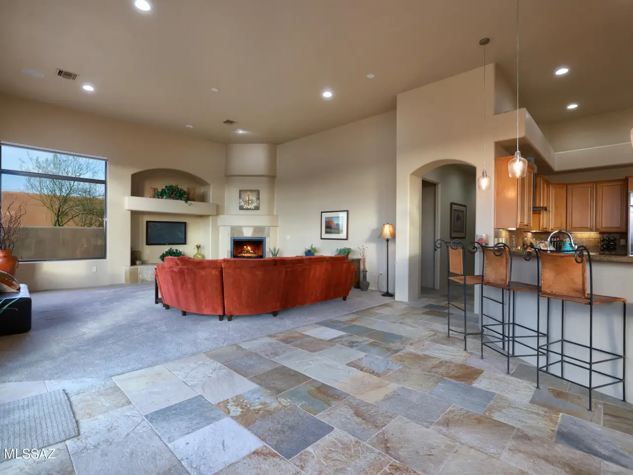 Perched atop the exclusive double-gated Sabino Mountain Community, this 4,641 sqft luxury estate offers an unparalleled desert living experience with breathtaking, unobstructed mountain views. Designed for both comfort and sophistication, this 4-bedroom, 4.5-bathroom masterpiece features oversized windows, a bright, open-concept layout, and soaring ceilings, filling the home with natural light. The expansive chef's kitchen is a culinary dream, boasting granite countertops, high-end appliances, and an oversized island--ideal for entertaining. The huge primary suite is a serene retreat, complete with a spa-like bathroom featuring a jet tub, double shower, and elegant finishes. Architectural details such as graceful arches, curves, and custom niches add to the home's modern elegance.