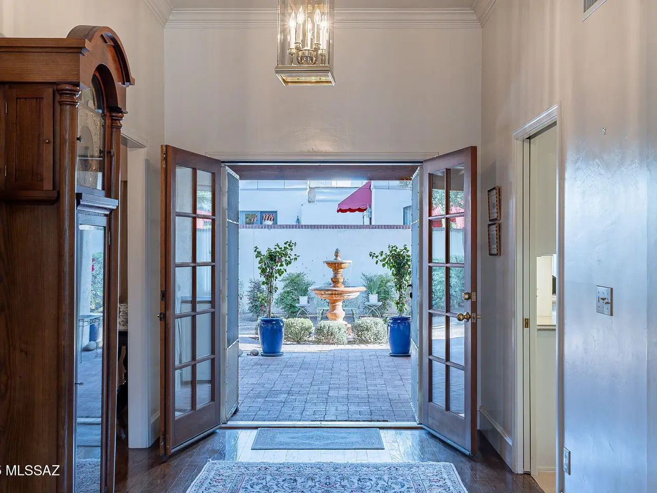 Tradition meets Southwest flair! This beautiful home welcomes you with soaring ceilings and distinctive details that add architectural interest. Wood flooring flows through the hallways. The living room, formal dining, and generously sized bedrooms are anchored by built-in bookcases and classic plantation shutters. The primary suite and bath are complete with a separate soaking tub, walk-in shower, and expansive walk-in closet. The generous kitchen is a cook's delight, featuring a new range, refrigerator, and dishwasher. A charming breakfast nook provides the perfect spot for casual dining or morning coffee. The updated garage includes a versatile storage room. The rear patio and yard area is a private oasis. Water filtration, new water heaters, and newer HVAC ensure year-round comfort.