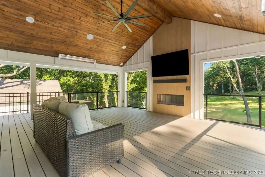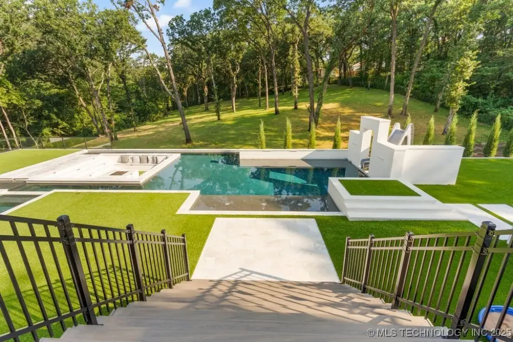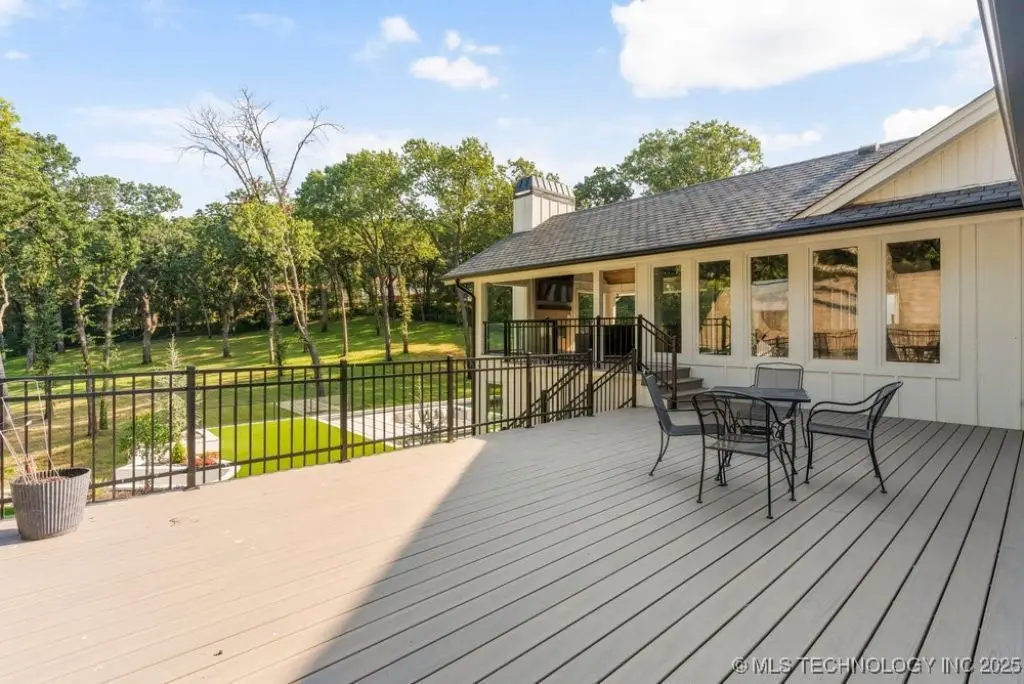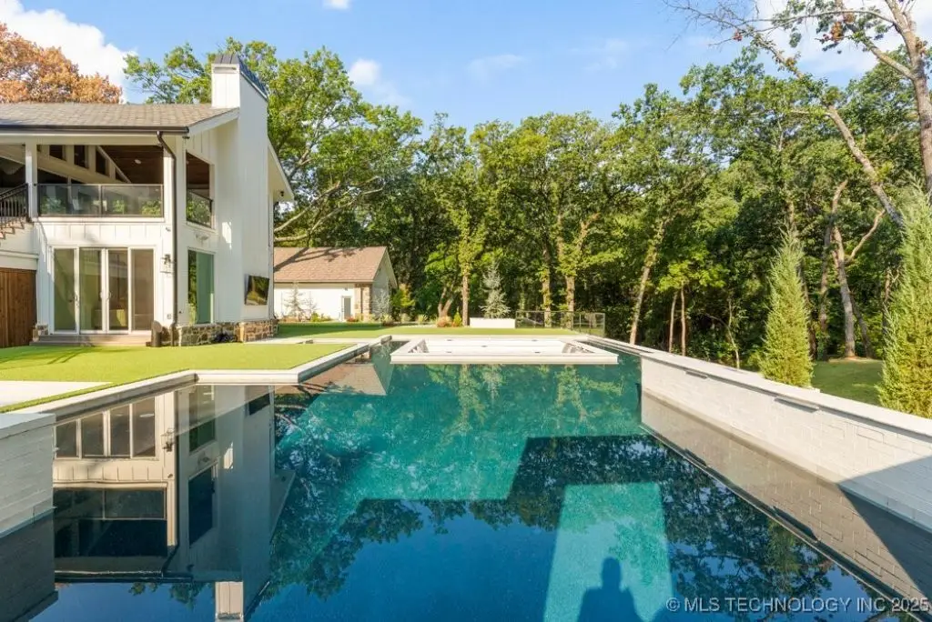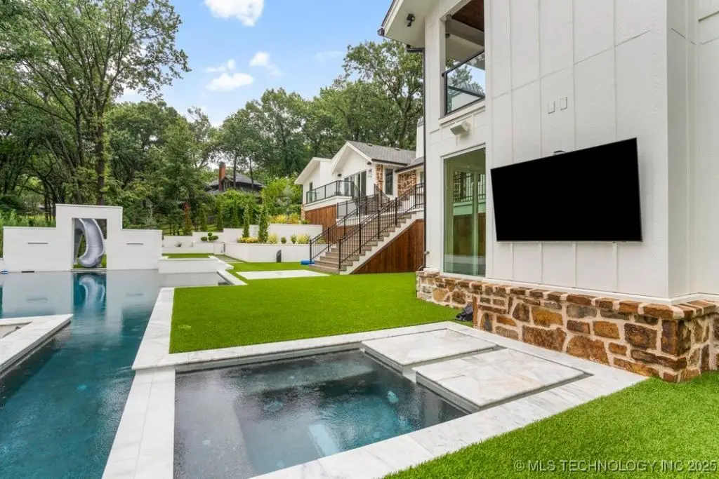 Welcome to your dream oasis in South Tulsa! This completely remodeled stunner sits on an expansive 2.5 acres (m/l), offering both luxury and space for endless possibilities. With five spacious bedrooms, including a charming bunk room, every bedroom boasts its own en suite for ultimate convenience and privacy. Step inside to discover two inviting living areas, dedicated game room and a private media room, perfect for entertaining family and friends. Inside you will find SEVEN fireplaces that boast coziest and ambience. The cabana room provides a relaxing retreat, enhancing the home's resort-like ambiance. The outdoor space is nothing short of spectacular! Multi-level decks beckon you to the impressive backyard, featuring a stunning Gunite pool, complete with cascading water features and a thrilling water slide. Gather around the sunken fire pit that comfortably accommodates over 20 guests, perfect for cozy evenings under the stars. The putting green adds an exciting touch for the golf enthusiast, or the outdoor kitchen beckons for all alfresco dining and entertainment. This remarkable home is truly a must-see, an extraordinary blend of comfort, style, and outdoor fun that defines the essence of luxurious living. A true MUST SEE!!