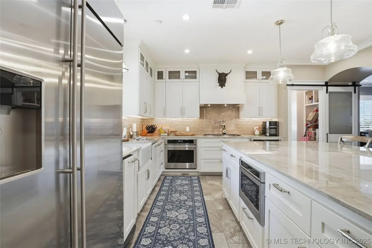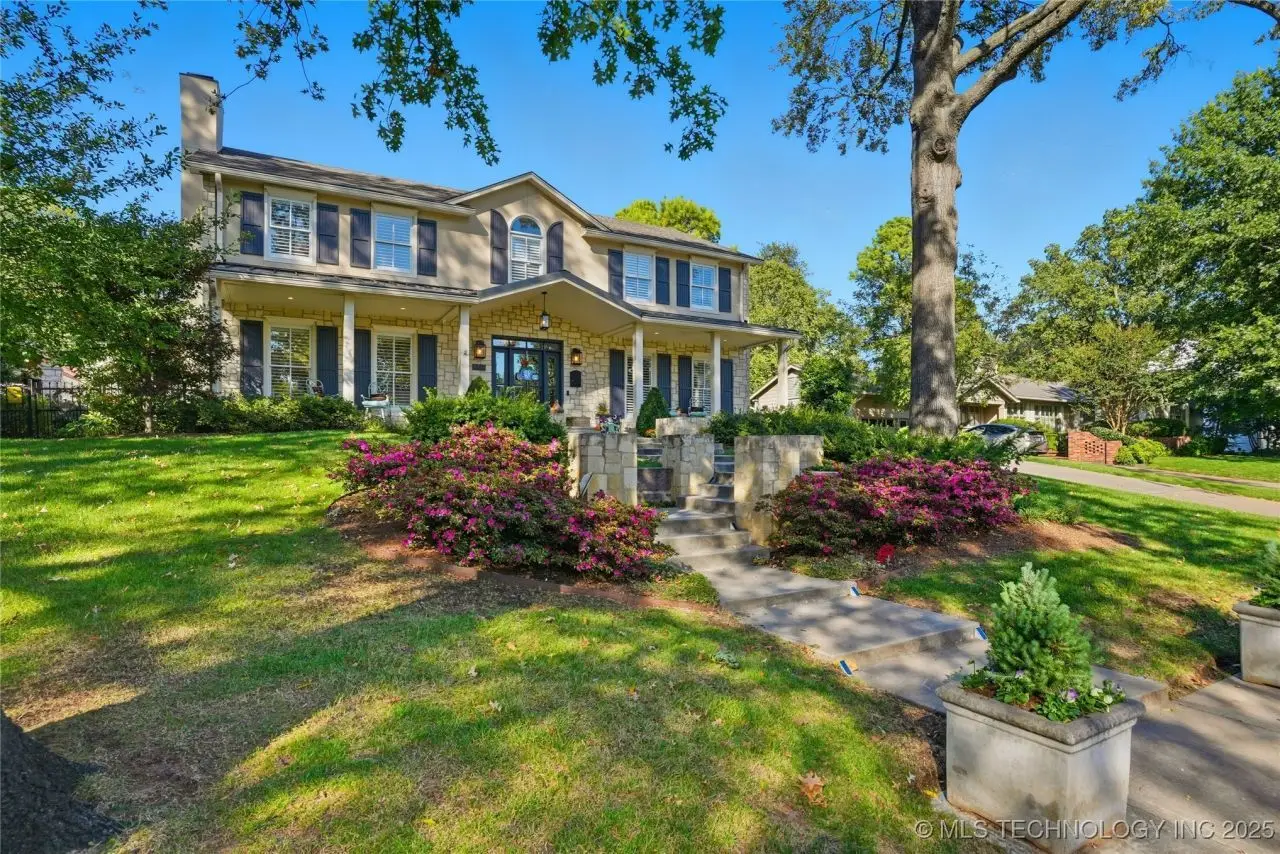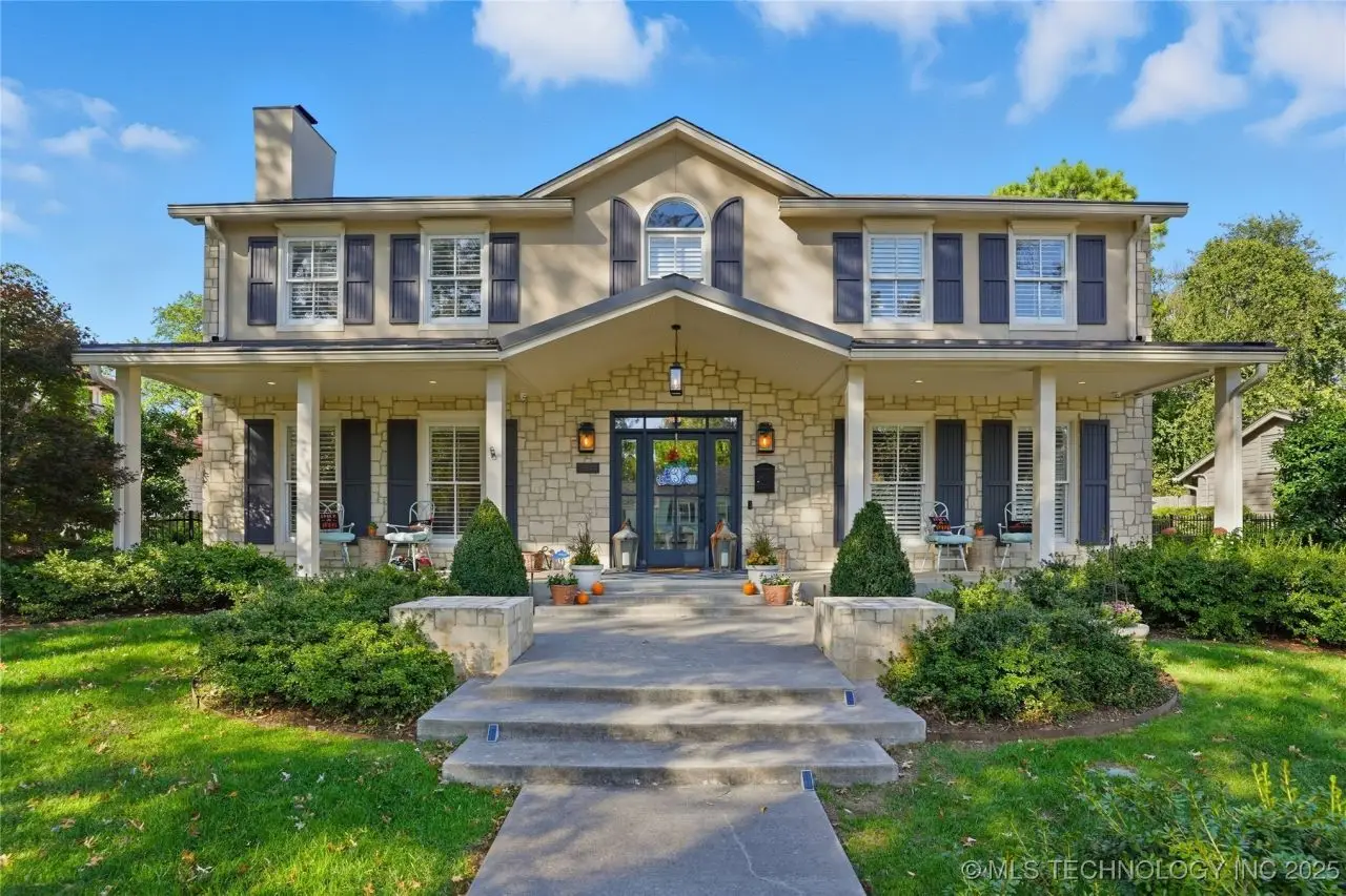 What does a million dollars and a year-and-a-half renovation get you in Midtown? This breathtaking Modern Farmhouse in the Bren Rose neighborhood near Utica Square and Brookside perfectly blends timeless charm with refined luxury. Originally built in 1993, this home was completely reimagined by Oellien Design, with over 1,000 sq ft (AP) added to create a thoughtful, livable floor plan that feels both classic and new. Step inside to find stunning hardwood floors throughout, reclaimed beams by Timber & Beam, and a layout designed for connection and comfort. The chef's kitchen was taken to the studs and rebuilt with stunning Brazilian Perla Venata quartzite countertops, a massive island, custom cabinetry, and Monogram appliances. TWO primary suites offer flexibility-one upstairs honoring the original design, and one newly added downstairs with a spa-like bath, double vanities, freestanding tub, and private access to the laundry and master closet. The outdoor spaces are just as inviting. A new covered front porch with metal roof, stone walkway, gated driveway, and a fully equipped outdoor kitchen make this home ready for Tulsa's best seasons. With a three-car garage (plus climate-controlled storage), multiple living areas, a formal dining room, and designer finishes throughout, every inch has been curated for quality and style. From the stone and stucco exterior to the new roof (Oct 2025), sprinkler system, and new landscaping, this is Midtown living at its most polished and practical. It's not just a renovation. It's a reimagination of what a Tulsa farmhouse can be.