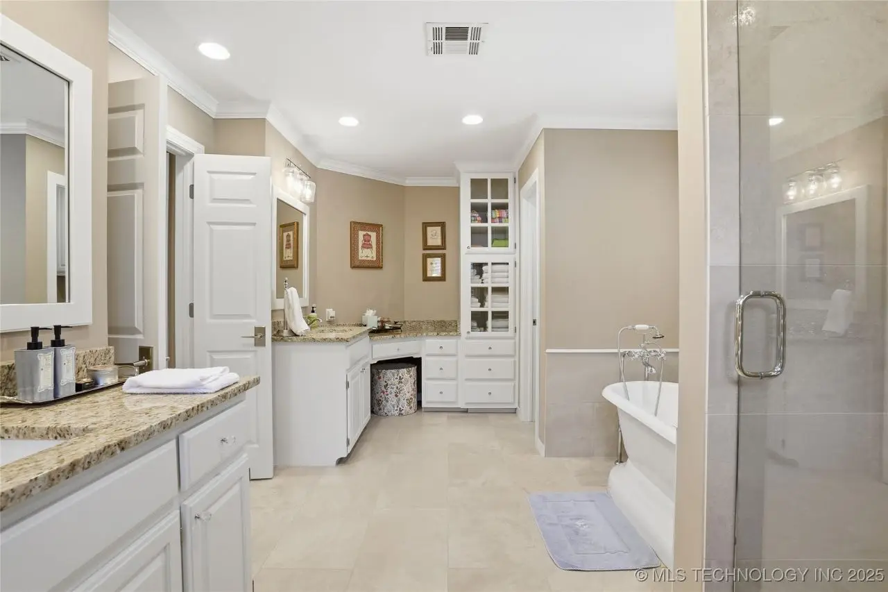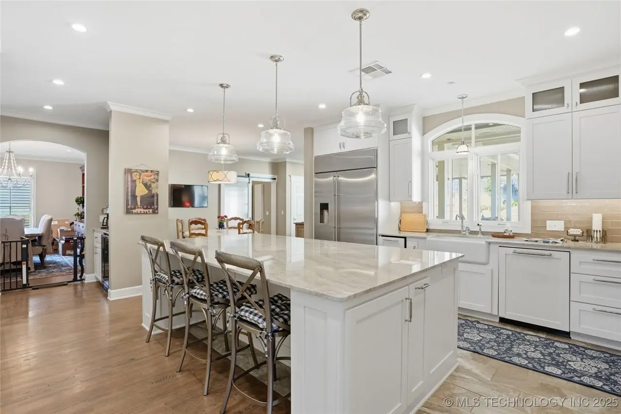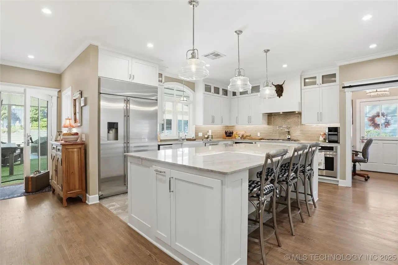 What does a million dollars and a year-and-a-half renovation get you in Midtown? This breathtaking Modern Farmhouse in the Bren Rose neighborhood near Utica Square and Brookside perfectly blends timeless charm with refined luxury. Originally built in 1993, this home was completely reimagined by Oellien Design, with over 1,000 sq ft (AP) added to create a thoughtful, livable floor plan that feels both classic and new. Step inside to find stunning hardwood floors throughout, reclaimed beams by Timber & Beam, and a layout designed for connection and comfort. The chef's kitchen was taken to the studs and rebuilt with stunning Brazilian Perla Venata quartzite countertops, a massive island, custom cabinetry, and Monogram appliances. TWO primary suites offer flexibility-one upstairs honoring the original design, and one newly added downstairs with a spa-like bath, double vanities, freestanding tub, and private access to the laundry and master closet. The outdoor spaces are just as inviting. A new covered front porch with metal roof, stone walkway, gated driveway, and a fully equipped outdoor kitchen make this home ready for Tulsa's best seasons. With a three-car garage (plus climate-controlled storage), multiple living areas, a formal dining room, and designer finishes throughout, every inch has been curated for quality and style. From the stone and stucco exterior to the new roof (Oct 2025), sprinkler system, and new landscaping, this is Midtown living at its most polished and practical. It's not just a renovation. It's a reimagination of what a Tulsa farmhouse can be.