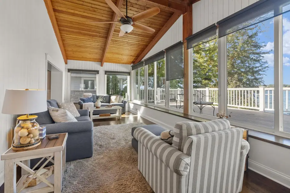 Enjoy lake living at its best with a prof. designed outdoor kitchen, fire pit, deck, and hardscaped patio overlooking the water--perfect for entertaining or quiet evenings by the shore. Updated 4BR, 3BA home with 57' of level, sandy frontage on all sport Lake Mary. Newer hardwood floors, granite countertops, custom wood trim/doors, and renovated baths. A spacious living room with a stone gas fireplace, sunroom with deck access and lake views, and large eat-in kitchen offer inviting spaces for family and guests. The primary suite overlooking the lake provides a private escape. Prime location! Walk to town, and just a short drive to Wilmot Mountain (Vail Resorts) and Lake Geneva. Ideal as a full-time residence or weekend getaway--a rare combination of style, comfort, and level lake frontage.