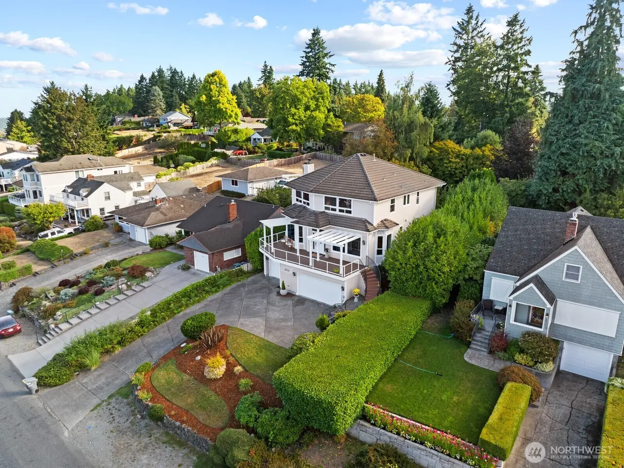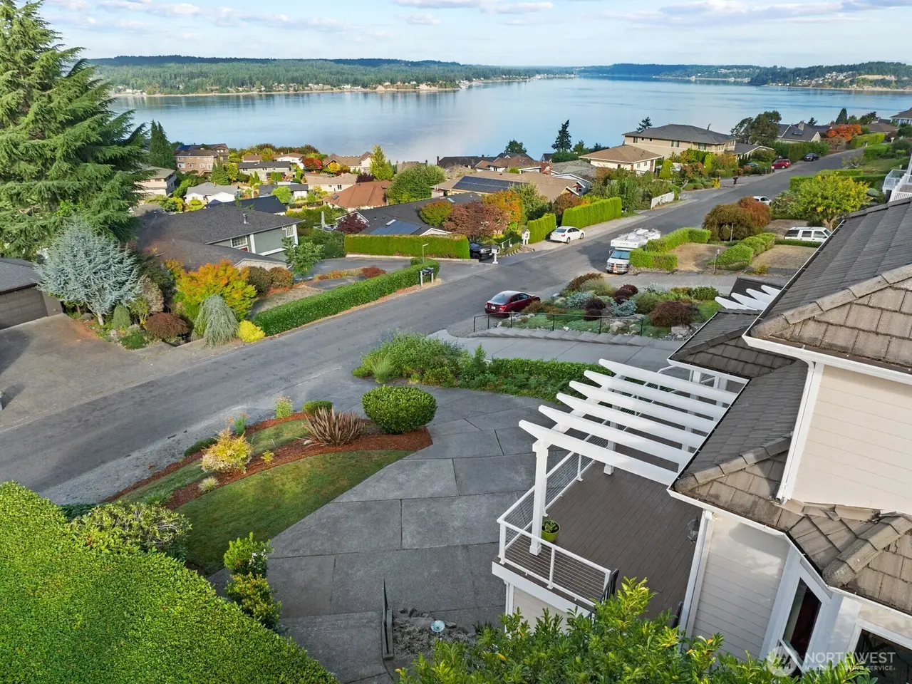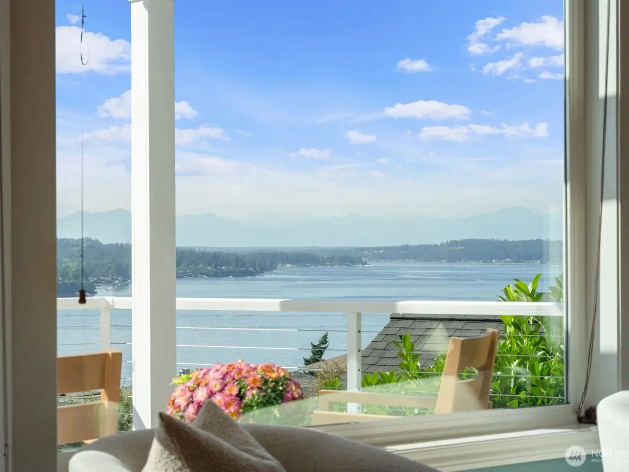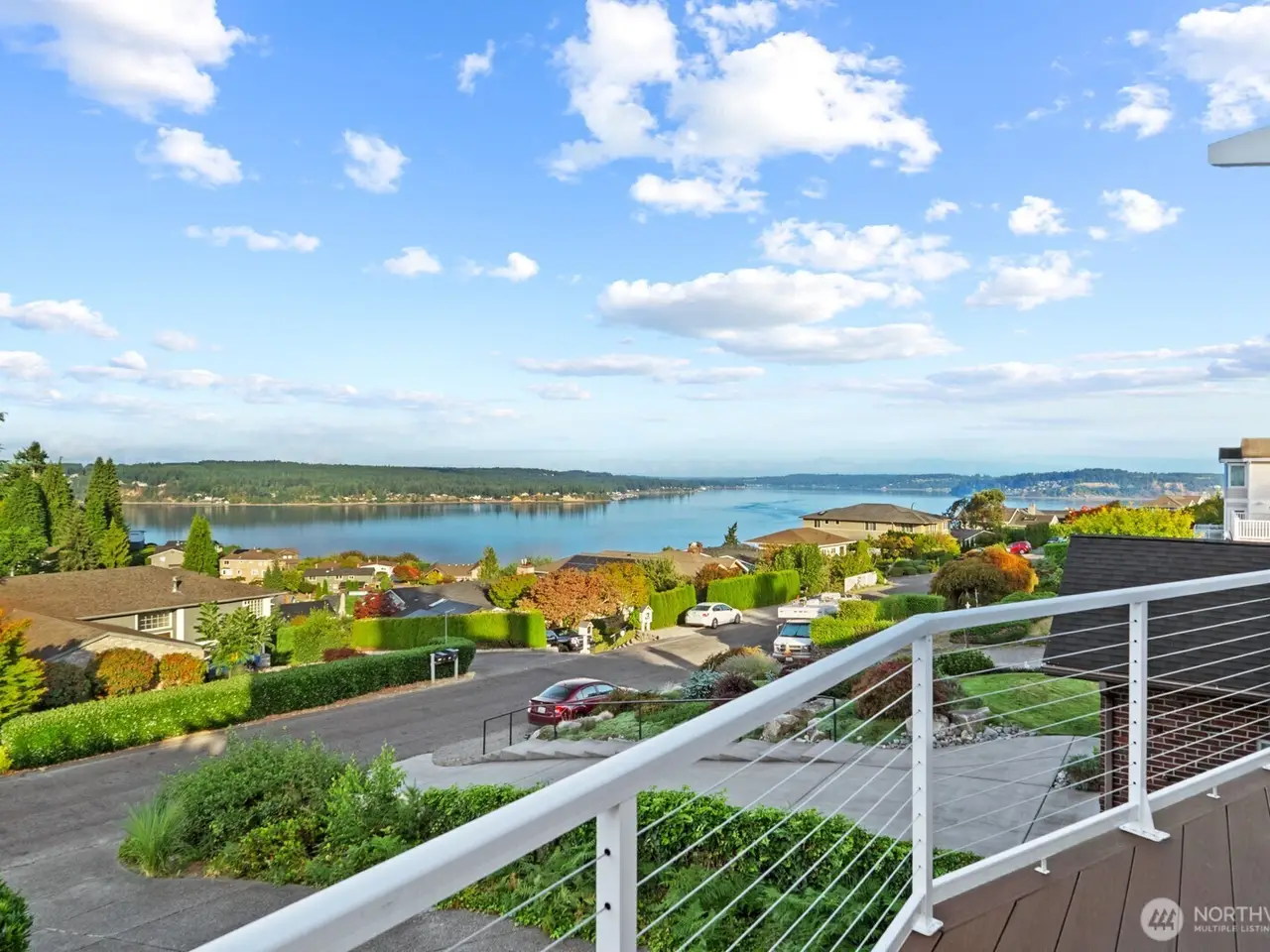 Unobstructed, sweeping views of the Olympic Mountains & Puget Sound - stretching from Fox Island, Hale Passage & Pt. Fosdick, down to the Narrows - right from your living room. Residence sits on a large 11,000 square foot lot offering both privacy & space to enjoy the outdoors. Fully fenced yard with generous deck & fruit trees. Enormous kitchen, big windows, perfect for entertaining. Wide-open floor plan with tall ceilings & big windows, enhanced by hardwood floors, hand-carved archway & cozy gas fireplaces. Features a lower level bonus room with additional dwelling potential or studio. A/C & elegant updates throughout. Located in UP School district. Just a short jaunt to Chambers Bay Golf Course, along with great coffee shops, grocery & dining.