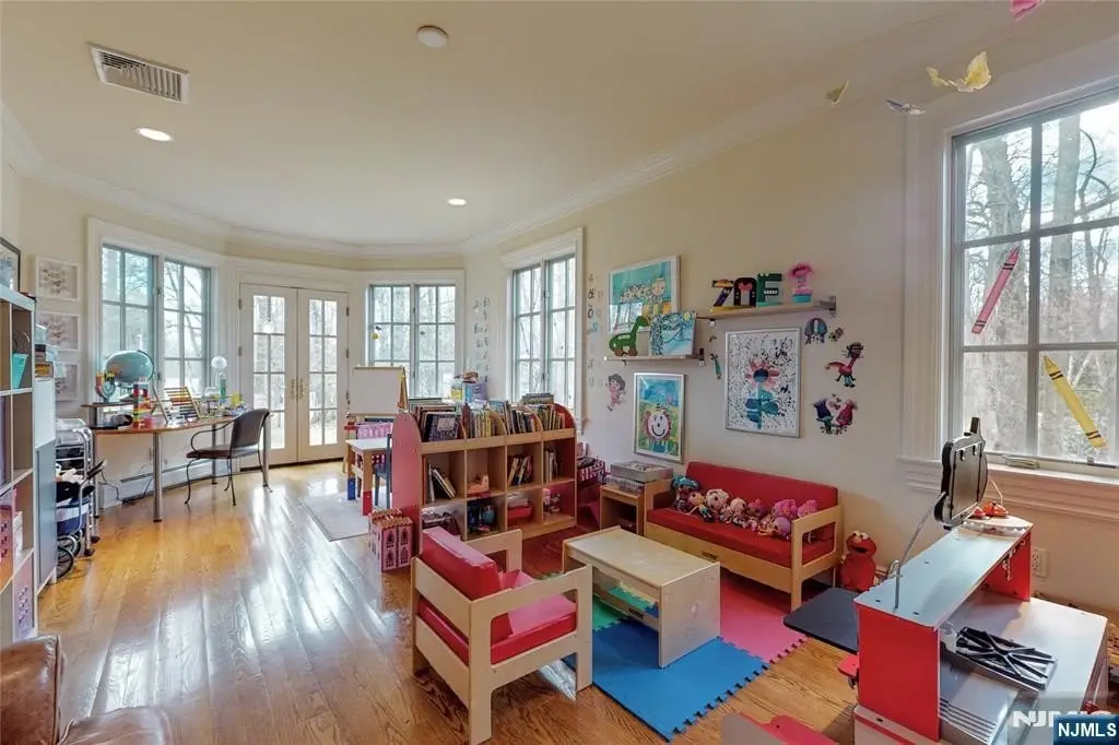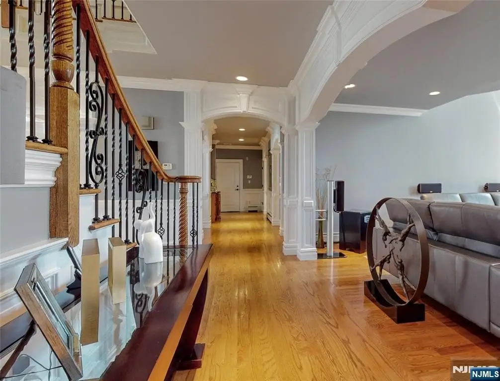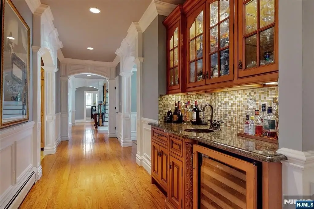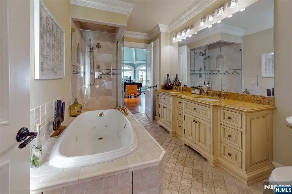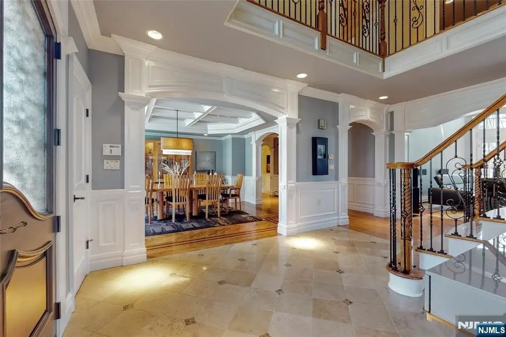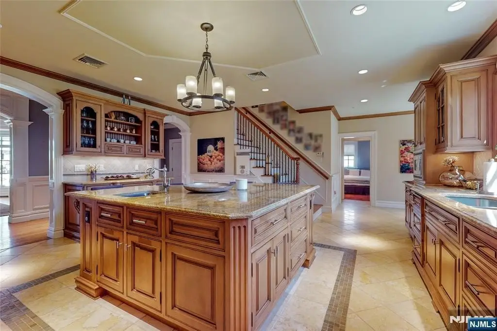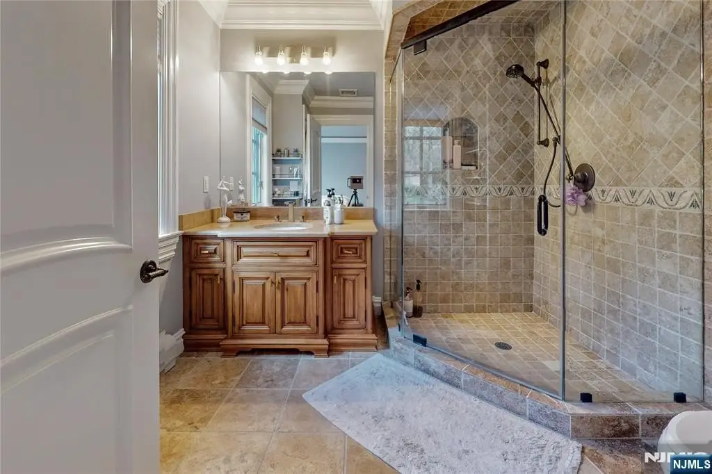 Stunningly elegant luxury manor situated at the end of a quiet cul-de-sac on .9 acres of property in beautiful Upper Saddle River. This home boasts 5 BRs on the 2nd fl. Relaxing & spacious primary suite w/sit area, 2 walk-in clsets, spa-like primary bth, addl storage closets, tray ceil & gas fpl. There are 2 additional en suite BRs w/private bths & walk-in custom closets in addition to 2 more BRs that share J&J bath between. The 2nd fl has a lrge landing & private sitting area w/ Juliette balcony overlooking stunning 2 story grt rm & focal fpl. The 1st fl boasts a banquet-sized DR, gorgeous LR w/FPL, a private library/office w/French doors to the outside (currently used as playroom), a gourmet Salerno kitchen w/cntr island & sunny breakfast room, custom butler's pantry/bar w/U-line wine ref, walk-in storage pantry, guest PR & spacious mudroom/laundry room, an addl back staircase to the 2nd flr, as well as a private den w/ensuite full bth & outside entrance to the backyard creates multiple options for addl office space or extended family on this main level. Expansive basement is plumbed for future bath and/or bar area should the next owner desire even more living space. Detailed trim work & tasteful custom detailing throughout. Convenient circular drive. Move right in & enjoy the desirable town's award winning schools, beautiful parks & recreation programs. Close proximity to schools, shopping & major highways/transportation. This home has it all!