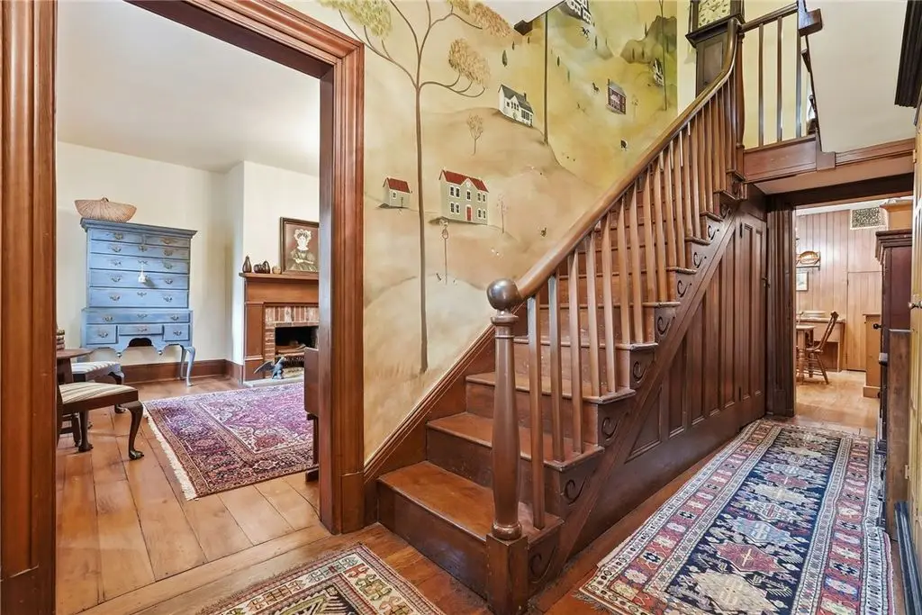 Step back in time with one of Upper St. Clair's heritage homes, beautifully restored over the past 50 years to preserve its authentic character and craftsmanship. Nestled on a serene and private 1.7-acre setting, this timeless property boasts period details throughout- seven fireplaces, beautiful hardwood floors, two staircases, hand-painted murals and lighting thoughtfully selected to compliment the home's era. The spacious main level features a family room with woodburning fireplace, a dining room with porch access, a formal living room and kitchen with original built-in cabinetry. Take either staircase upstairs to discover four bedrooms, highlighted by the primary suite with private dressing room. A charming, detached summer kitchen offers endless possibilities for guest space, entertaining or creative projects. Outside, enjoy time on the covered porch, side patio or in the expansive backyard. A wonderful opportunity to own a piece of history.