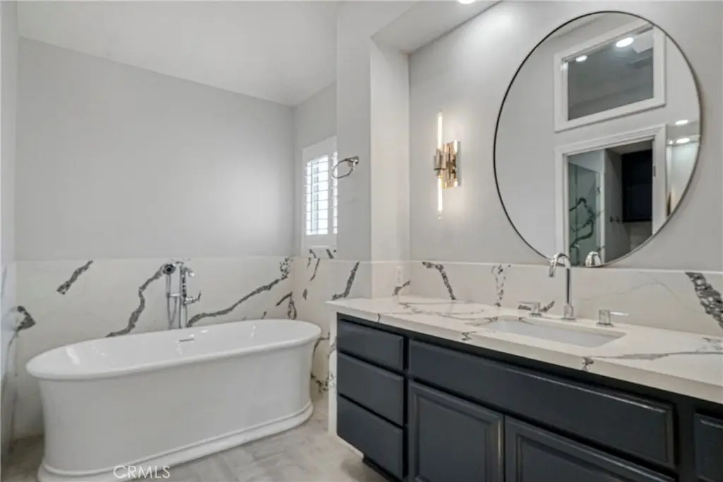 Welcome to The Summit in Valencia. Featuring this modern and pristine home with designer flair! Charming and remodeled for the most discerning occupants * This 4 Bedrooms and 3 Baths home with 2 spacious Bedrooms and 2 Bathrooms on the 1st level. * 2nd level features the Primary Bedroom with en-suite Bathroom, Walk in Closet, Newly remodeled Shower, Double Sink, and Soaking Tub complements the unique marbled Quartz wall panels, the look and feel of luxury! * There is also a 4th Bedroom on the 2nd level. * New Interior and exterior paints, Plantation Shutters, New laminated Floors, All 3 Bathrooms have been remodeled with Quartz shower walls and countertops, New Recessed Lighting, Livingroom and Family Room with Two Fireplaces, Light and Bright Kitchen with Appliances.* Separate Laundry Room with Washer/Dryer Included * There is Work station in the 3-Car Garage, can be a home office or workshop with Air Conditioning * Garage with automatic garage door openers and plenty of cabinet storage and additional Attic storage space with telescopic ladder for convenience. * Relax in your own private heated Spa * Front and rear yard is Landscaped with Energy saving water drip system * This home is truly a pride of ownership with attention to details. * Centrally located, prime sought after neighborhood, walk to nearby Valencia Town Center Mall, College of the Canyons, restaurants, shops, entertainment, award winning schools and freeway close * With low HOA and No Mello-Roos. The Summit offers community Pools, Tennis Courts, Club House and walking trails. *