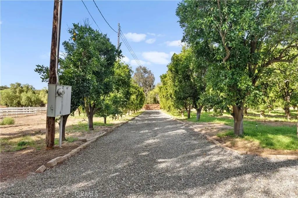 With a rare blend of old-world charm and modern amenities, this hacienda style estate brims with history, grace, attention to the details for fine living, entertainment and enjoyment of the land. The main house showcases classic hacienda elements plus a generous guest house provides a comfortable stay for visitors. Nestled on over 6 lush acres, everything was designed for unforgettable gatherings. The expansive entertainment pavilion features party rooms, a kitchen, bathroom and bar. Host lively events on the dance floor, dine under ambient lighting, or enjoy live performances on the built-in stage. Stroll through your own flourishing grove of delicious Valencia oranges and passion fruit irrigated by your private well. Tend to your horses or farm animals at the nearby corrals. Grab a game at your private sport court and a swim afterwards in the refreshing sparkling pool. Eco-conscious solar panels are owned. Find dedicated parking and hookups for your RV next to a custom deck. The private gated entrance and beautiful tree lined driveway is timeless and impressive. Whether looking for a private oasis or a family compound, hobby farm or expand your crop, tend to a horse or buy another, this stunning property has it all.