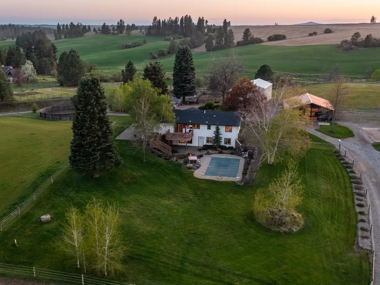 Life in the Country! No Need for a Lake Place or Summer Camp! Your Own Retreat...Pool, Horse Barn & Shop w/ Mesmerizing Views--Pasture, Woods! Lovely Mature Landscaping! Chicken Coop, Goat House, Raised Beds, Dressage Arena (Outdoor). 1983 Daylight Rancher, Totally Remodeled, 2022-2025. New Kitchen Appliances, Quartz Counters, Primary Bath, Wood Ceilings, Doors & Hardware, Flooring, Deck. Wine Room--AND! HVAC (2023), Roof (2025), Interior & Exterior Paint (2023-2024). Classic Cedar Barn--4 Stalls w/ Runs, Auto Waters, Concrete Aisle & Hay Storage, Metal Roof, Heated Tack Room. Dressage Arena, 4 Pastures, 30' X 40' Shop w/ 14' Doors. Pool W/ Views. Electric Safety Cover. 6.6 Acres $1,000,000. With Additional 4.6 Acres or 5.77 Acres Add $200,00 Each--$1,200,000 or $1,400,000. 5 Minutes to Freeman Schools, 22 Minutes to Downtown Spokane or Airport. 12 Minutes to Shopping, Gyms, Bistros & Trader Joes.