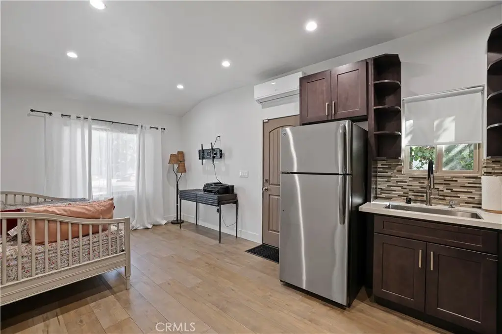 . Step into this beautifully upgraded single-family home designed for modern family living — complete with a fully permitted 1 bedroom, 1 bathroom ADU featuring a private entrance, its own address, and separate meter. Whether you’re looking for space to grow, multigenerational flexibility (no stairs), or rental income potential, this home checks every box. The main residence offers 3 bedrooms, a stylishly remodeled bathroom, and a generously sized primary suite offering a peaceful escape with a walk-in closet, custom accent wall, and a private full en-suite bathroom, and plenty of room to relax. Enjoy everyday comfort and high-end touches throughout: dual hanging closets, custom lighting, recessed LED fixtures, top-grade laminate flooring, and a dedicated dining area with a separate living room - both featuring elegant custom accent walls. The chef’s kitchen is a standout with Caesarstone countertops, tile backsplash, stainless steel appliances, and soft-close cabinetry. This home has been meticulously maintained and thoughtfully upgraded with a newer roof, updated copper plumbing and electrical, tankless water heater, custom dual pane windows, and a newer HVAC system. Outdoors, the covered patio with soaring ceilings is perfect for weekend BBQs or evening gatherings. The large grassy backyard is ideal for playtime or adding a pool, and includes a storage shed, lovely landscaping, and automatic sprinklers. The driveway’s modern concrete and grass design and smooth stucco exterior elevate the home’s curb appeal. The separate ADU is ideal for extended family or rental income — featuring its own custom kitchen with stainless steel appliances and sleek contemporary finishes. Washer, dryer, and select furnishings are included, making this home truly move-in ready. Homes like this — with thoughtful design, stylish updates, and room to thrive — don’t come around often. Make this your family’s next chapter. Schedule your private showing today and fall in love with where you live!