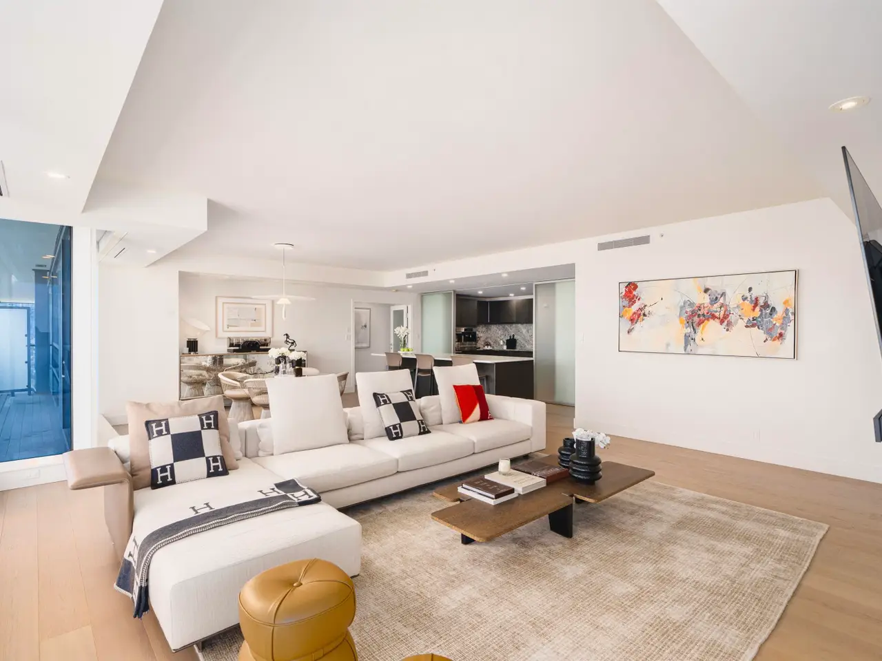 Rarely available, exquisite 02 home in the prestigious Fairmont Pacific Rim. Unobstructed, stunning views of ocean, harbour & northshore mountain from the 5th highest 02 plan. A remarkably expansive, light-filled living room that welcomes the morning sun and flows seamlessly into breathtaking panoramic views. Boasting luxury upgrades in 2020: solid hardwood floor, motorized blinds & blackout shades, marble countertop, the entire laundry room (Miele washer & dryer, countertop, cabinets, sink, faucet), Nest thermostats, all lighting fixtures, water filter, painting; dishwasher & hood fan upgraded in 2024. Boffi Italian kitchen, Miele & Sub-Zero appliances, spa ensuites. Meticulously maintained. Ready to move in. 2 parking.