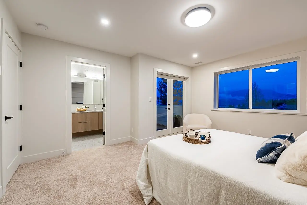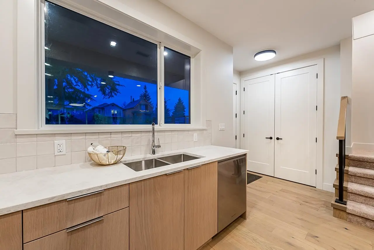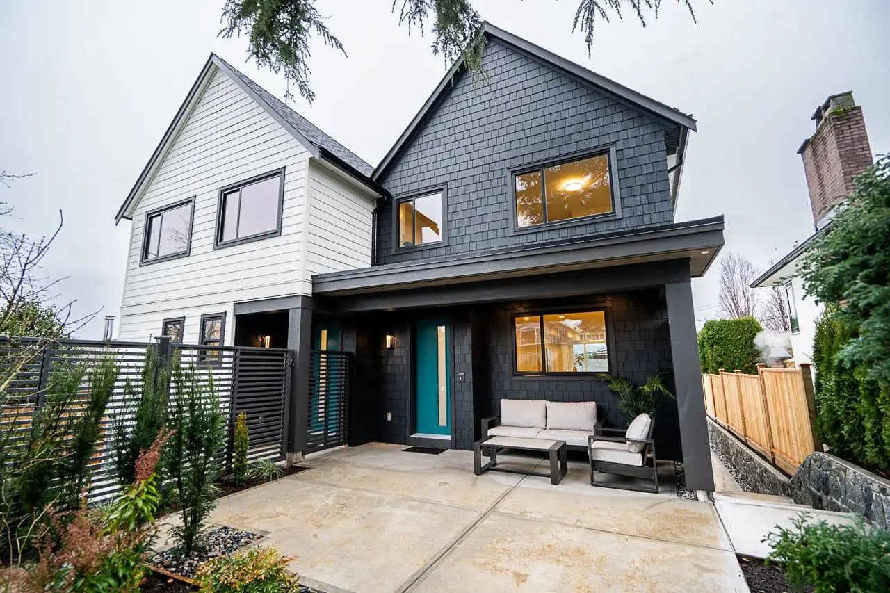 New modern 1/2 duplex built by a long established European builder. Stunning mountain and water views from both upper decks. Large top floor flex/office/bdrm. The principle bedroom features a deck, ensuite and walk-in closet. A laundry room and further bedroom and bathroom complete the upper floors. The elegant, high ceilinged Great Room has a gourmet kitchen with Fisher & Paykel appliances, an eat up centre island and a pantry wall, all flowing seamlessly into the living/dining rooms. The mudroom has custom built-ins. Fabulous, private covered patio has great sun. Landscaping features irrigation, granite walls, lighting & feature trees. Rear yard is fenced and has a single car garage. 1 bdrm legal suite downstairs. Great family neighbourhood with easy access to Hwy 1 and downtown.