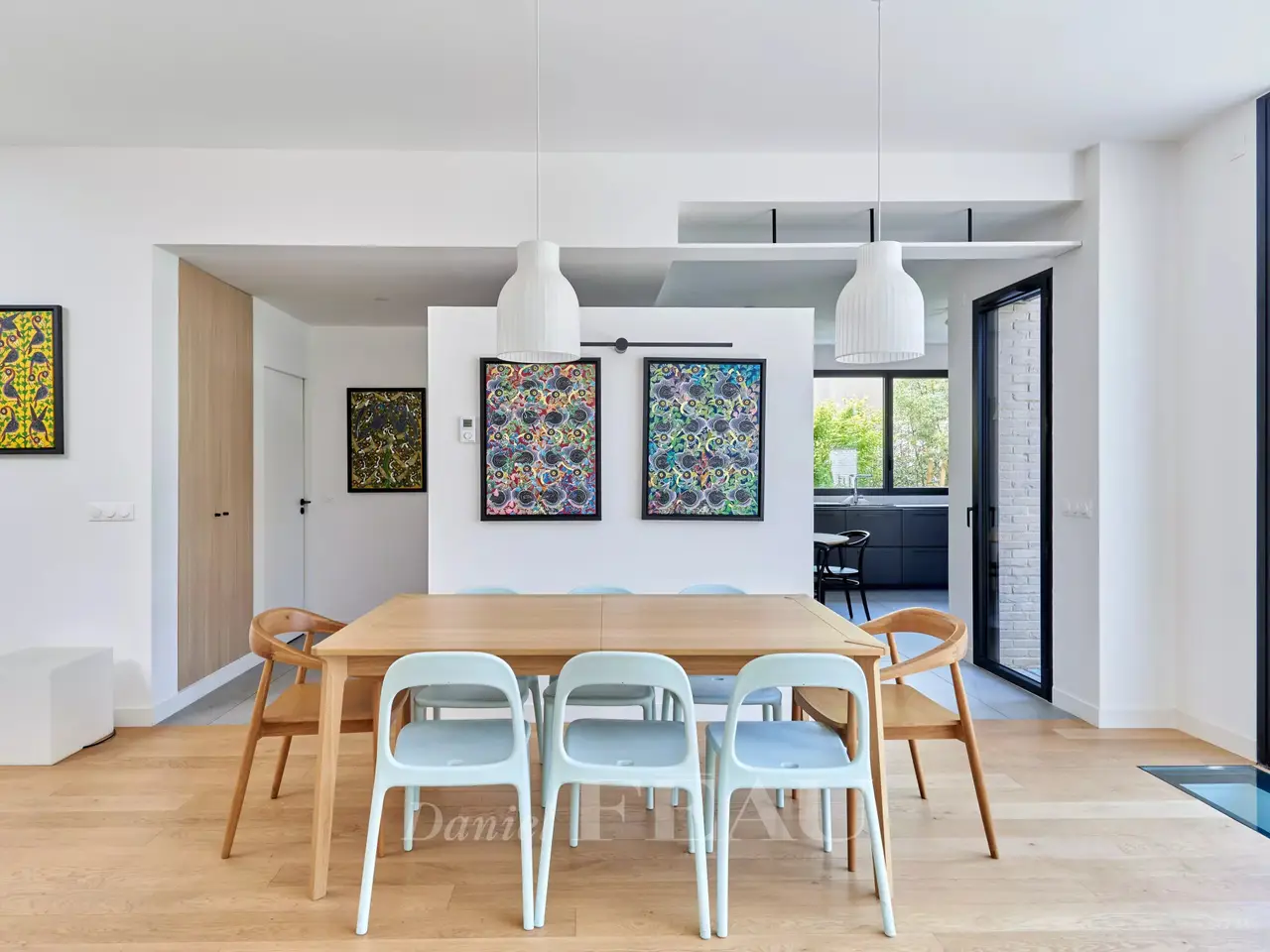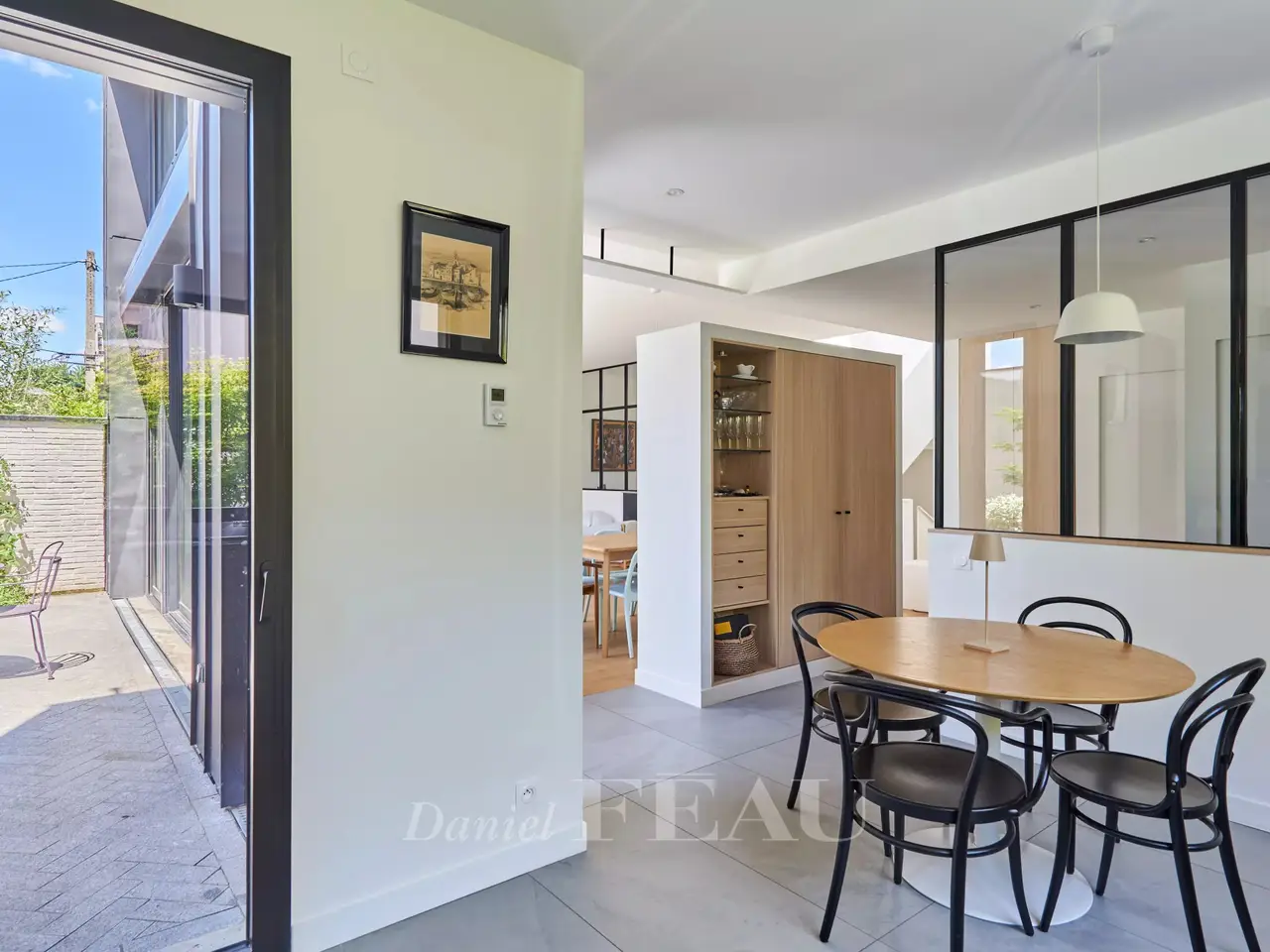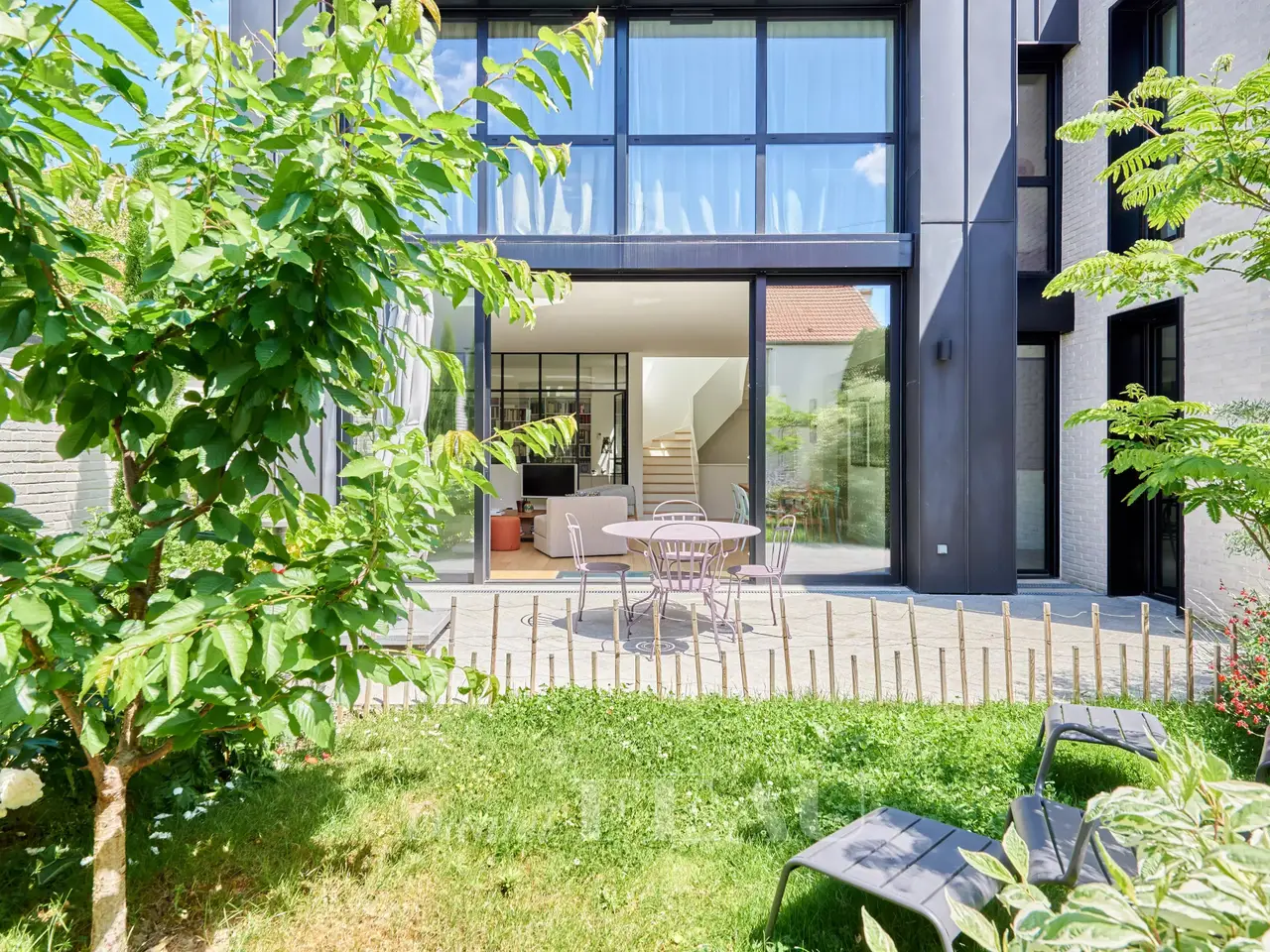 In a green bower, nearby Vanves train station, architect house dating from 2022, offering 284 sqm of living space and a garden-terrace space of 62 m². On ground floor, the entry leads to a separate and equipped kitchen, a spacious living room opening onto the garden, a suite and its shower room, a study and a separate wc ; on the upper floor, four bedrooms, three shower rooms and a separate wc on the landing. In the basement, a utility room, a living room, a fitness room, a pantry and a technical space.