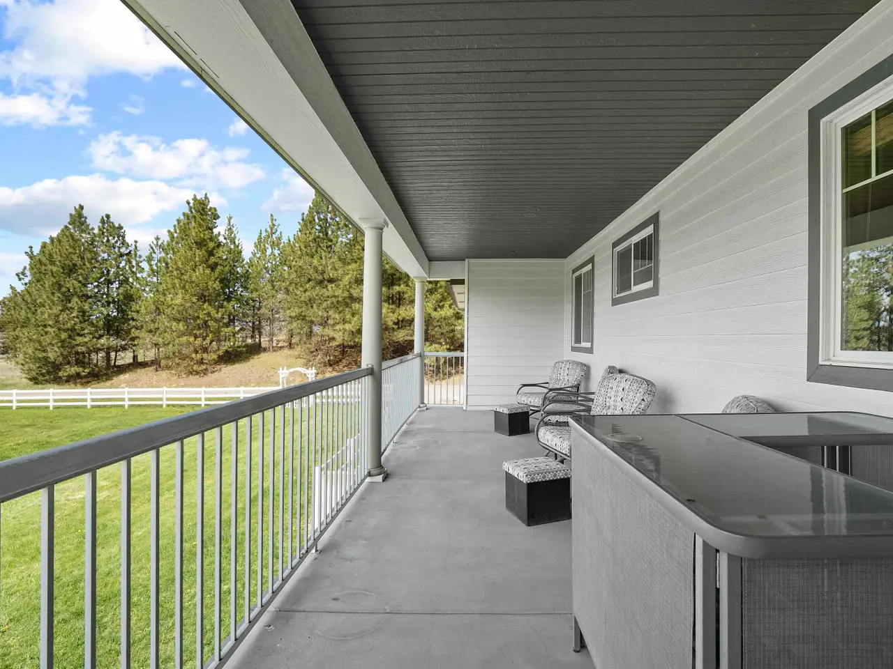 First time on the market! This stunning custom-built home and horse property on 4.3 acres offers the perfect balance of rural charm and modern luxury. Just 7 minutes from I-90 and the Valley Mall. The 2-Story home with a daylight basement features 4+ bedrooms, including a primary suite with a sitting room, dressing room and a soaking tub. Enjoy two double-sided fireplaces, custom wood trim throughout, three full bathrooms, and a maintenance-free wrap-around deck. The 3-car garage provides ample storage, and the property is serviced by Vera Water and Sewer. Equestrians will love the custom horse barn with five 12x12 covered stalls, each with separate runs, a wash rack with commercial drain, a secure tack room, and rubber mats. There's also a 12x60 garage for your truck and trailer, a 400x160 riding arena, and fenced pastures with turn-out spaces. This exceptional property offers everything you need for country living with modern amenities. Don't miss your chance to call this unique property home!