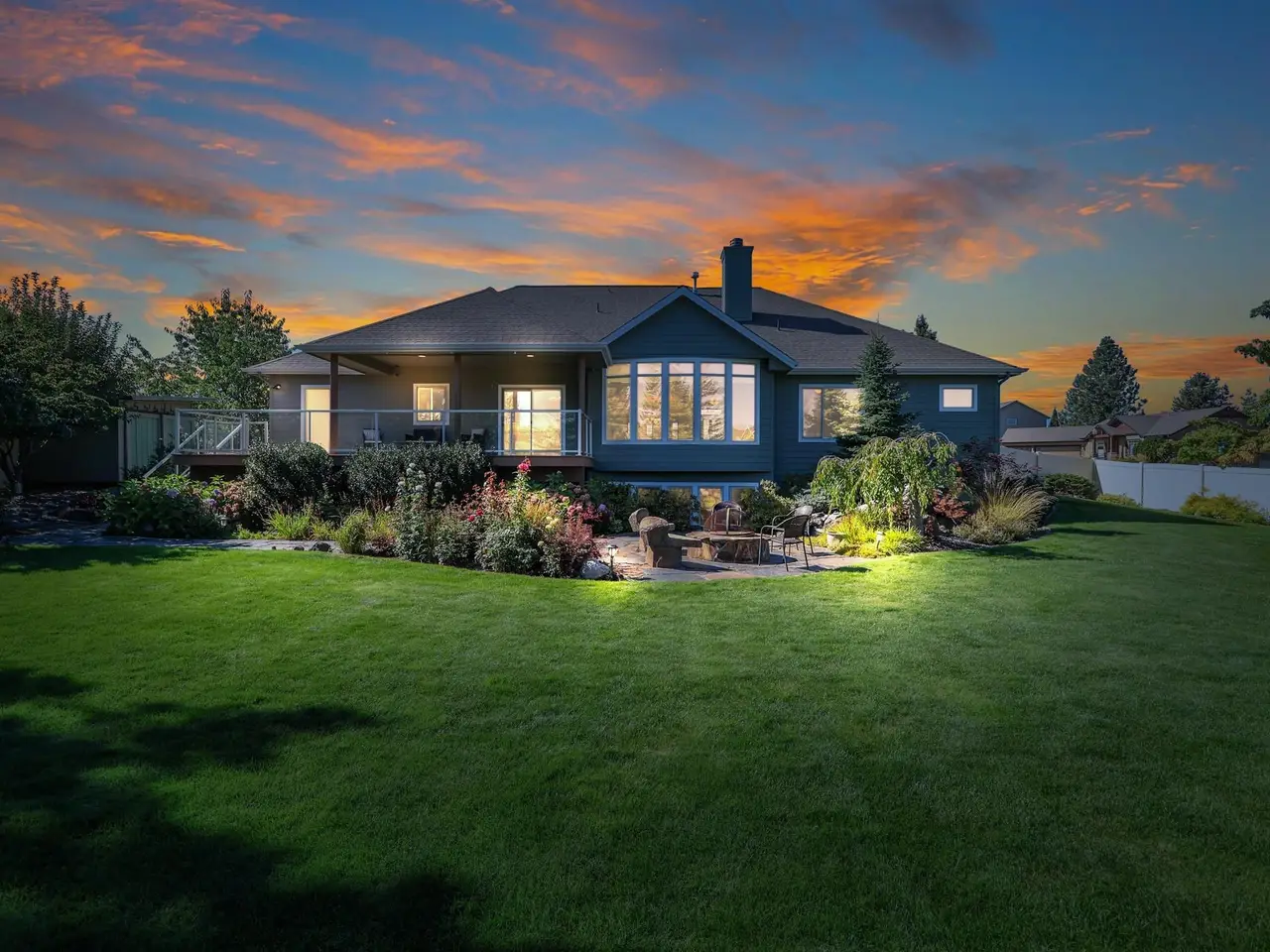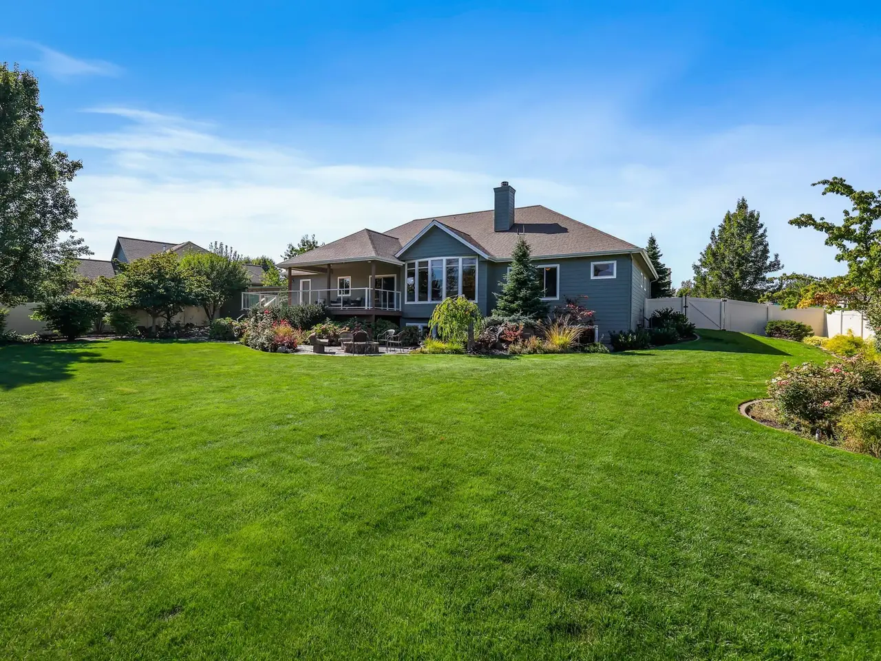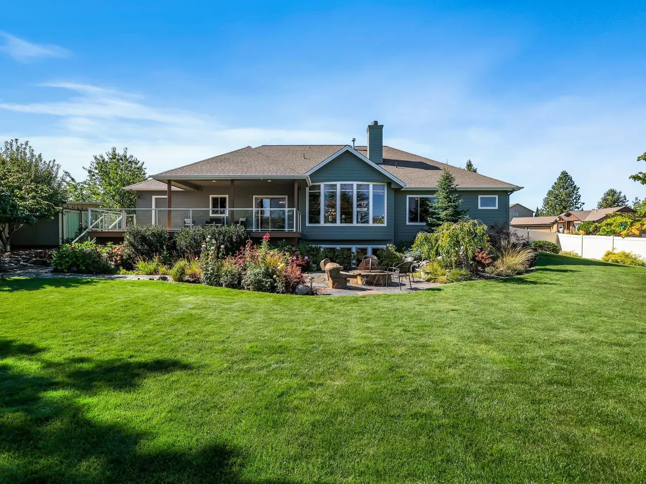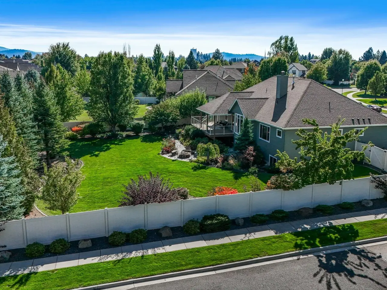 Set on a pristine half-acre corner lot in Camden Heights, this luxury home is a rare find offering space, style, and serenity. With 4 bedrooms plus an office (optional 5th) and 4 baths, the open floor plan showcases new flooring, fresh paint, and abundant natural light. At the heart of the home, the gourmet kitchen impresses w/ Silestone quartz countertops, knotty alder cabinets, gas range, double ovens, walk-in pantry, and a generous island. Gather around the stunning wood-burning stone fireplace or entertain outdoors on the covered Trex deck w/ glass railing and views of Mt. Spokane. The primary suite is a retreat w/ a jetted soaking tub, dual vanities, walk-in tile shower, and spacious walk-in closet. The lower level offers a large family room, three bedrooms, and a guest en suite. Outside, the backyard is a private park featuring a stone firepit, cascading waterfall, raised garden beds, and horseshoe pit. With an oversized 3-car garage, mudroom access, and thoughtful updates, this home defines luxury living.