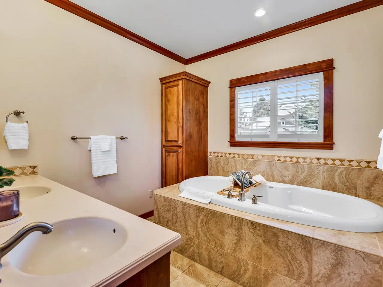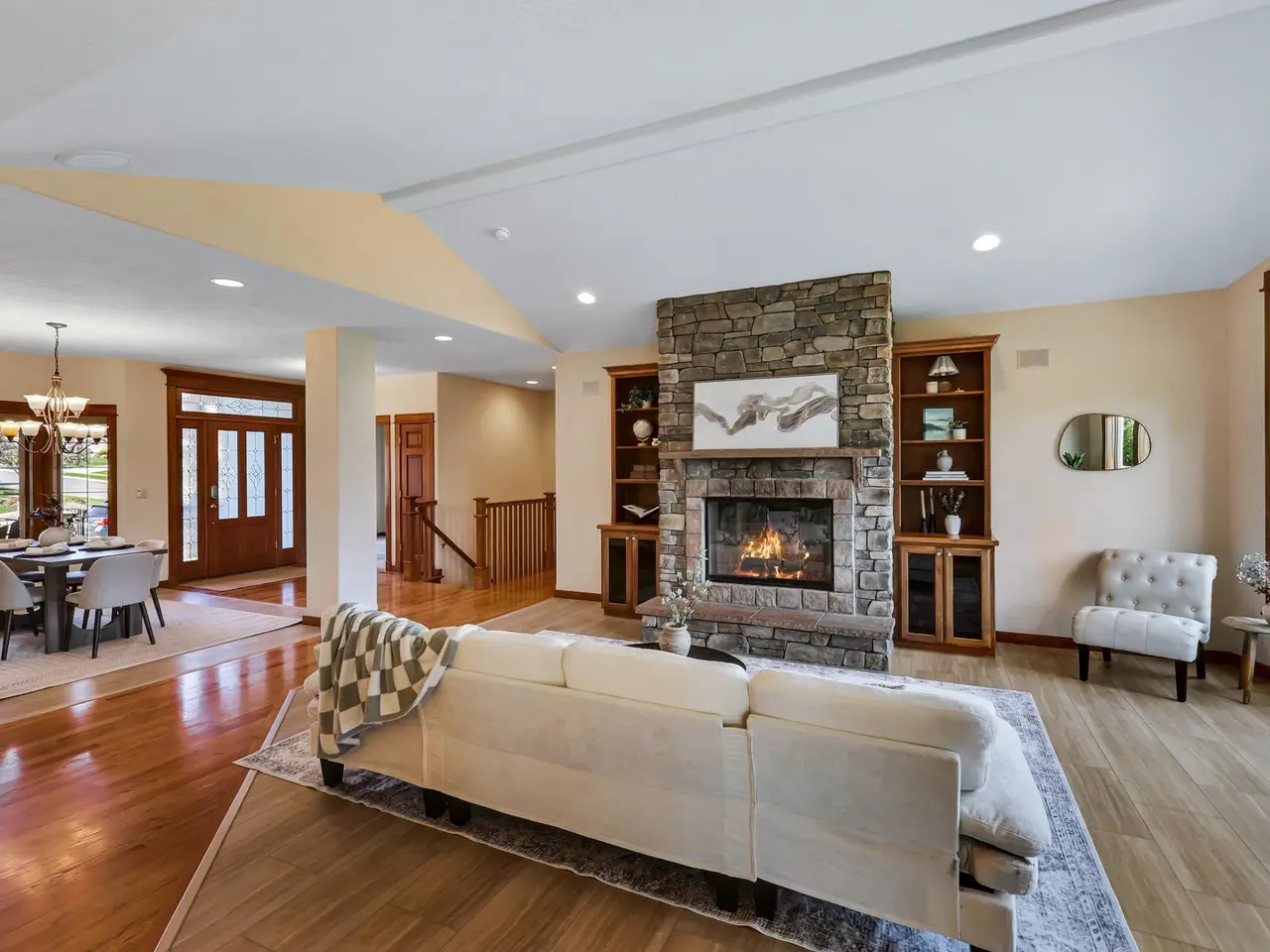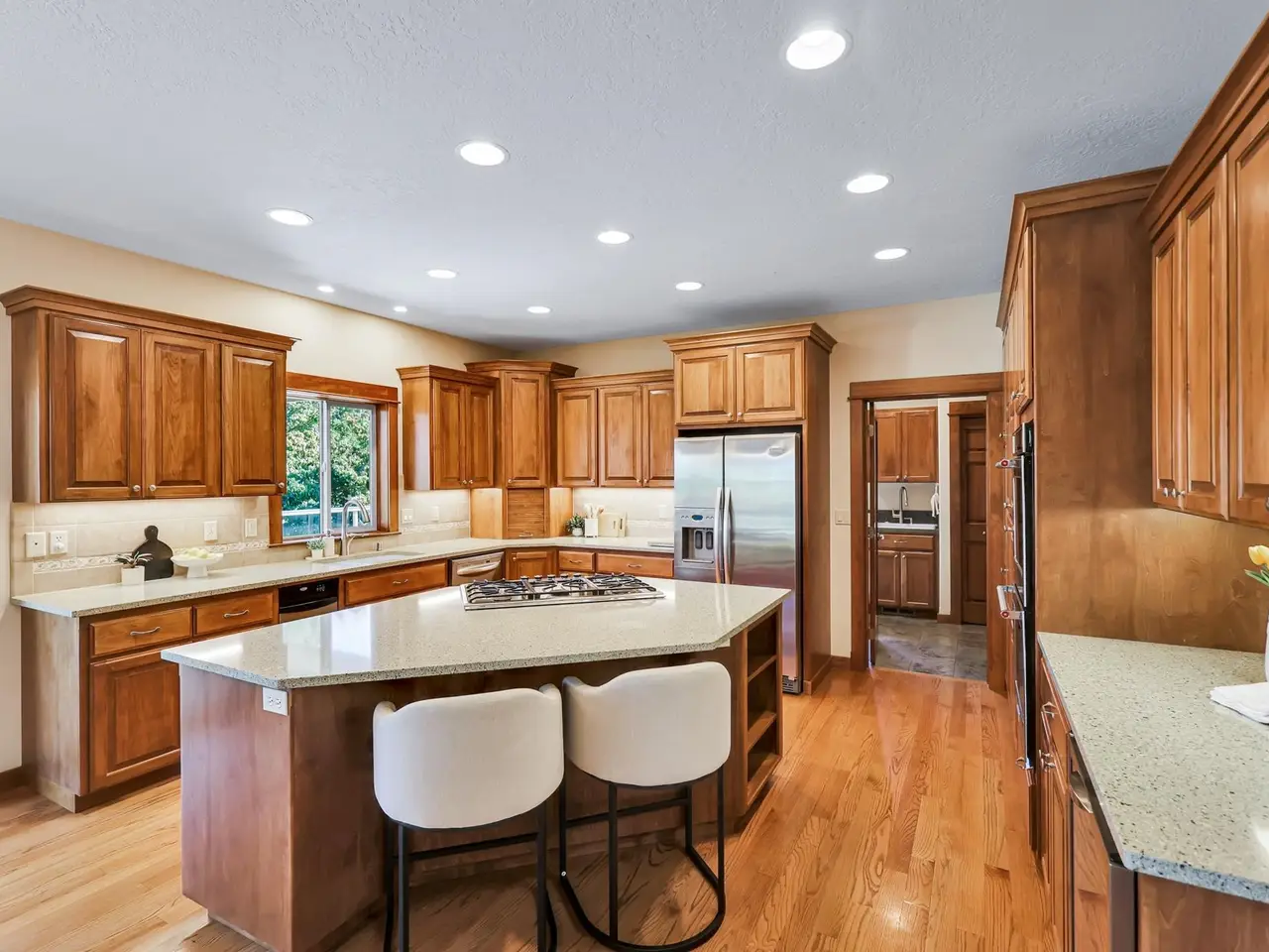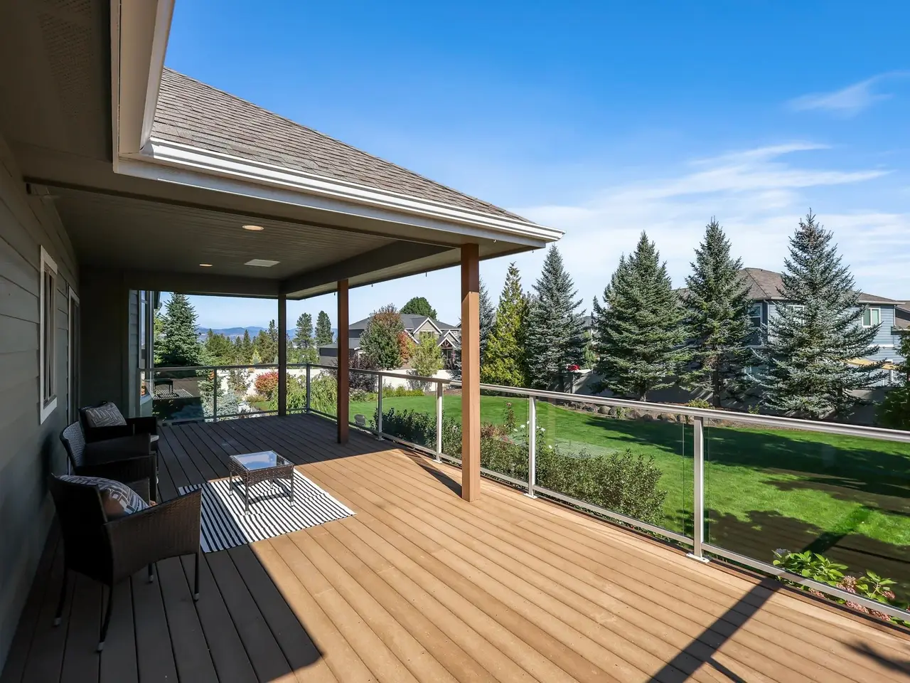 Set on a pristine half-acre corner lot in Camden Heights, this luxury home is a rare find offering space, style, and serenity. With 4 bedrooms plus an office (optional 5th) and 4 baths, the open floor plan showcases new flooring, fresh paint, and abundant natural light. At the heart of the home, the gourmet kitchen impresses w/ Silestone quartz countertops, knotty alder cabinets, gas range, double ovens, walk-in pantry, and a generous island. Gather around the stunning wood-burning stone fireplace or entertain outdoors on the covered Trex deck w/ glass railing and views of Mt. Spokane. The primary suite is a retreat w/ a jetted soaking tub, dual vanities, walk-in tile shower, and spacious walk-in closet. The lower level offers a large family room, three bedrooms, and a guest en suite. Outside, the backyard is a private park featuring a stone firepit, cascading waterfall, raised garden beds, and horseshoe pit. With an oversized 3-car garage, mudroom access, and thoughtful updates, this home defines luxury living.