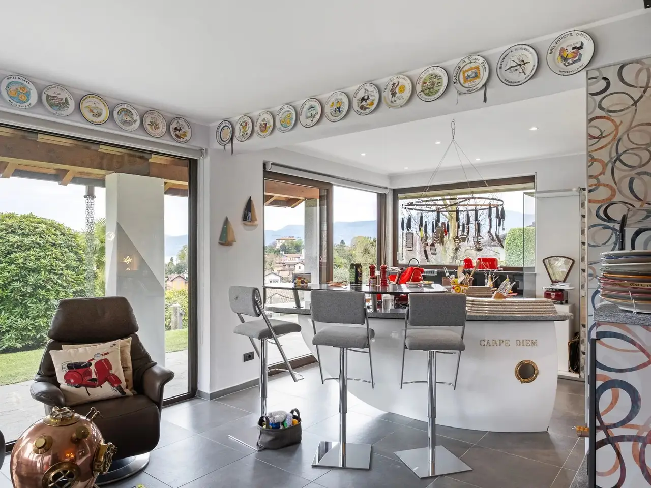 In a privileged hillside location, just a few minutes' walk from the historic center of Intra, this stunning villa enjoys breathtaking views of Lake Maggiore and the Borromean Gulf. Bathed in quiet and light, it is surrounded by an enchanting, perfectly manicured park with swimming pool, spring-fed pond and lush vegetation. The property stands out for its balance of elegance, privacy and comfort. An ancient 100-year-old olive tree, a majestic camphor tree, palm trees, fruit trees and rare flower essences frame a pond fed by spring water, populated by Koi carp specimens. Completing the garden are a bocce court, a wooded area, flower meadows, and an automated irrigation system fed by a cistern that collects spring water. The house, originally built in the 1960s, was completely renovated and expanded in 2020, with great attention to detail and quality materials. The main entrance, through a porphyry driveway, leads to a large parking area with a pergola and a convenient garage. The interior offers bright and refined rooms: a large open space on the ground floor accommodates living room with double-sided fireplace, integrated kitchen, dining area, two bedrooms, two bathrooms, wine cellar and covered terraces. On the second floor there is a study with a panoramic terrace, a bedroom with a covered terrace, a second bedroom and a bathroom equipped with a mini-pool with whirlpool and shower. Outside, the heated infinity pool with solarium and pergola represents a corner of absolute relaxation. The villa is equipped with many state-of-the-art amenities, including an air-conditioning system to maintain an ideal environment throughout the year and a cozy fireplace for relaxing on cooler evenings. The property is entirely surrounded by an automatic irrigation system, which keeps the garden in perfect condition, and carefully designed outdoor lighting to enhance every architectural detail.