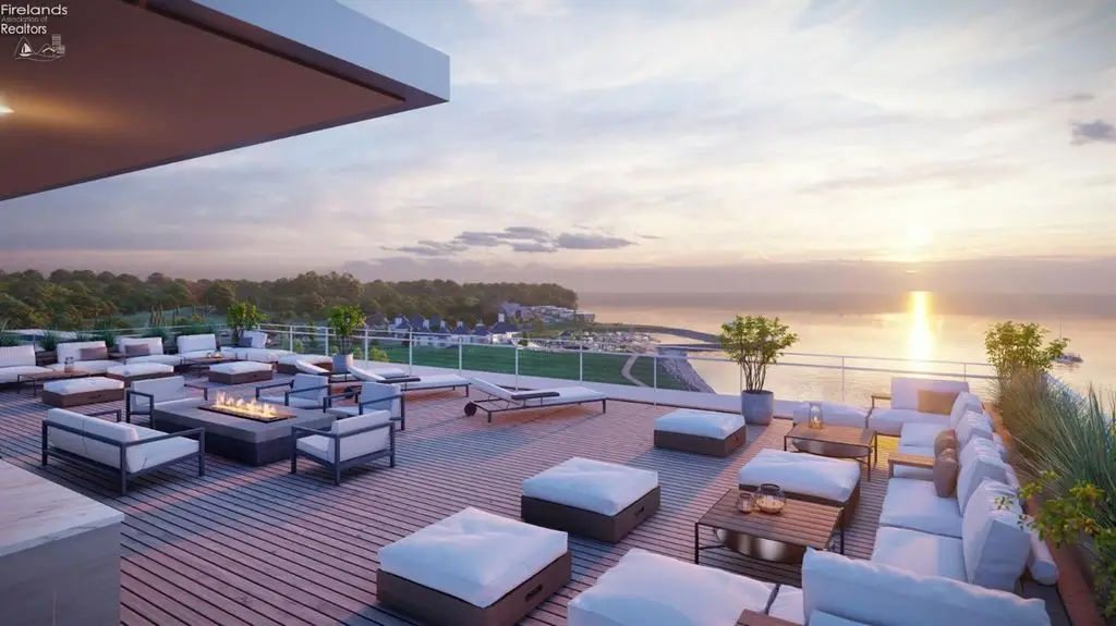 Welcome to this lakefront condominium in Waterwood Resort. A lakefront wellness community surrounded by a stunning natural landscape. Take in Lake Erie breezes and sunsets while enjoying amenities like lakeview dining, a sandy beach, a fitness center, a six-suite inn, a stunning swimming pool and cabana bar overlooking Lake Erie. The modern condominium building with single-floor units each featuring a balcony overlooking Lake Erie, contemporary interior design. Garage parking, a rooftop amenity deck, and immediate access to Waterwood's impeccable grounds await you. Base level packages offer high quality offerings but you have the ability to upgrade your finishes to suit your taste and functionality. Open modern floor plans, balconies, quartz countertops and backsplash, stainless steel Kitchen Aid appliances and many more high-end features throughout.