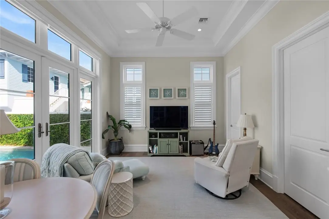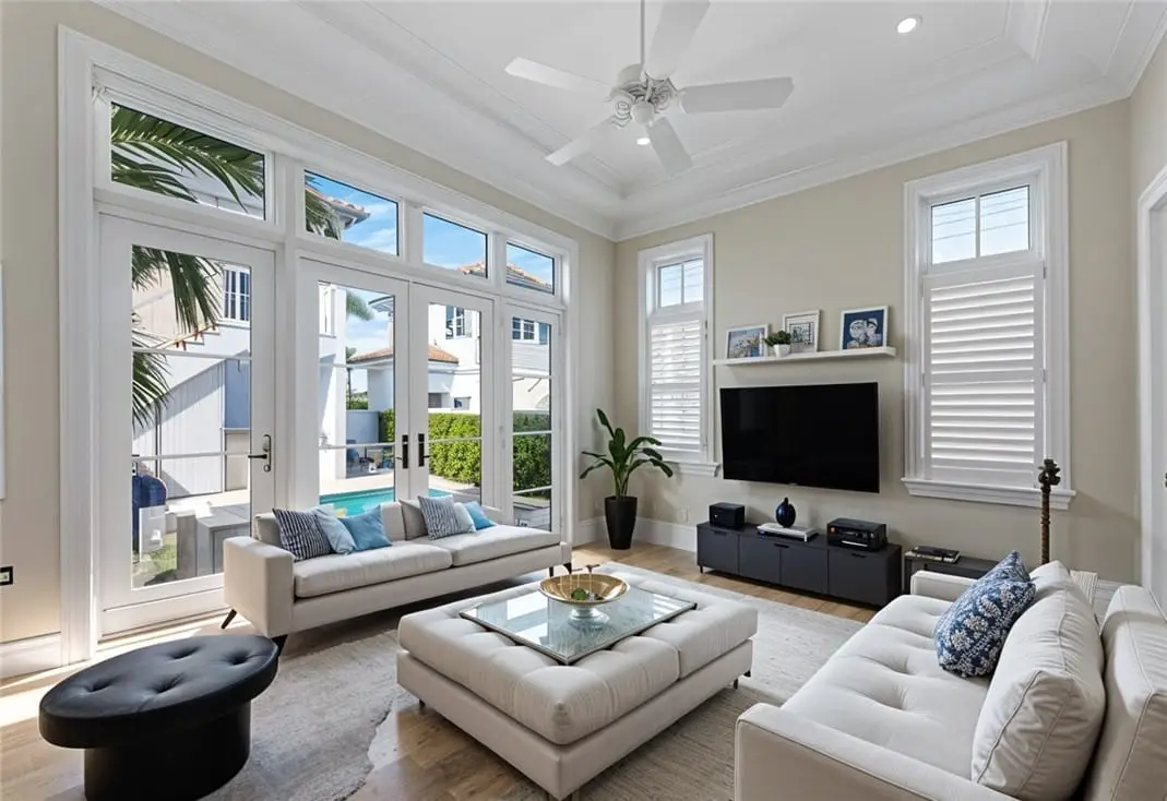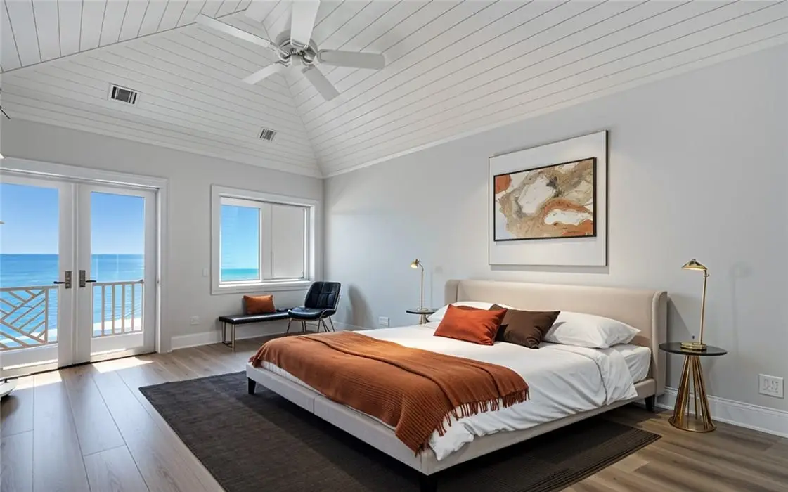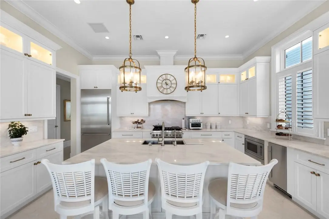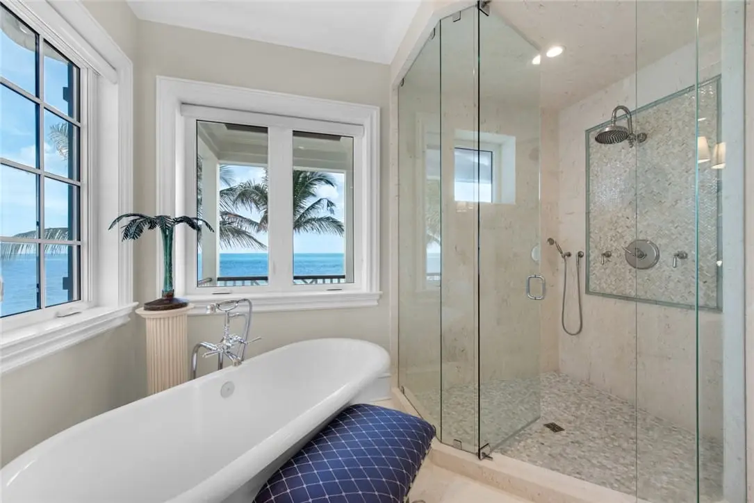 Oceanfront townhome seamlessly blends luxury with coastal charm! Boasts natural light, impact glass, and hardwood and stone floors. The gourmet kitchen, living room with fireplace and covered beachfront lanai offer elegance, while an elevator adds convenience. The master suite with a serene balcony and a guest haven upstairs ensure comfort and the courtyard with pool and fireplace provides a serene retreat. The courtyard beckons with an electric-heated pool, gas fireplace and built-in grill. Private fourth bedroom above garage. Enjoy private beach access and proximity to an array of restaurants and shops. Sizes approximate/subject to error.