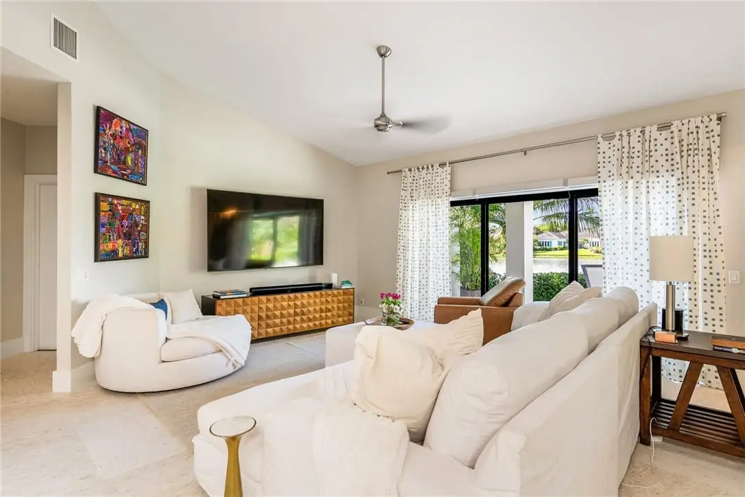 Stunning lakefront home in Seagrove West with 2021 roof and full impact windows/doors. This 3BR/3.5BA features vaulted ceilings, shell stone floors, walnut accents, and an open kitchen with premium appliances. Elegant atrium with custom chandelier, spacious primary suite with lake views, and serene outdoor living with private pool. Gated community offers marina, tennis, and 24hr security. Minutes to beaches, dining, and shops! Sizes are approx/subj to error.