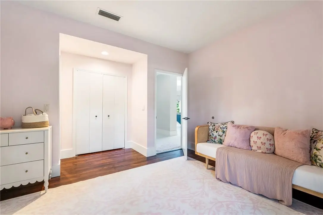 Spacious primary suite with lake views