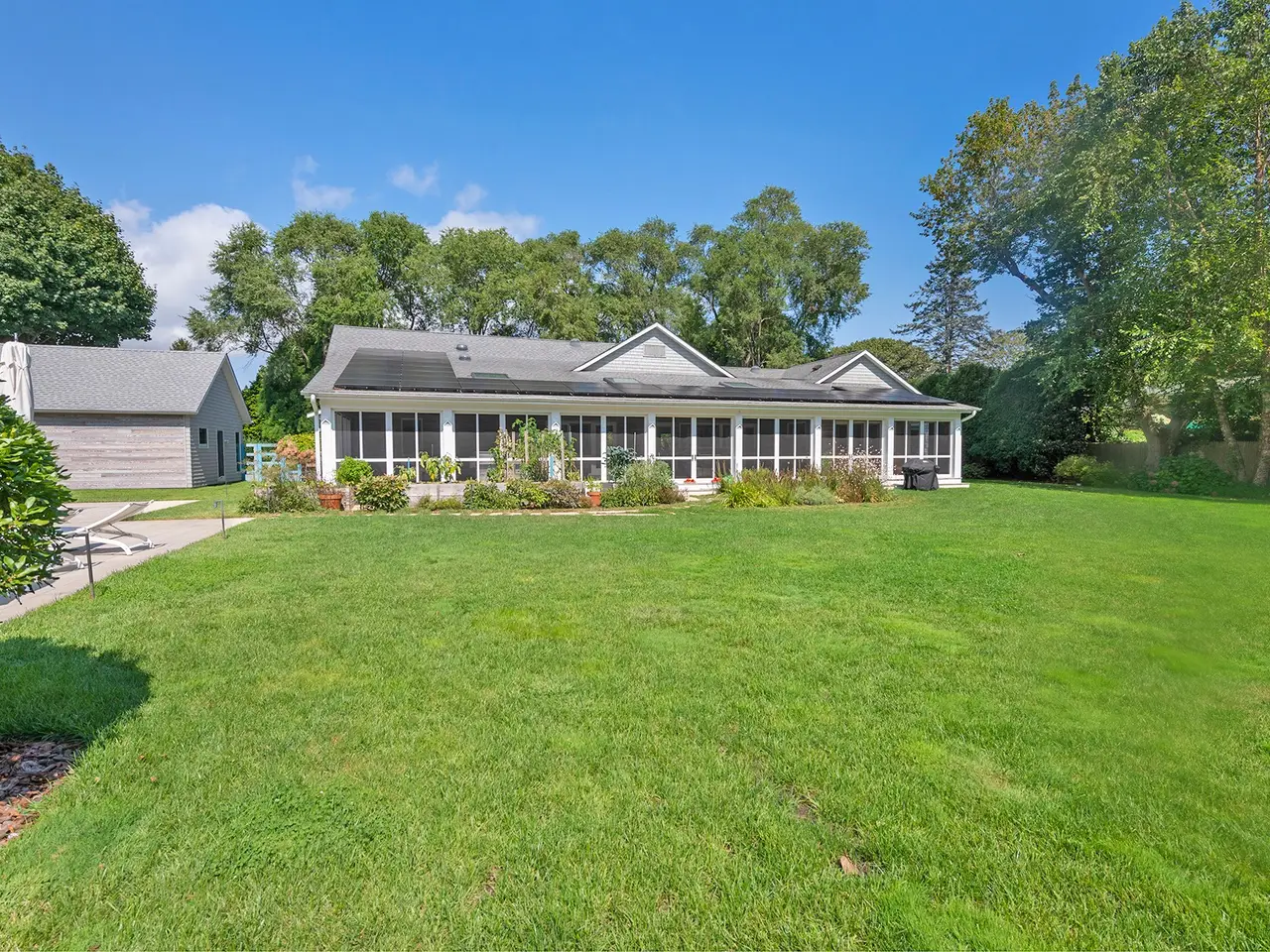 Stunning one-level home beautifully appointed with stellar art in the center of East Hampton Village set back from the road and down a long driveway. You can entertain outside on the large 1,000-square-foot screened-in porch with Italian-designed furniture in front of a gas fireplace. Outdoor gas and charcoal grills. Expansive magnificently landscaped backyard with 15 x 50 gas-heated gunite pool and 8 x 8 spa. Chef's kitchen with Viking stove, Sub Zero refrigerator, two dishwashers, and large center island opening to the living area with gas fireplace and dining area filled with natural light. Split floor plan with two bedrooms on one side and two bedrooms on the other, each with its own TV and ensuite baths. Additional room to be used as den or office. Sonos system, Apple TV, organic vegetable/herb garden (will be maintained by gardner), and composting vessel. Perfect summer rental in East Hampton Village, affording privacy but where everything is just moments away. AVAILABLE 9/19/25 THROUGH 10/5/25 FOR $22K. Listing ID: 898208