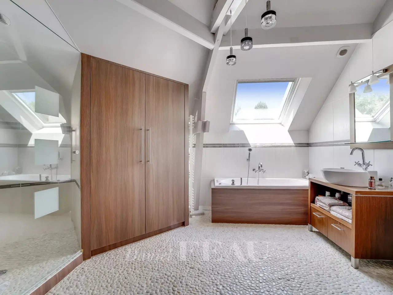 VILLENNES-SUR-SEINE - Discover a property on the Île de Villennes, offering a rare privilege: living on the banks of the Seine. This 208 m² (342 m² usable) house, built in 2001, offers high-quality features. The ground floor comprises an entrance hall with a cloakroom and toilet, a living room with an insert fireplace, all opening onto a level terrace and providing access to the garden. A spacious 35 m² eat-in kitchen with a central island and dining area completes this level. Upstairs, discover a 35 m² master suite, including an open bathroom and a dressing room. Two other bedrooms with wardrobes share a shower room and a separate toilet. The basement is fully furnished: a gym, a laundry room, a shower room and toilet, an air-conditioned wine cellar, and a large 35 m² garage. The exterior is a haven of peace with a landscaped garden of 1800 m², a large sunny terrace, a jacuzzi, and, as a bonus, a private pontoon offering privileged access to the Seine. Close to the A13/A14 motorway, a stone's throw from the city center, schools, shops, and the SNCF train station.