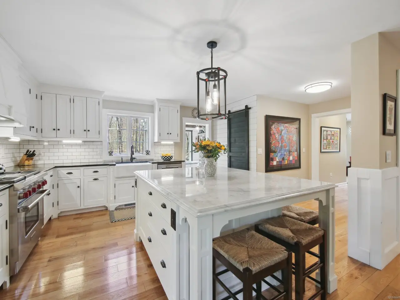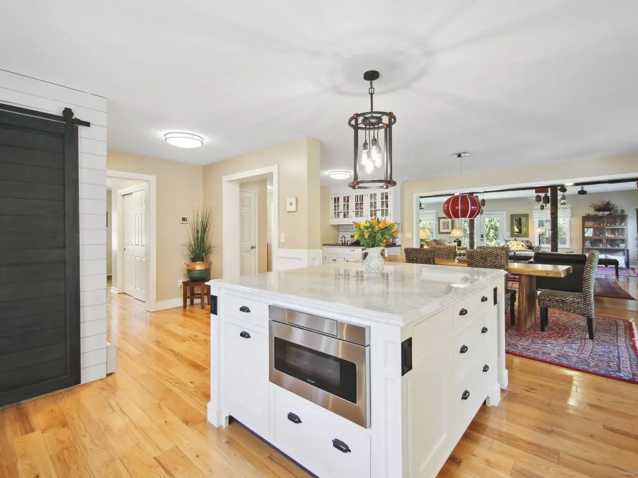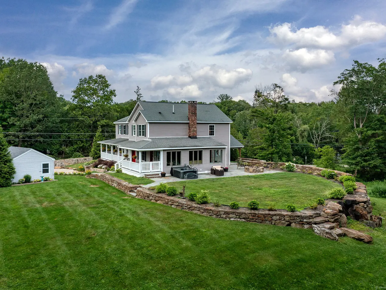 Elegant Country Living, Welcome to 34 Kent Road--a beautifully updated 4 bedroom 2.5 bath home offering nearly 4,000 sq. ft. of refined living space in the heart of Warren. Nestled on over 4 professionally landscaped acres with lake rights, this property blends timeless New England with modern amenities for effortless country living. Step inside to discover gleaming wide plank hardwood floors and thoughtfully designed layout. The heart of the home is the gourmet kitchen featuring a coffee/wet bar with a beverage fridge--Wolf range, sub-zero refrigerator and Bosch DW perfect for entertaining. An open-concept lower-level flows seamlessly into a bright, 4 season sunroom that overlook the manicured yard and stunning blue stone patio, with a new 4 person Jacuzzi hot tub, ideal for indoor-outdoor living. Upstairs, the serene primary suite boasts a completely remodeled bathroom with a luxurious oversized walk-in steam shower. Three additional bedrooms offer ample space for family and guest. Additionally, there are separate office spaces both upstairs and downstairs as well as as an additional upstairs den. Outside, you'll find stone walls, raised flower beds and a.new bluestone walkway leading to the front door. The stone patio wraps around the back the home, providing multiple spaces to entertain and relax. A charming barn sits tucked beyond the main yard, and a custom chicken coop with run complete this perfect picture homestead. Located minutes from Lake Waramaug and surrounded by Litchfield County's natural beauty, this special property offers privacy, charm and turn-key charm. In one of Connecticut's most scenic towns. Additional upgrades include a new whole-house generator, dry well, radon air system, energy-efficient water heater, crushed stone driveway, Ring security system with exterior lighting. Also, a full footprint partially finished basement offers a workbench, built in bar, extensive storage area and additional living/crafting/hobby space.