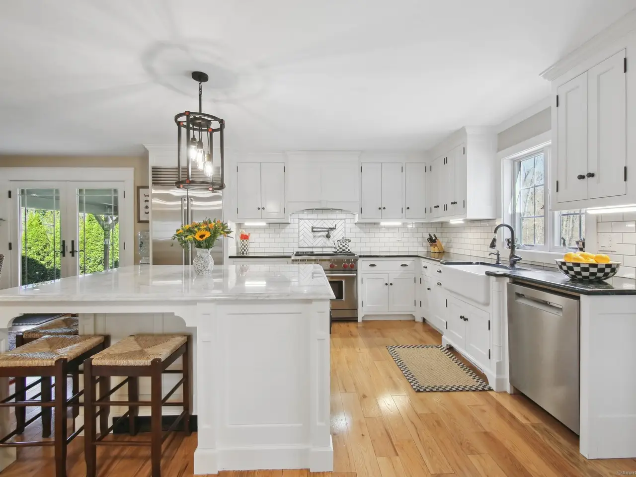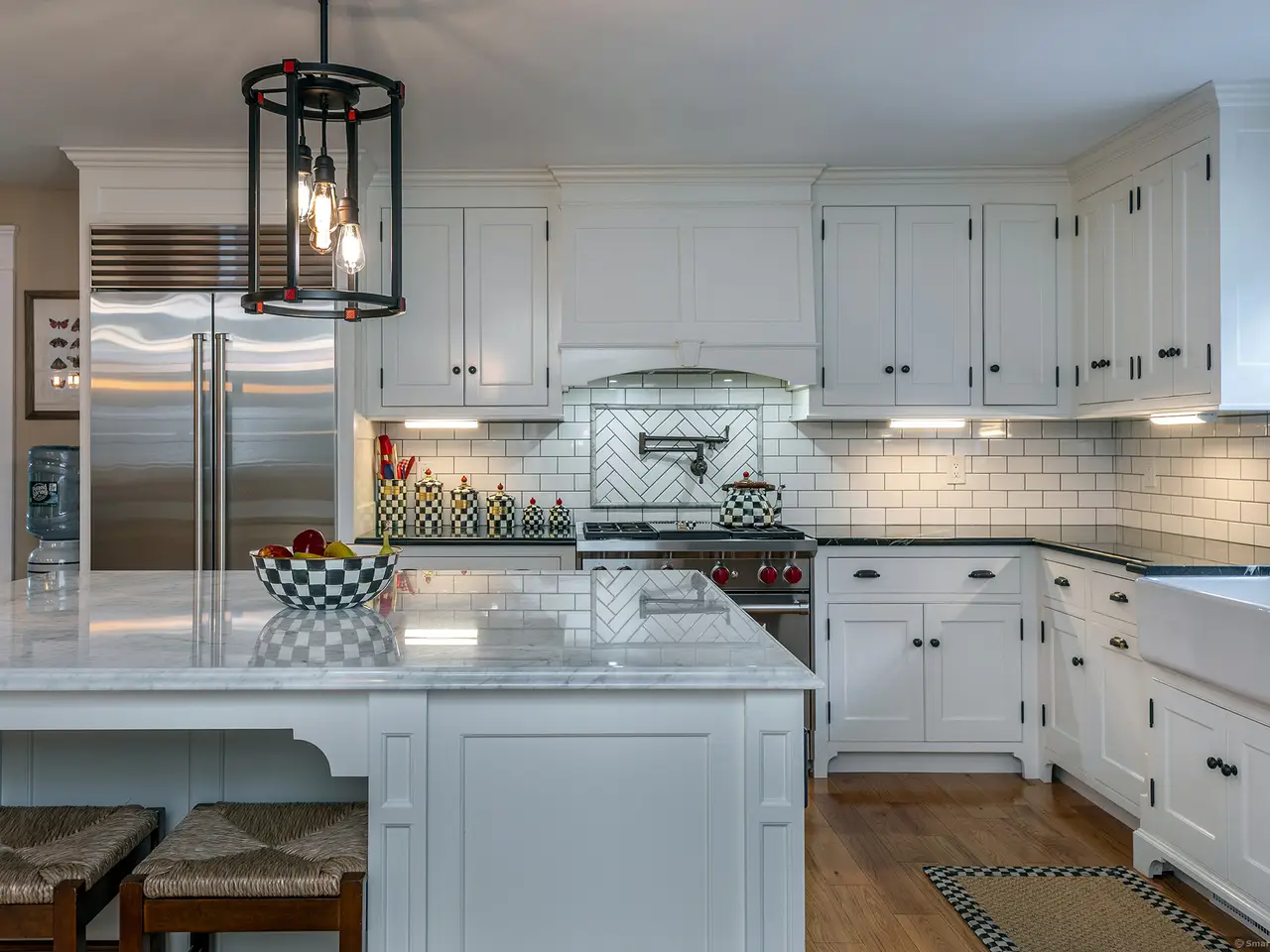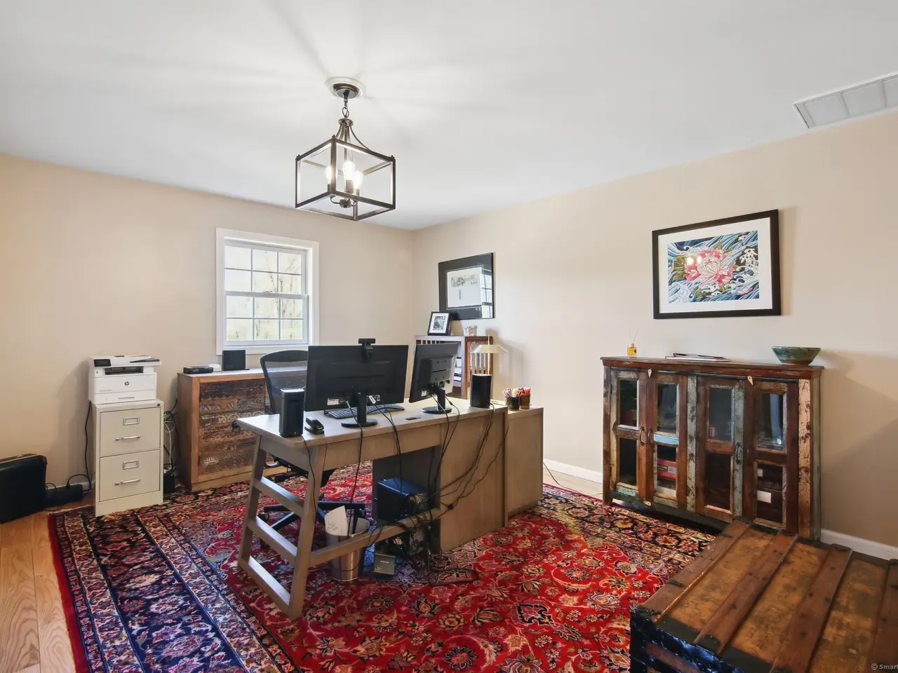 Elegant Country Living, Welcome to 34 Kent Road--a beautifully updated 4 bedroom 2.5 bath home offering nearly 4,000 sq. ft. of refined living space in the heart of Warren. Nestled on over 4 professionally landscaped acres with lake rights, this property blends timeless New England with modern amenities for effortless country living. Step inside to discover gleaming wide plank hardwood floors and thoughtfully designed layout. The heart of the home is the gourmet kitchen featuring a coffee/wet bar with a beverage fridge--Wolf range, sub-zero refrigerator and Bosch DW perfect for entertaining. An open-concept lower-level flows seamlessly into a bright, 4 season sunroom that overlook the manicured yard and stunning blue stone patio, with a new 4 person Jacuzzi hot tub, ideal for indoor-outdoor living. Upstairs, the serene primary suite boasts a completely remodeled bathroom with a luxurious oversized walk-in steam shower. Three additional bedrooms offer ample space for family and guest. Additionally, there are separate office spaces both upstairs and downstairs as well as as an additional upstairs den. Outside, you'll find stone walls, raised flower beds and a.new bluestone walkway leading to the front door. The stone patio wraps around the back the home, providing multiple spaces to entertain and relax. A charming barn sits tucked beyond the main yard, and a custom chicken coop with run complete this perfect picture homestead. Located minutes from Lake Waramaug and surrounded by Litchfield County's natural beauty, this special property offers privacy, charm and turn-key charm. In one of Connecticut's most scenic towns. Additional upgrades include a new whole-house generator, dry well, radon air system, energy-efficient water heater, crushed stone driveway, Ring security system with exterior lighting. Also, a full footprint partially finished basement offers a workbench, built in bar, extensive storage area and additional living/crafting/hobby space.