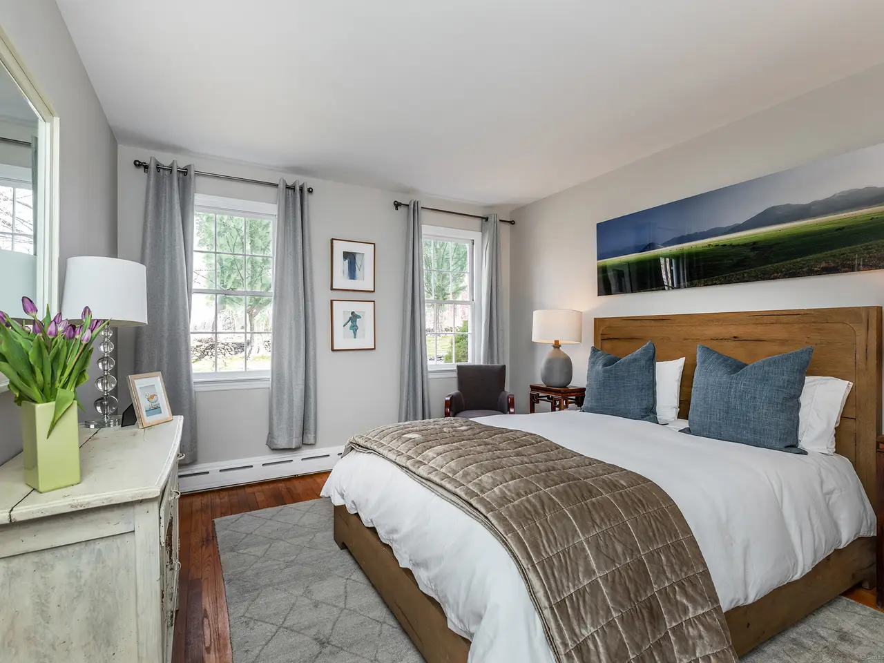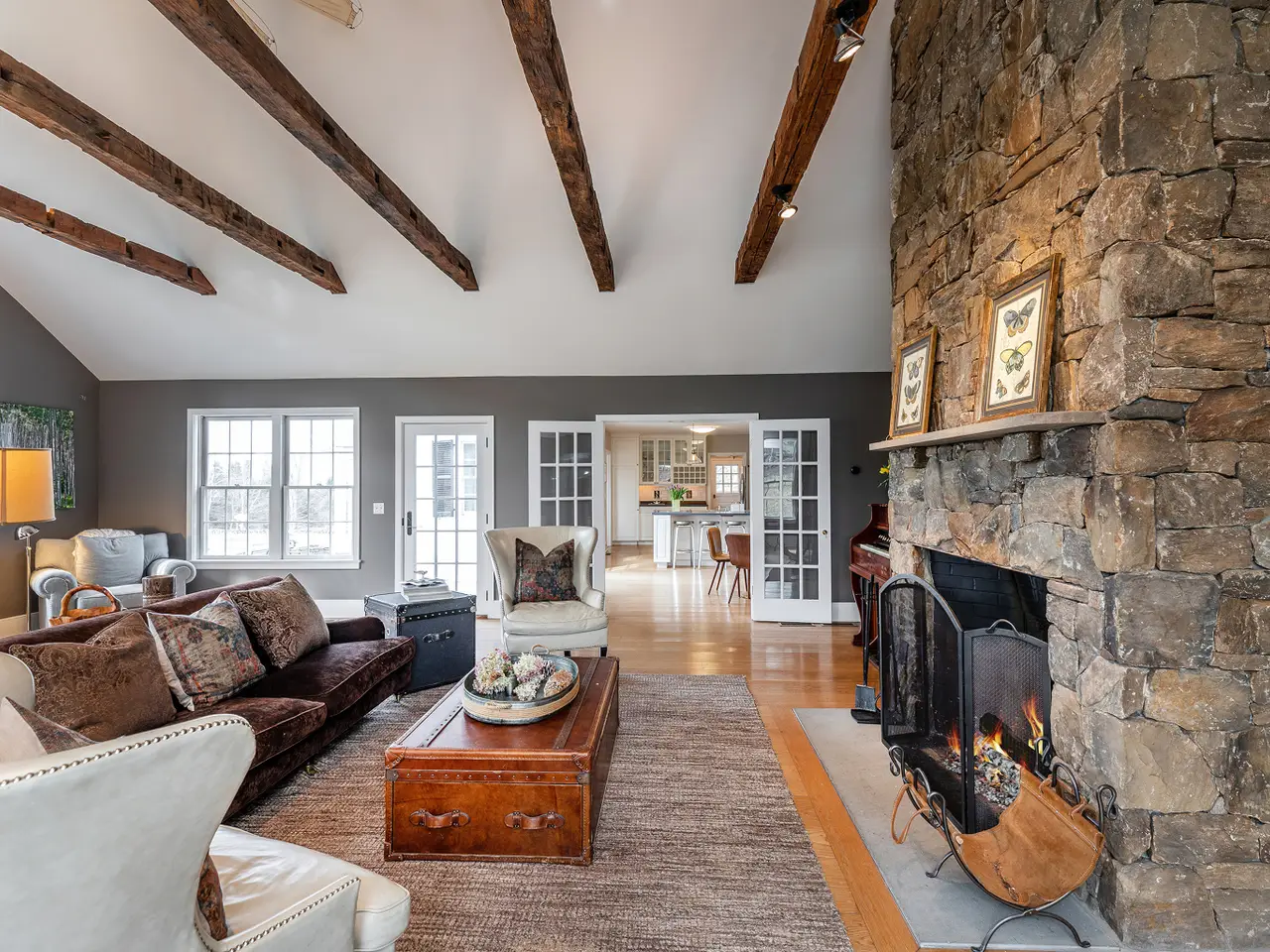 Opportunity to own on one of Washington's most coveted streets - East Street is bucolic and perfect for walking, biking and visiting Waldingfield Farm for all your organic food needs! Classic white 4 bedroom home with 2.5 baths, fabulous vaulted Great Room, 2 wood burning fireplaces, eat-in kitchen and DR/LR combo with south and west exposures. 2 bedrooms including primary on main floor, 2 additional bedrooms, full bath and oversized hallway on second floor. Stone terrace partially covered on south facade. Bathrooms recently renovated, generator added and exterior of house being painted now. Close to town, Mayflower Inn, private schools and shopping. Fabulous opportunity.