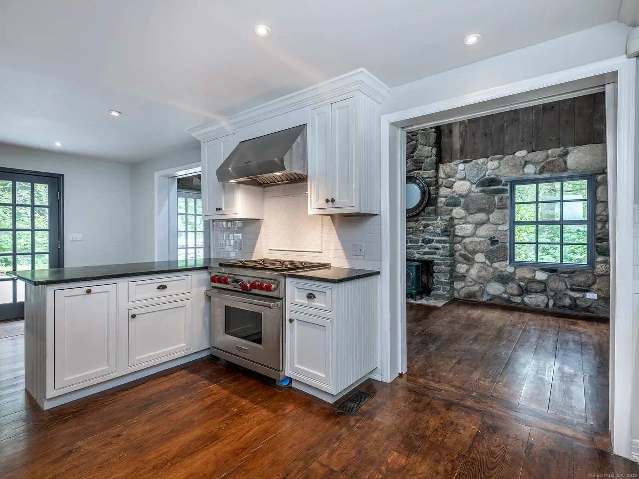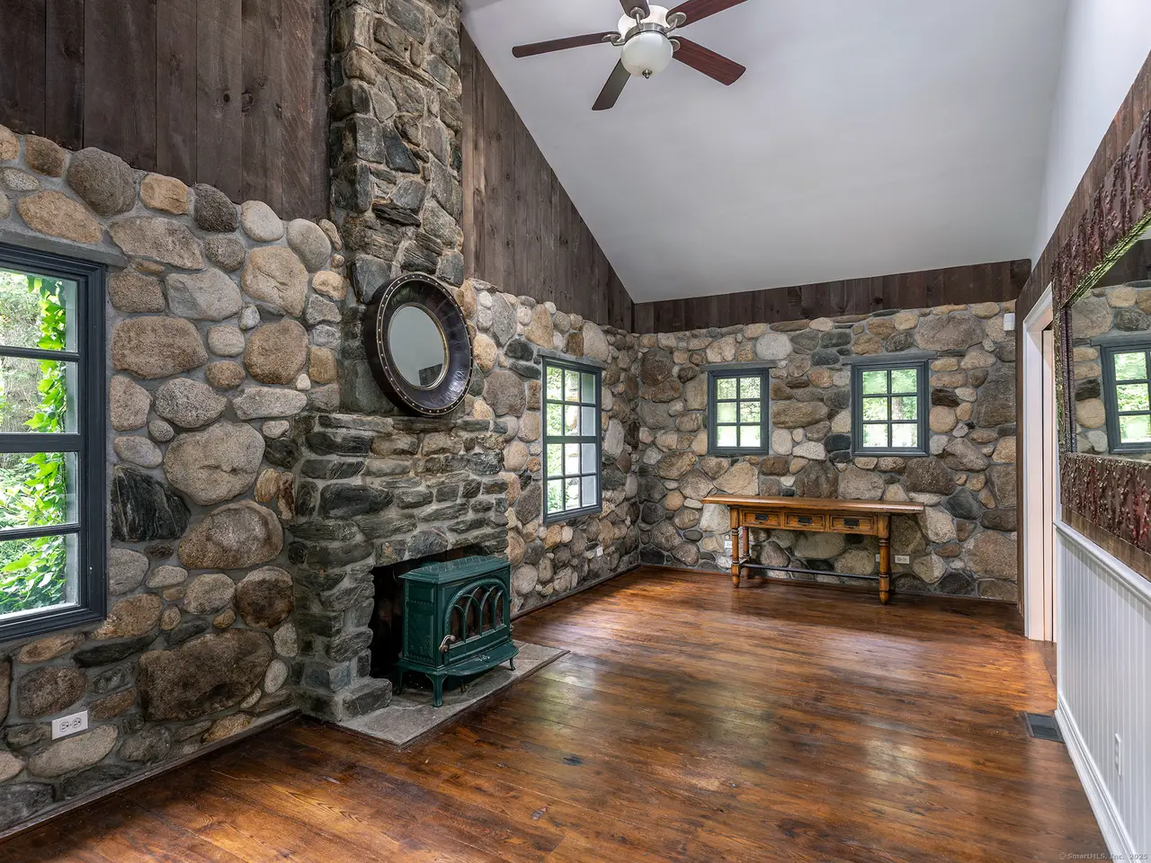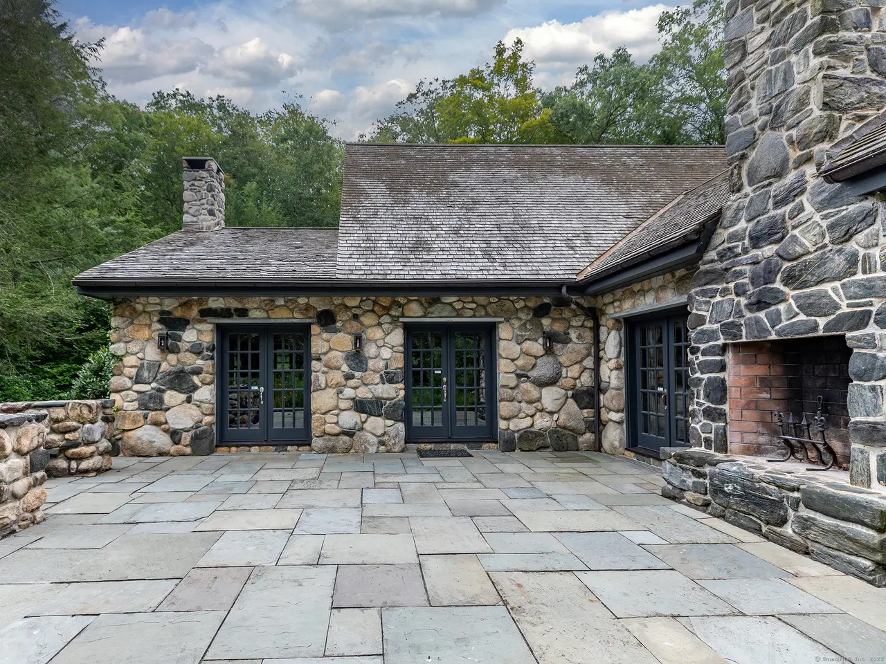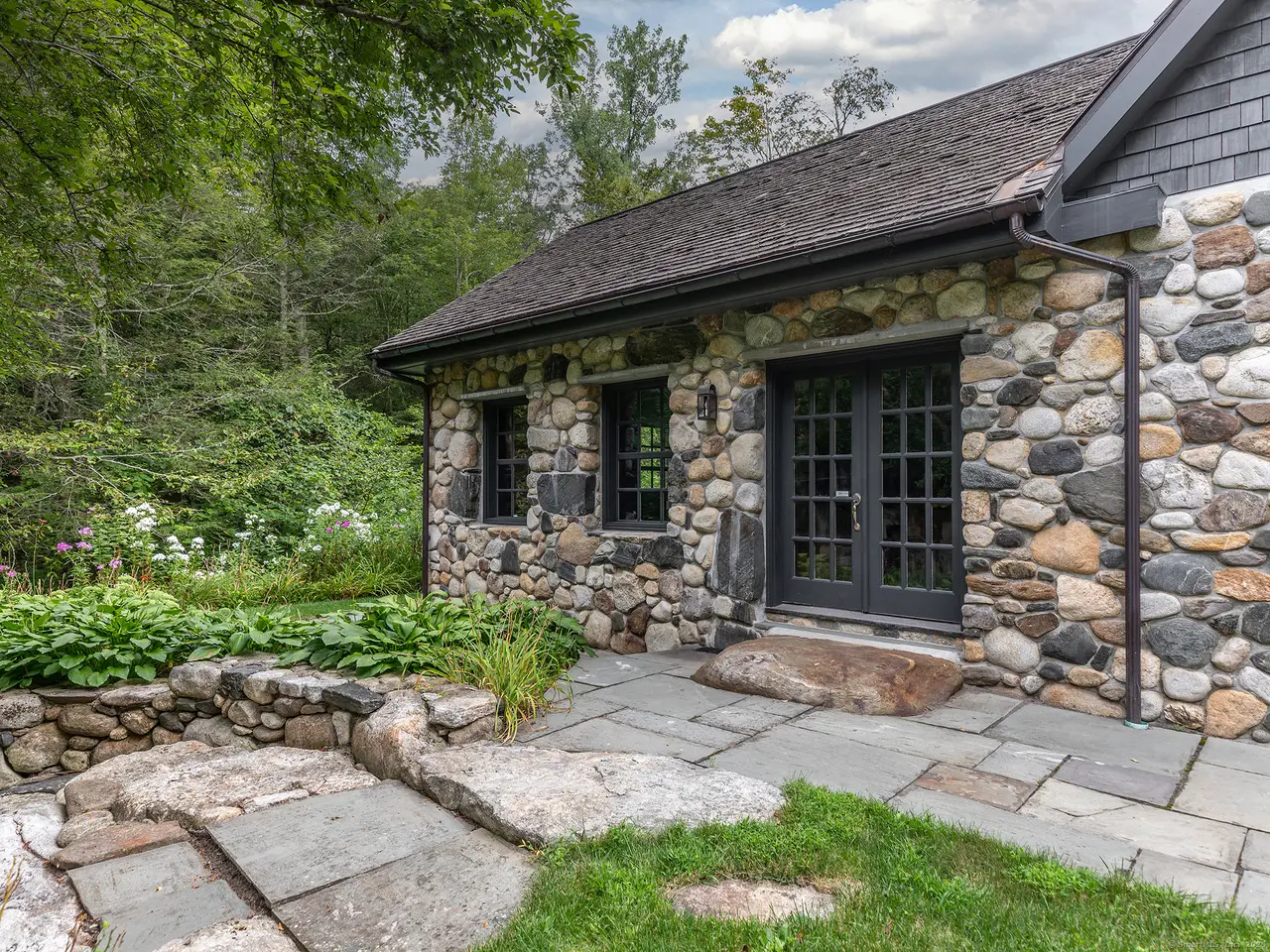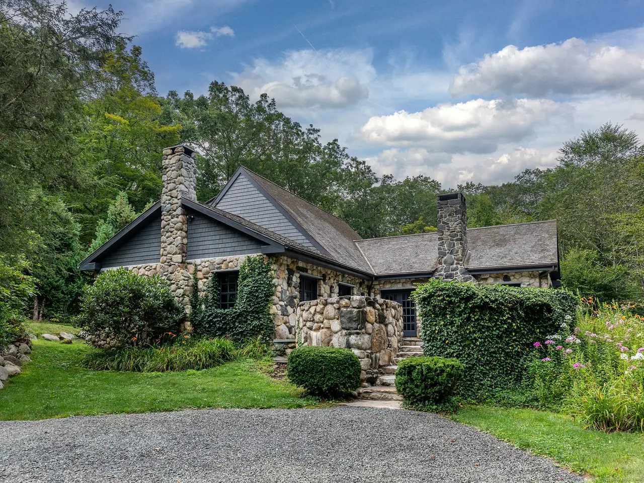 A Storybook Stone Cottage with 2000+/- feet of frontage along the Shepaug River. Step into a fairy tale with this enchanting stone cottage, where timeless charm meets natural beauty. The welcoming front terrace with wood-burning fireplace sets the stage for outdoor gatherings, all while the soothing sound of the Shepaug River echoes in the background. Inside, the warmth continues with two additional stone fireplaces anchoring the Living and Dining rooms. The main-floor primary suite opens directly to a private back terrace-perfect for morning coffee. Upstairs, two additional bedrooms share a full bath and an office nook. Follow the extensive trail system to the handcrafted stone steps into your own private swimming/fishing hole in the river. This is a truly rare and magical retreat, located on an officially designated scenic road. The property in fronted by a 1000 foot stone wall and offers direct access to miles of walking/mountain biking and borders Steeprock Land Trust. Just minutes from Lake Waramaug's beach access and the charming villages of New Preston, Washington Depot, Bantam, and Litchfield. Indoor tennis at Rumsey Hall School is just a short walk away, and the property's extensive trail network invites year-round exploration. Town shows two bedrooms but house used as three. Square footage increased slightly when dormer was added upstairs.