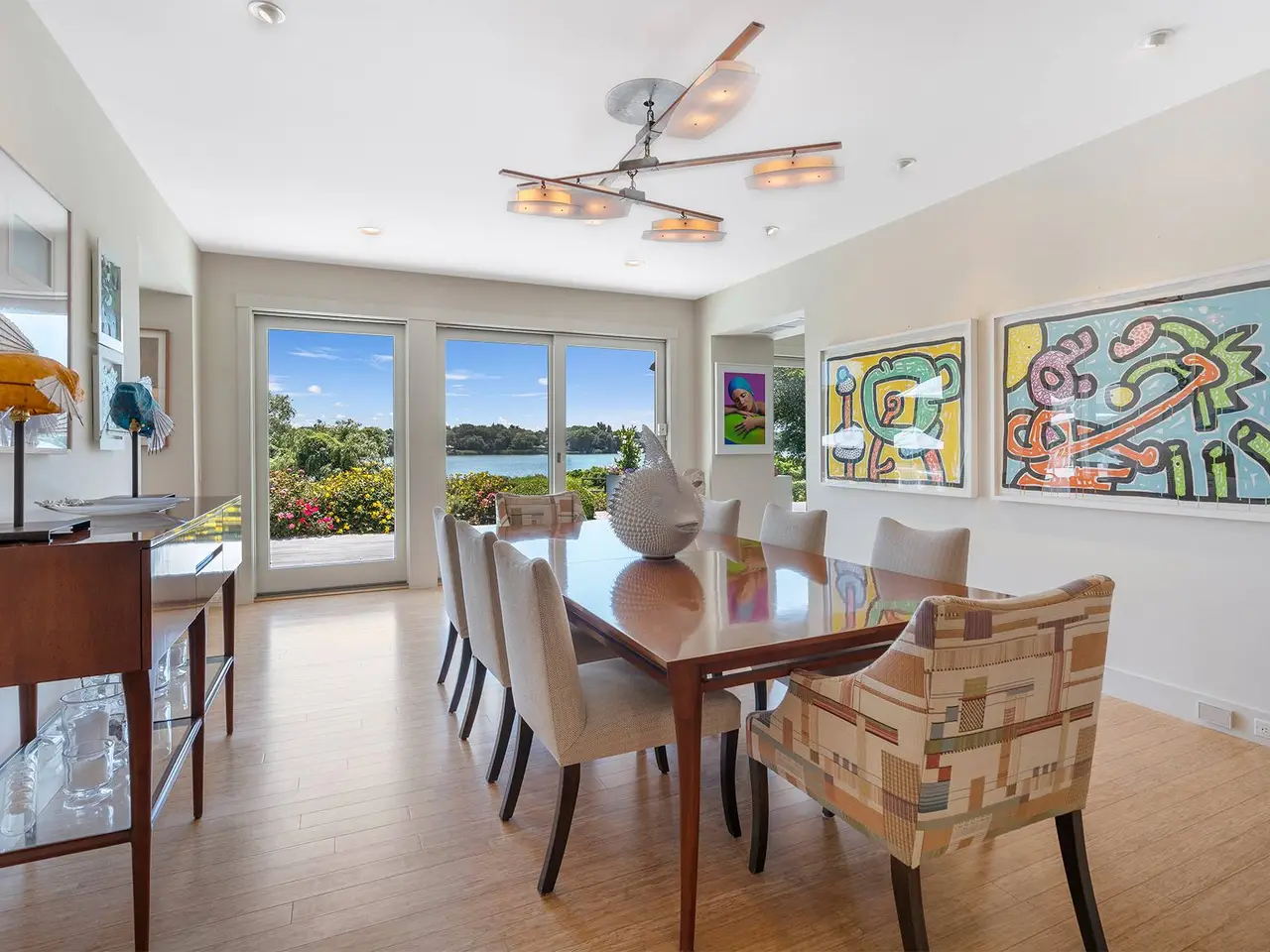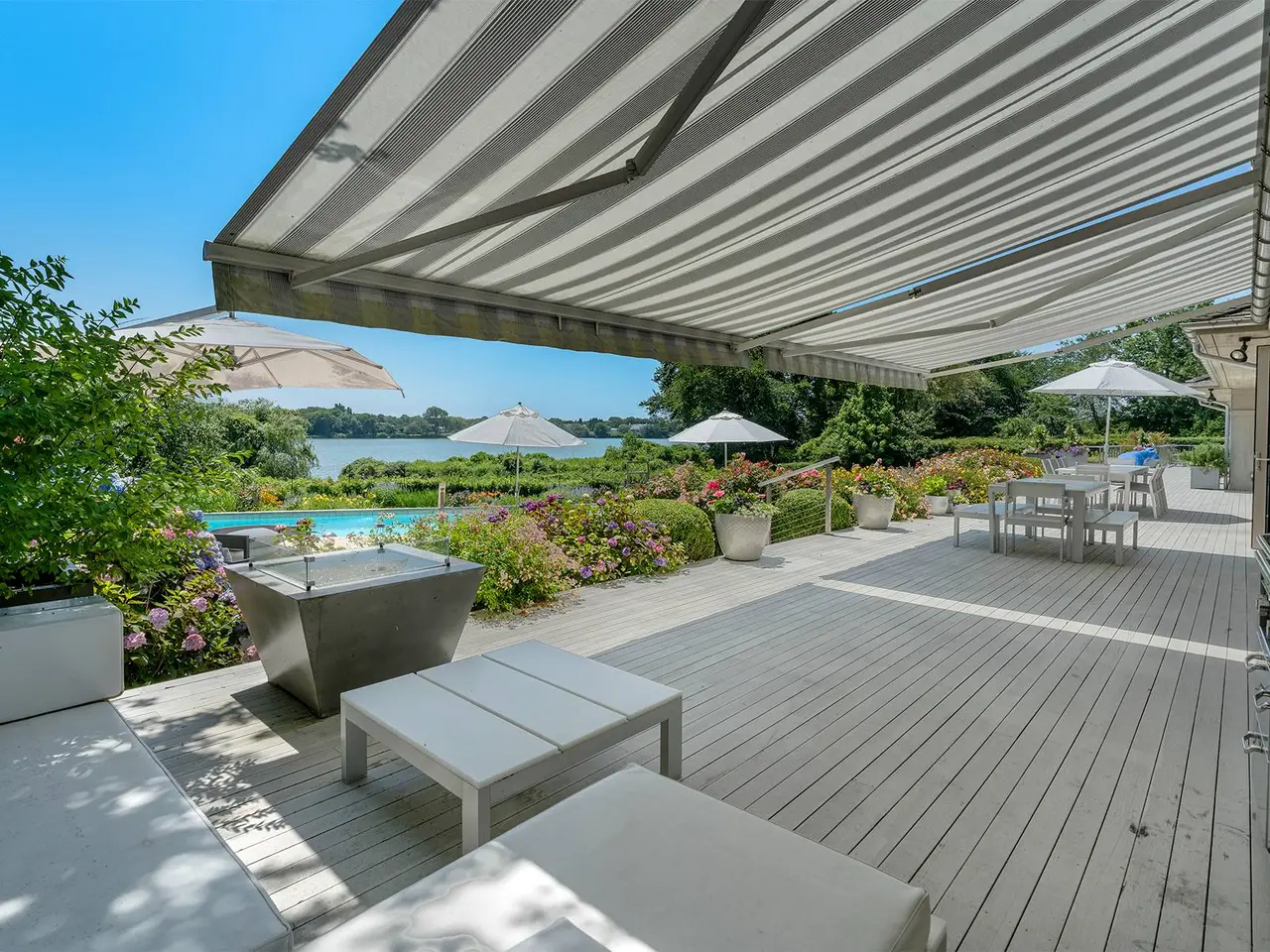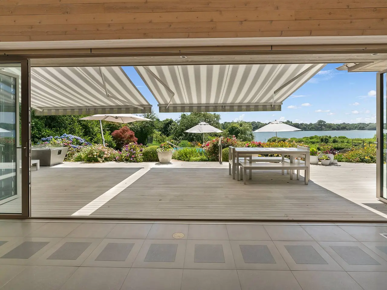 This custom-built estate offers striking panoramic water views across Mill Pond with 700 feet of waterfront on two plus bucolic acres. The 8000 +/- square feet modern beauty consists of six bedrooms, eight bathrooms, custom crafted and light flooded with 30 foot ceilings, and full access overlooking the pond, The indoor/outdoor pavilion completely opens with folding glass walls to the heated Gunite pool and spa. The family room with bar and fireplace are adjacent to the paneled study. A top-of-the-line chef's kitchen and large prep kitchen add to the unique quality of this extraordinary house. The spacious first floor master suite offers dual baths, giant custom closets and a sliding glass door providing private access to the grounds. Additionally, a second master suite and three more en-suite bedrooms with terraces are separated by a gallery on the upper level. The lower level includes a light-filled gym, billiards room, ping pong and gaming room, extensive wine refrigeration and media room with kitchenette, another bedroom and bath for overflow as well. Access all three levels with the elevator. Magnificent grounds offer a mahogany deck and fire pit, all perfect for entertaining while enjoying the spectacular water views. Mature flowering gardens lead to the water's edge and private dock. Additional features include an elevator servicing all three levels, and a two-car garage. From this extraordinary estate, enjoy the year-round Hamptons sunsets. Listing ID: 736995