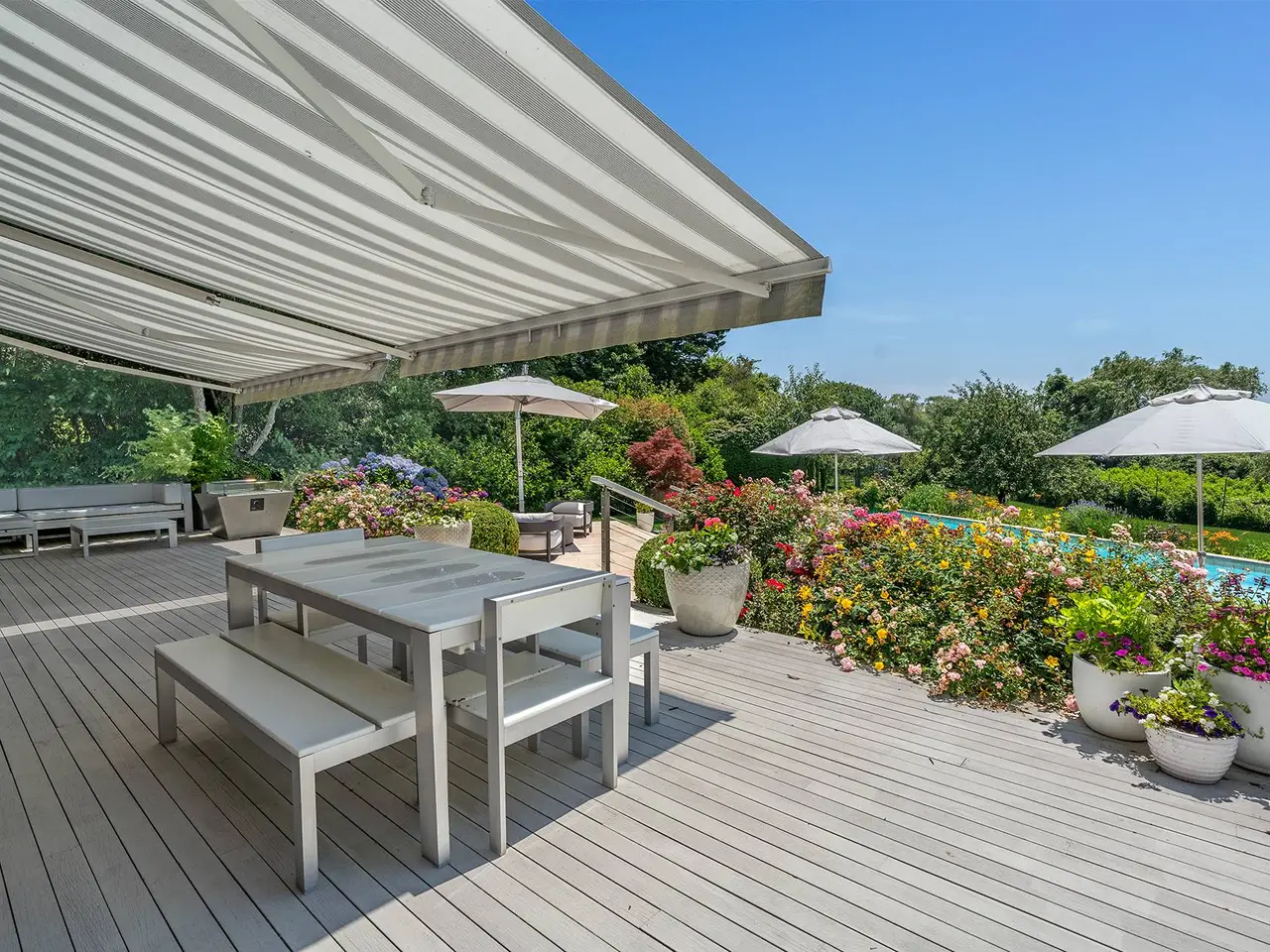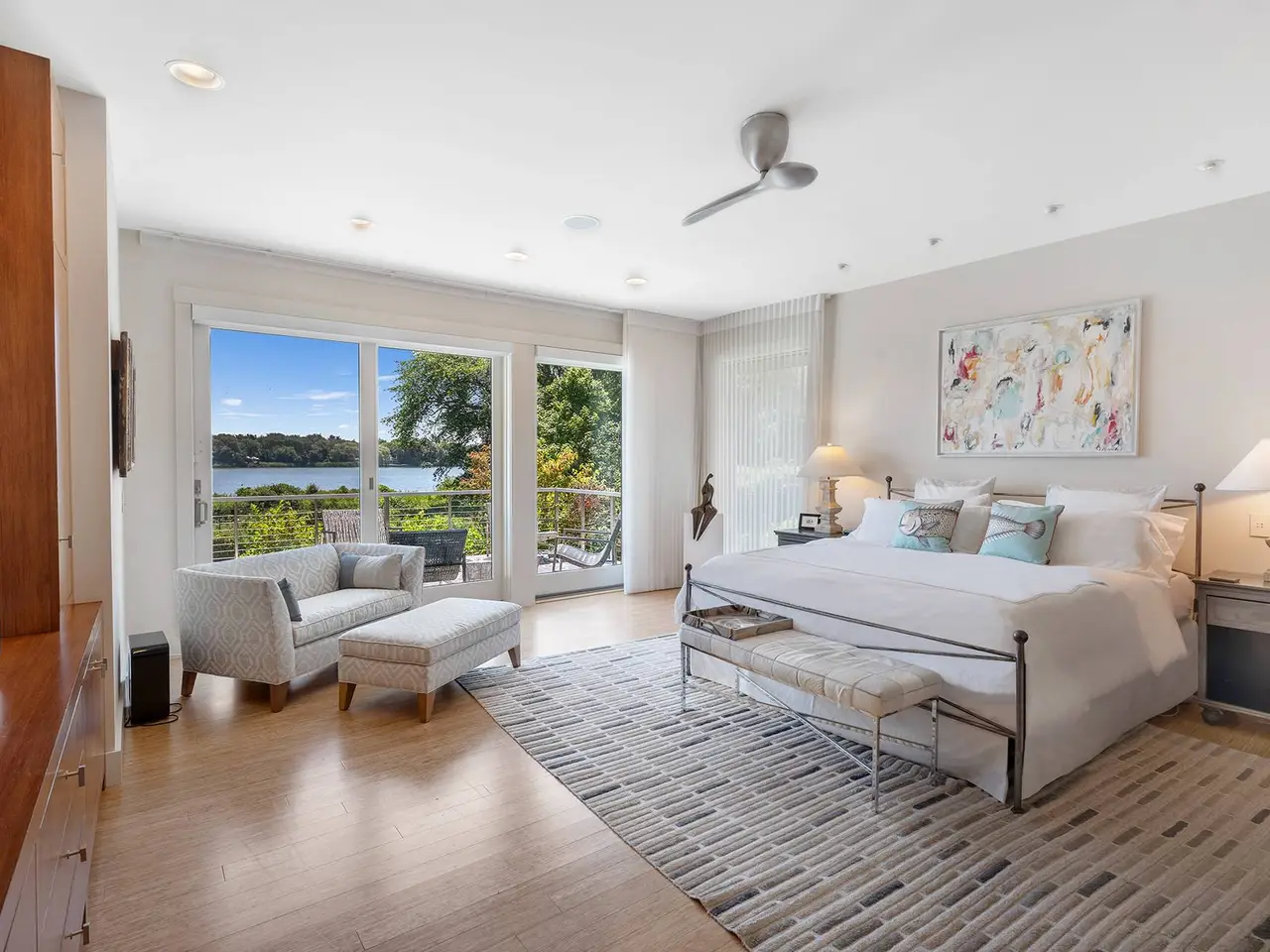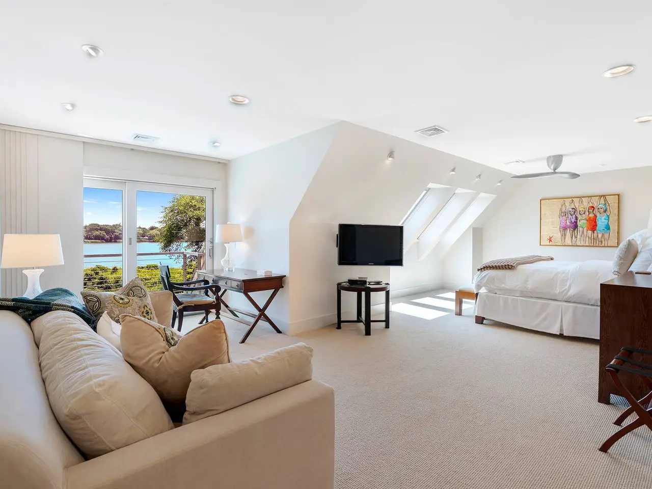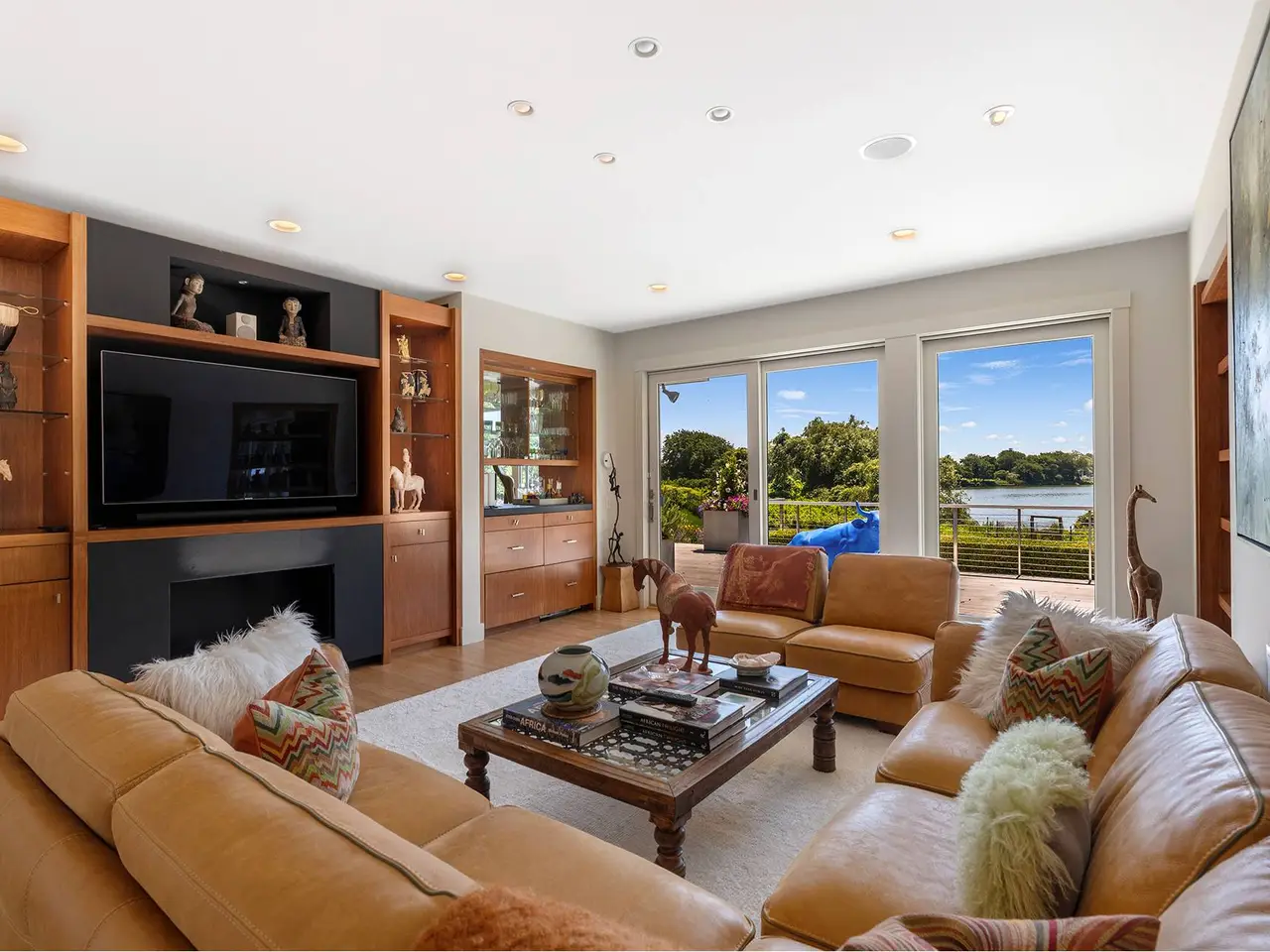 This custom-built estate offers striking panoramic water views across Mill Pond with 700 feet of waterfront on two plus bucolic acres. The 8000 +/- square feet modern beauty consists of six bedrooms, eight bathrooms, custom crafted and light flooded with 30 foot ceilings, and full access overlooking the pond, The indoor/outdoor pavilion completely opens with folding glass walls to the heated Gunite pool and spa. The family room with bar and fireplace are adjacent to the paneled study. A top-of-the-line chef's kitchen and large prep kitchen add to the unique quality of this extraordinary house. The spacious first floor master suite offers dual baths, giant custom closets and a sliding glass door providing private access to the grounds. Additionally, a second master suite and three more en-suite bedrooms with terraces are separated by a gallery on the upper level. The lower level includes a light-filled gym, billiards room, ping pong and gaming room, extensive wine refrigeration and media room with kitchenette, another bedroom and bath for overflow as well. Access all three levels with the elevator. Magnificent grounds offer a mahogany deck and fire pit, all perfect for entertaining while enjoying the spectacular water views. Mature flowering gardens lead to the water's edge and private dock. Additional features include an elevator servicing all three levels, and a two-car garage. From this extraordinary estate, enjoy the year-round Hamptons sunsets. Listing ID: 736995