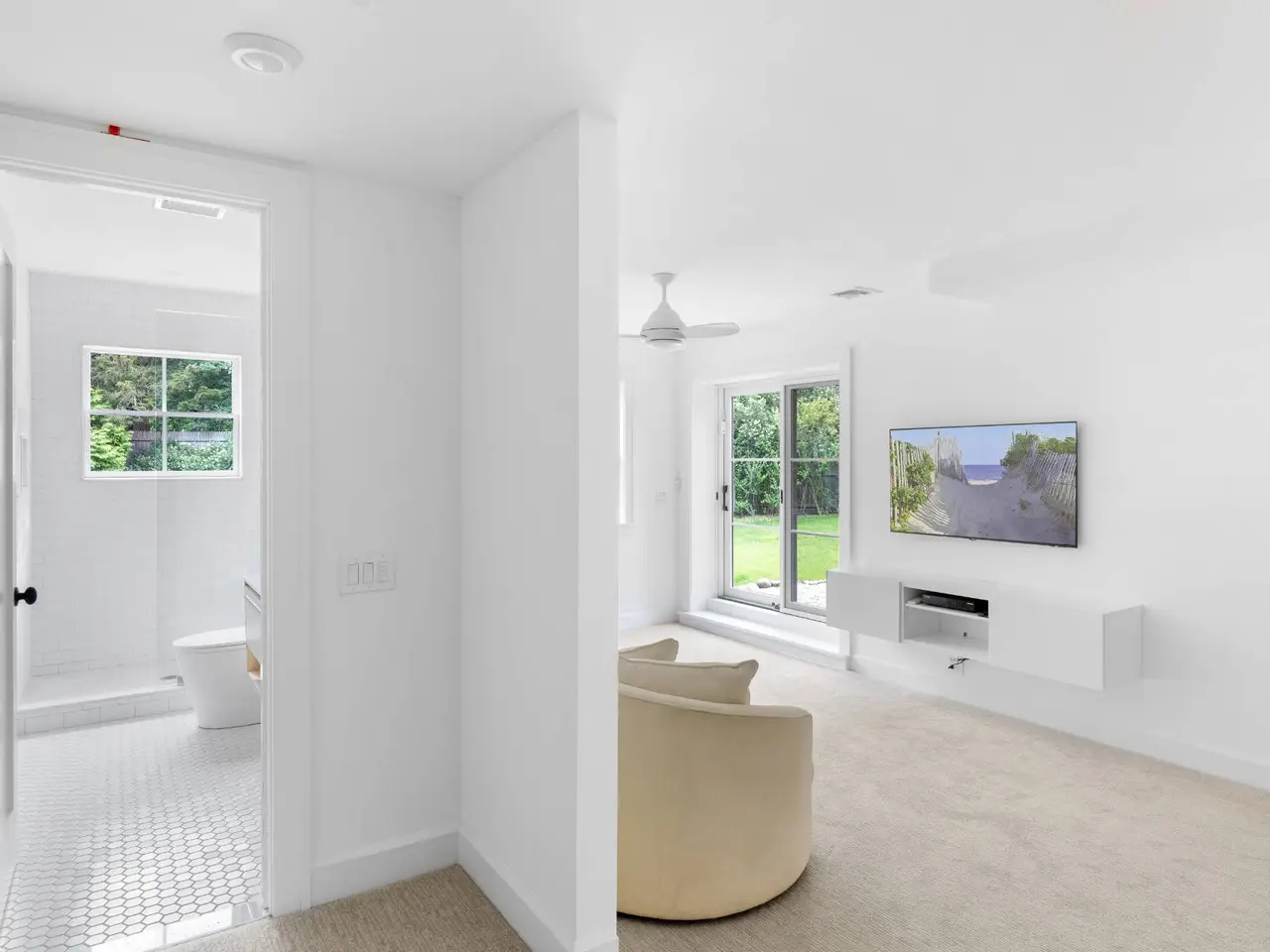 RR# RP230487. Located in Water Mill, South of the Highway, on a coveted, private lane, this luminous, new shingle-style construction features 6 bedrooms, 6.5 baths and 2 fireplaces across 5,400+ sf of living space. A light-filled entry leads to an open, spacious living room in a home featuring modern Asian decor. Five ample sliding glass doors open directly to the bluestone back patio, a heated gunite 20x40 pool, and a beautifully-landscaped backyard. The home also offers 2 primary suites with separate showers and soaking tubs, 4 ensuite bedrooms, including one with its own private entrance and patio. On the second floor, there are a library/meditation room and a private office space. The ground floor includes a recreation room with a ping-pong table and one bay within the 2-car attached garage. Additional amenities include multiple outdoor areas for dining and entertaining, a gas-fired grill, a covered loggia, outdoor shower, and solar panels with backup electric storage. Just a few hundred feet down the road is water access to Hayground Cove and Mecox Bay beyond, perfect for kayaking, canoeing, or paddle boarding. The pristine Flying Point Beach is just a short distance away on the quiet back roads of quaint Water Mill. Listing ID: 903266