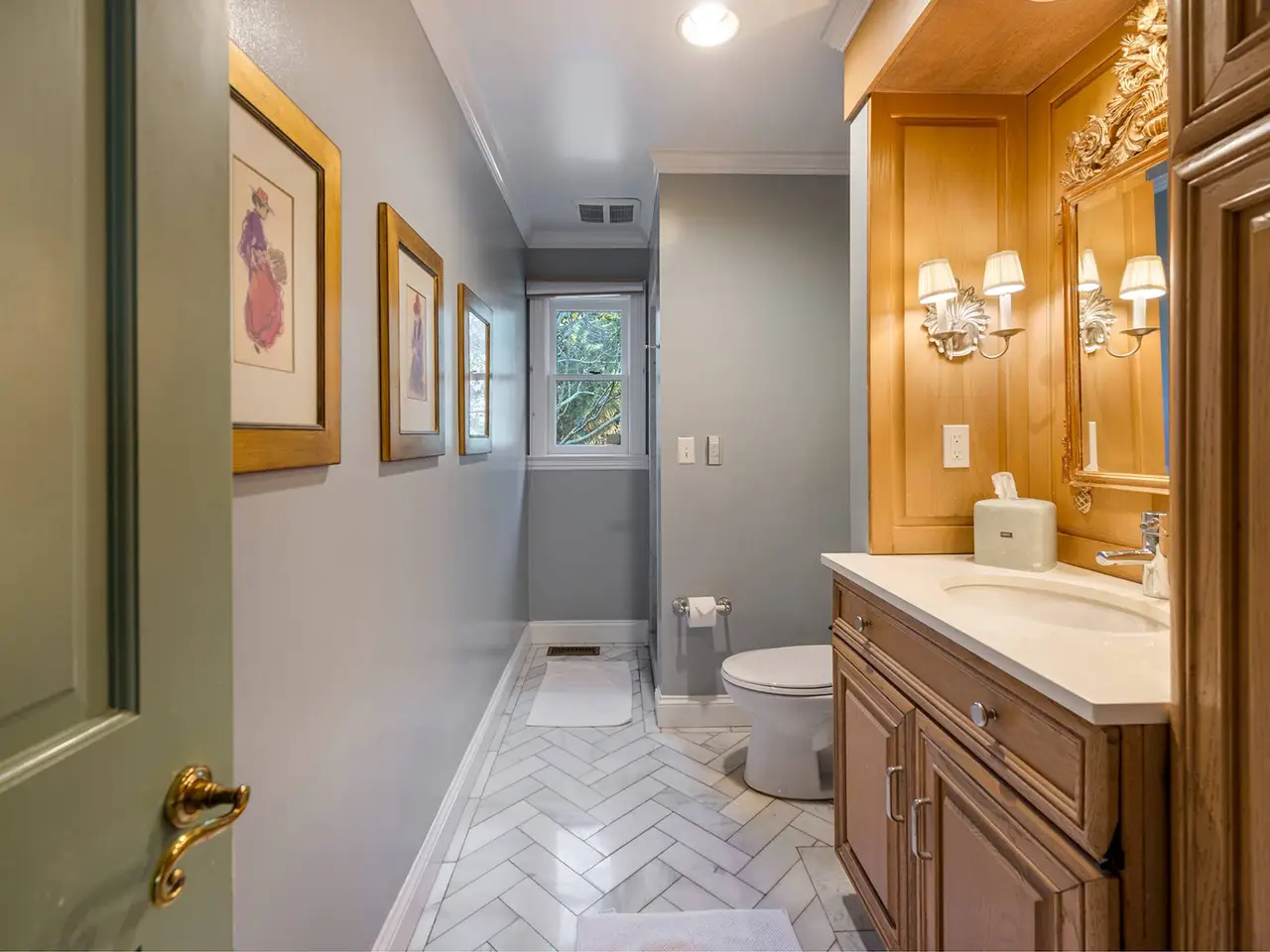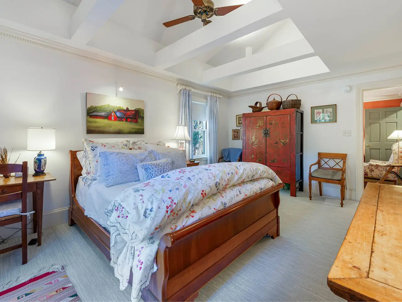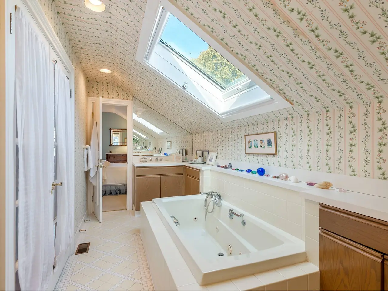 RP230499: This very private traditional home sits on a semi-circular lot, south of the highway looking out onto Mecox Bay with a private dock across the street. There are 4 bedrooms plus two rooms that can be converted into bedrooms. There are 4 full bathrooms, Jacuzzi, steam shower, a library, two living rooms, a sunroom, a large modern kitchen with Sub-Zero, Thermador, chambers, etc. and a full dining room to seat 12 people. Property has a heated pool, pool house with bathroom and outdoor shower, gazebo, pergola, koi fish pond, an audio system that extends throughout the property and modern WiFi. House is fully equipped and ready for a great summer with bikes and games and much more. The gardens are a labor of love and have been on garden tours.