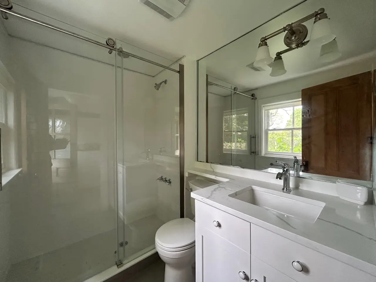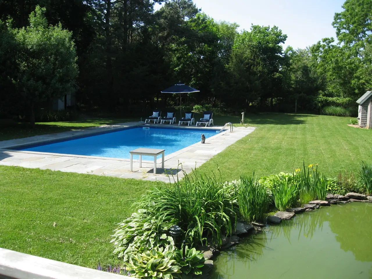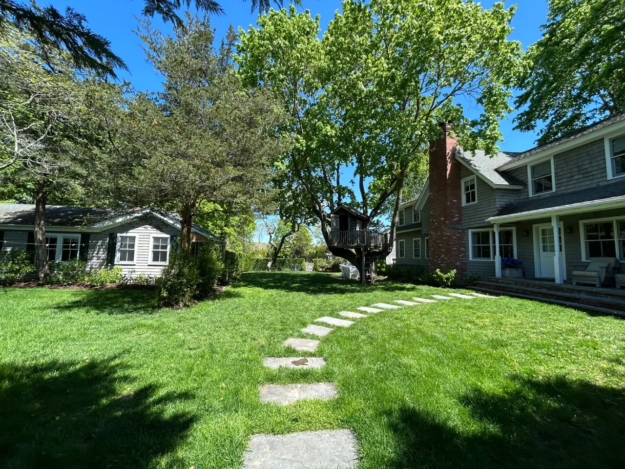 Enjoy your summer in this fabulous Water Mill compound close to the village and beaches. The two-story main house features a spacious eat-in kitchen, separate dining room, cozy living room with fireplace and separate sitting area. There is a junior master bedroom suite on the first floor for convenience. In addition to a master bedroom suite on the second floor, there are three more generous bedrooms and two baths upstairs. The country cottage on the property boasts a comfortable living room, full kitchen with breakfast area, full bath, and bedroom with a king bed. The cottage has its own private yard with patio. The compound also includes a separate studio/pool house with a living room, half bath, kitchenette, and sun room. The property sits amidst lush landscaping with ponds and heated pool.