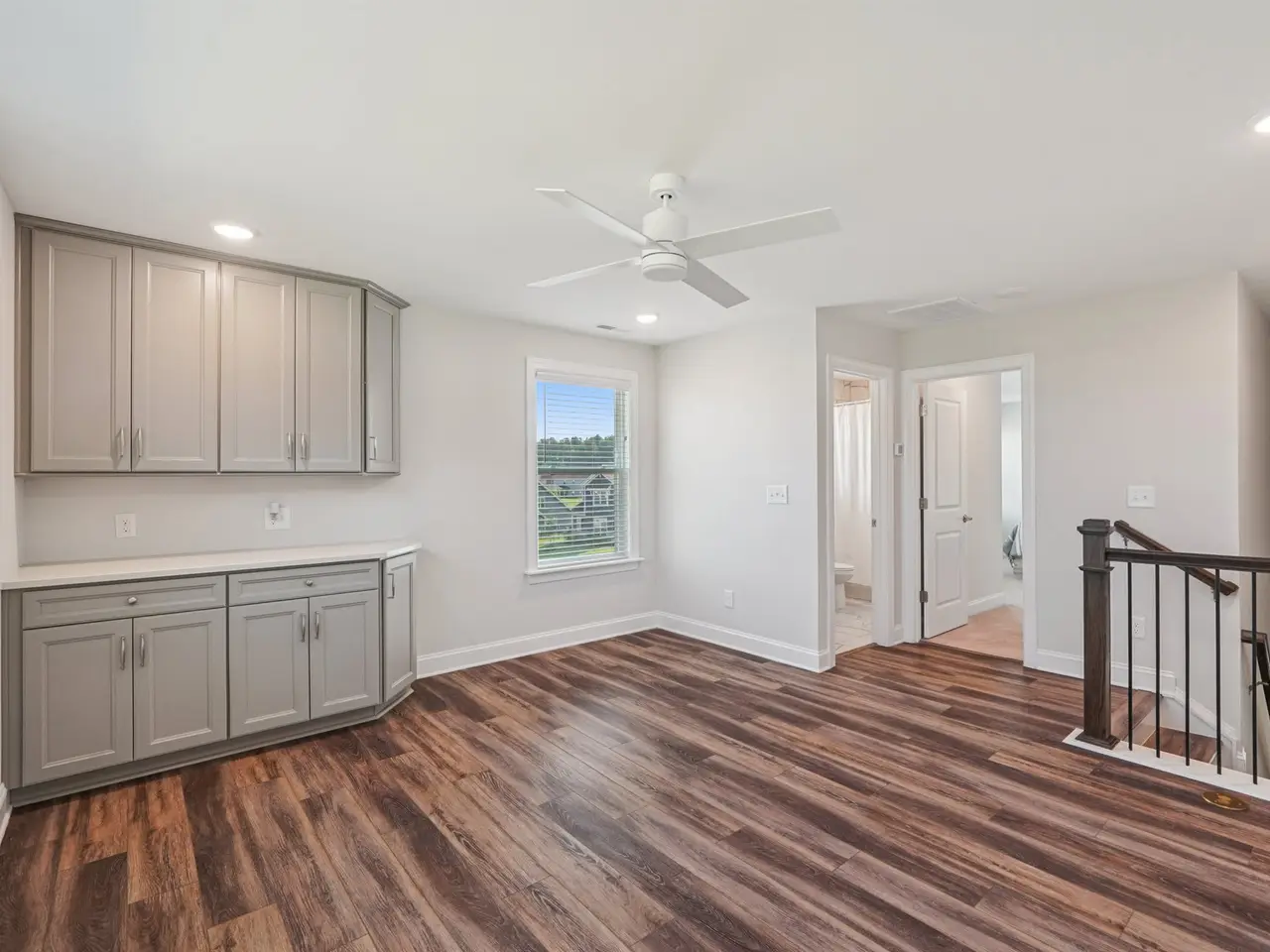 Freshly Priced! Beautiful east-facing, ranch-style home with over 2,600 SF on the main floor plus 500+ SF upstairs. The main level showcases a luxurious primary suite with spa-like shower, tray ceiling, custom closets, and quartz countertops (featured throughout the kitchen and all baths). Two additional bedrooms and full baths, a formal dining room, and a chef's kitchen with large quartz island, walk-in pantry, and drop zone complete the main level.Enjoy casual dining and gatherings in the spacious family room with gas fireplace. A private office offers built-in cabinetry, French doors to the family room, and sliding doors to the screened porch. Abundant natural light fills every space.Upstairs, a versatile loft with built-in cabinets, plus a 4th bedroom and full bath, create the perfect flex space. Outdoor living is ideal with a screened porch, paved patio, firepit, and a large, flat backyard just waiting to make this your own.Immaculately maintained and move-in ready?this home easily accommodates multi-generational living!