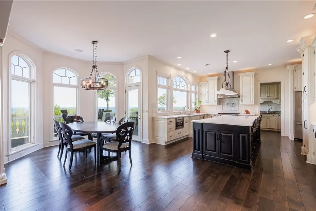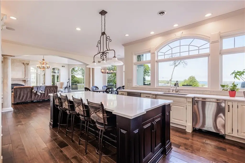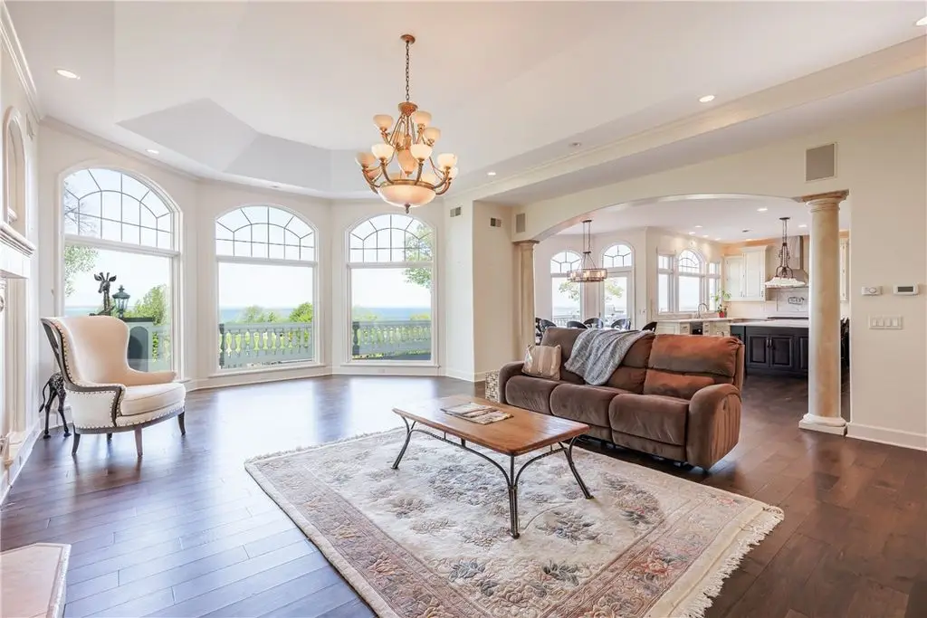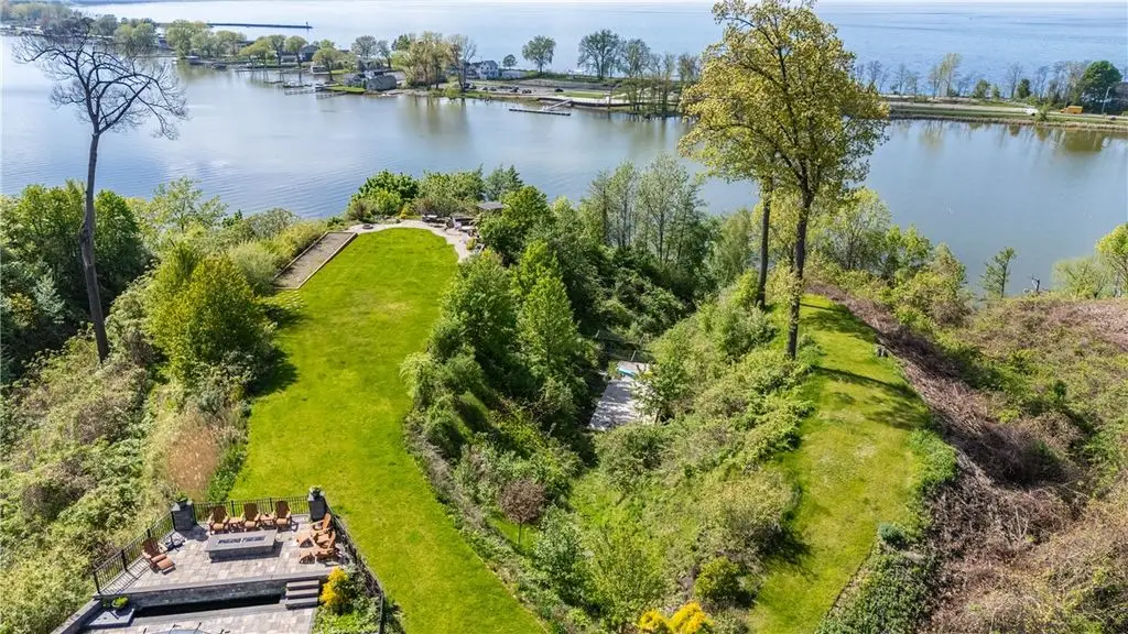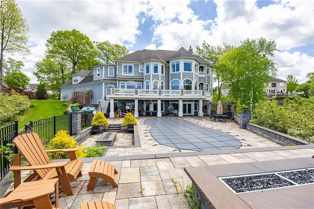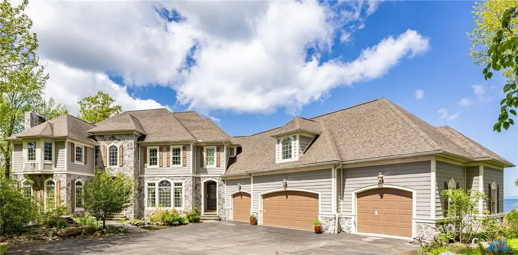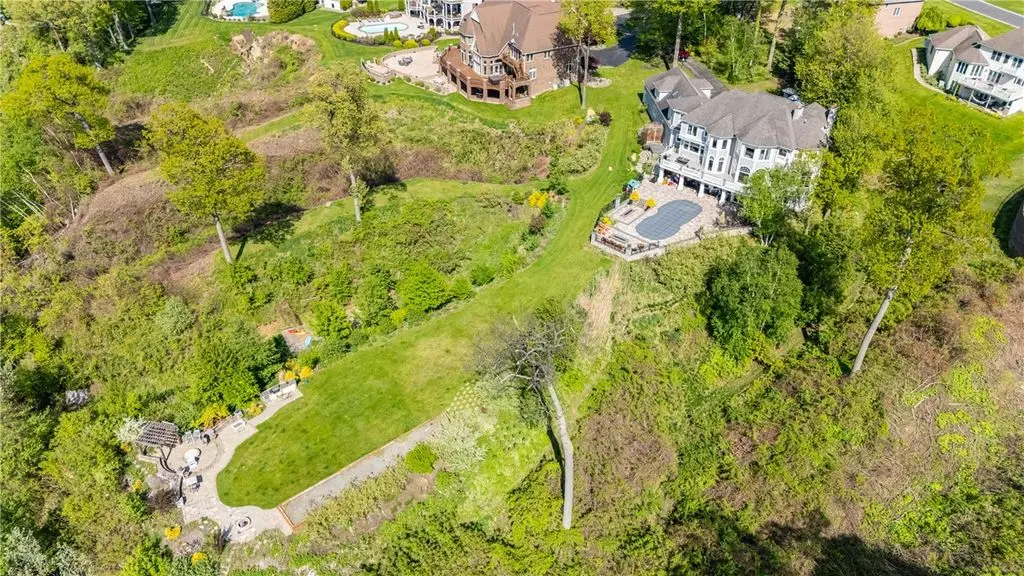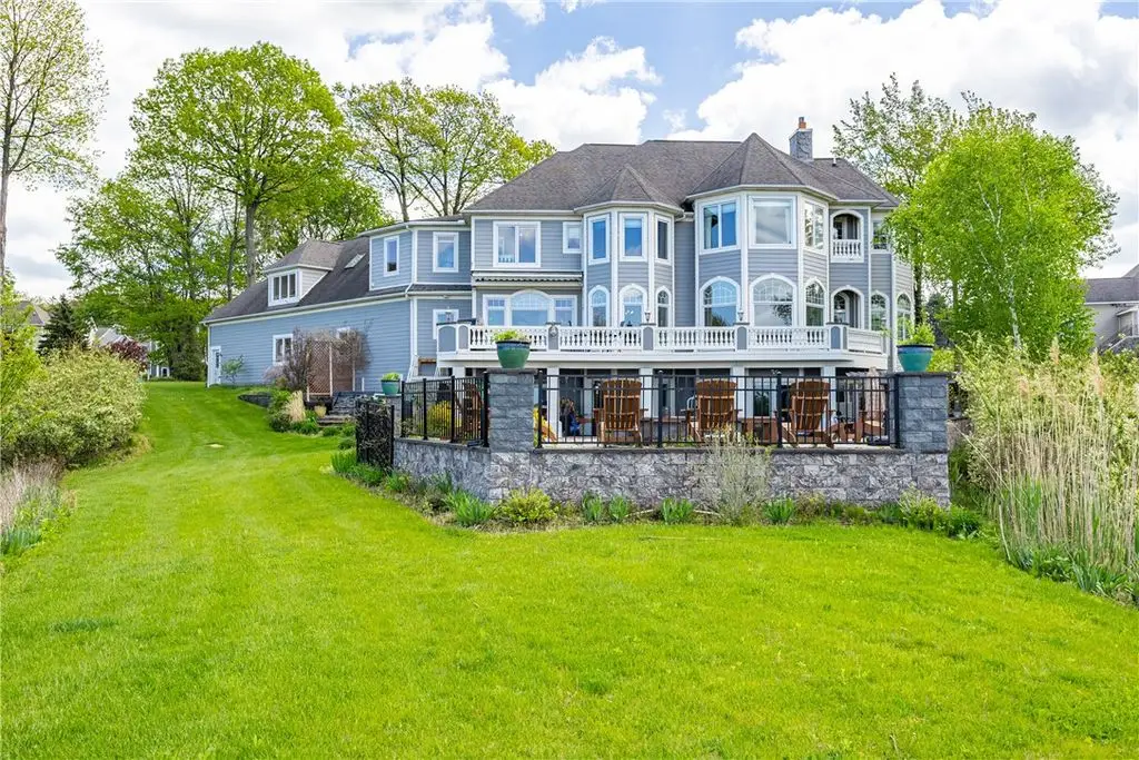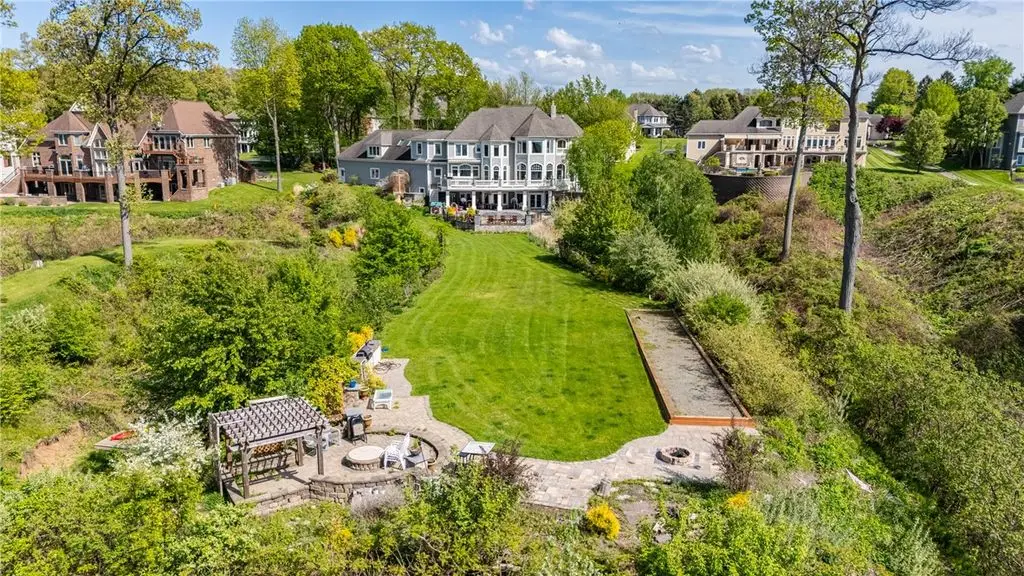UNPRECEDENTED CHATEAU STYLE 7,483 SF WATERFRONT MANSION IN THE BLUFFS WITH COMMANDING *TRIPLE-LAYERED* 180 DEGREE WATER VIEWS!! CREME DE LA CREME VIEWS & 112 FEET OF BEACH FRONTAGE PLUS OUTDOORS SPACES THAT CANNOT BE COMPARED!!! NOTHING QUITE LIKE THIS IN ALL OF WESTERN NEW YORK! DON’T GET VERTIGO TAKING IN THOSE MUTILAYERED VIEWS OF YOUR CUSTOM POOL WITH WATER FEATURES, THE IRONDEQUOIT BAY, AND LAKE ONTARIO!!! ON A CLEAR DAY SEE ALL THE WAY TO THE CHARLOTTE PIER & BEYOND! *TRI*LEVEL* LUXURY AWAITS INSIDE YOU ON THREE STUNNING FINISHED FLOORS! MULTIPLE OUTDOOR SPACES, INGROUND CUSTOM SALTWATER FIBERGLASS POOL SURROUNDED BY MASSIVE STONE PATIO W/ CUSTOM PERGOLA’D GRILL/KITCHEN/BAR AREA, & 2 CUSTOM FIREPITS – ONE SUNKEN & ONE ELEVATED OVER A WATER FEATURE & OVERLOOKS THOSE VIEWS! HOT TUB, MULTIPLE, LEVEL GRASSY AREAS WITH 2 MORE FIREPITS 1 WOOD, 1 GAS, TRAILS TO WATER/BEACH, WALKWAY TO COMMUNITY GAZEBO, BOAT DOCK W/ BOAT & JET SKI SLIPS! GET LOST & AMAZED INSIDE - CURRENT OWNER RENOVATED GOURMET KITCHEN W/ QUARTZ, GLASS, & MARBLE, WAVY GLASS CUSTOM RECESSED CABINETS, & THE ENTIRE LOWER LEVEL! ENTERTERTAIN FOODIES WITH GIGANTIC ISLAND, WINE/COFFEEE BAR W/ WINE CHILLER & STORAGE, & WALK IN BUTLER PANTRY! LIBRARY WITH ½ BATH, DINING ROOM, MUD ROOM AT SIDE DOOR, POWDER BATH AND QUADRUPLE BAY HEATED GARAGE! STUNNING VIEWS FROM GREAT ROOM, KITCHEN, BUTLER PANTRY, OCTAGONAL OFFICE, AND HUGE DECK– AND THAT’S JUST THE FIRST FLOOR! SECOND STORY HAS 5 BEDROOMS, 4 BATHS, AND THEATER/MUSIC ROOM! PRIMARY SUITE HAS SWEEPING VIEWS, DUAL CLOSETS, BATH WITH WATER CLOSET/DUAL VANITIES/SEP TUB, & CONNECTION TO OFFICE/NURSERY/LOUNGE! LOWER LEVEL WAS CONSTRUCTED BY CURRENT OWNER - HUGE ENTERTAINMENT SPACE, KITCHEN, GAME SPACE, DINING SPACE, BEDROOM, BATHROOM, WORK OUT ROOM, BEAUTY SALON, STAIR ACCESS TO THE GARAGE, & STORAGE SPACES! HATE STAIRS? USE YOUR PRIVATE ELEVATOR TO ACCESS ALL THREE FLOORS! ELEVATED CUSTOM DETAILS INCLUDES COFFERED AND TRAY CEILINGS, CURVED EDGED WALL CONSTRUCTION, RADIANT FLOORS *ON EVERY FLOOR & EVERY SURFACE*, BUILT-INS – MUST BE SEEN TO COMPREHEND! (TOTAL SF BASED ON RECORD + ADDT'L LOWER LEVEL 1,760 SF PER SELLER)