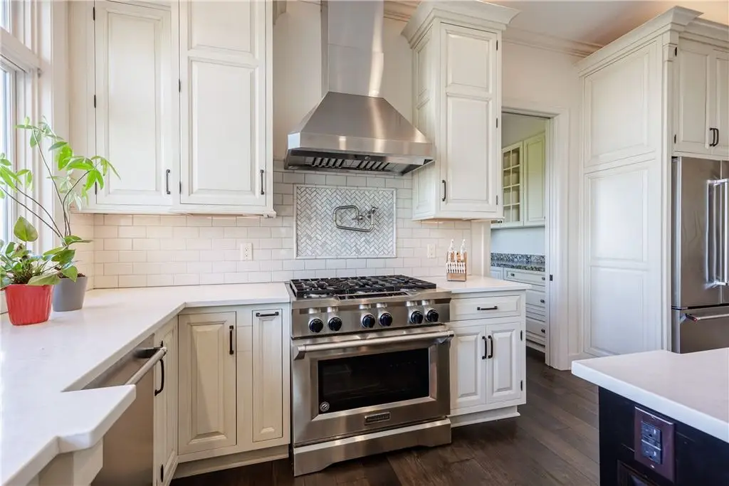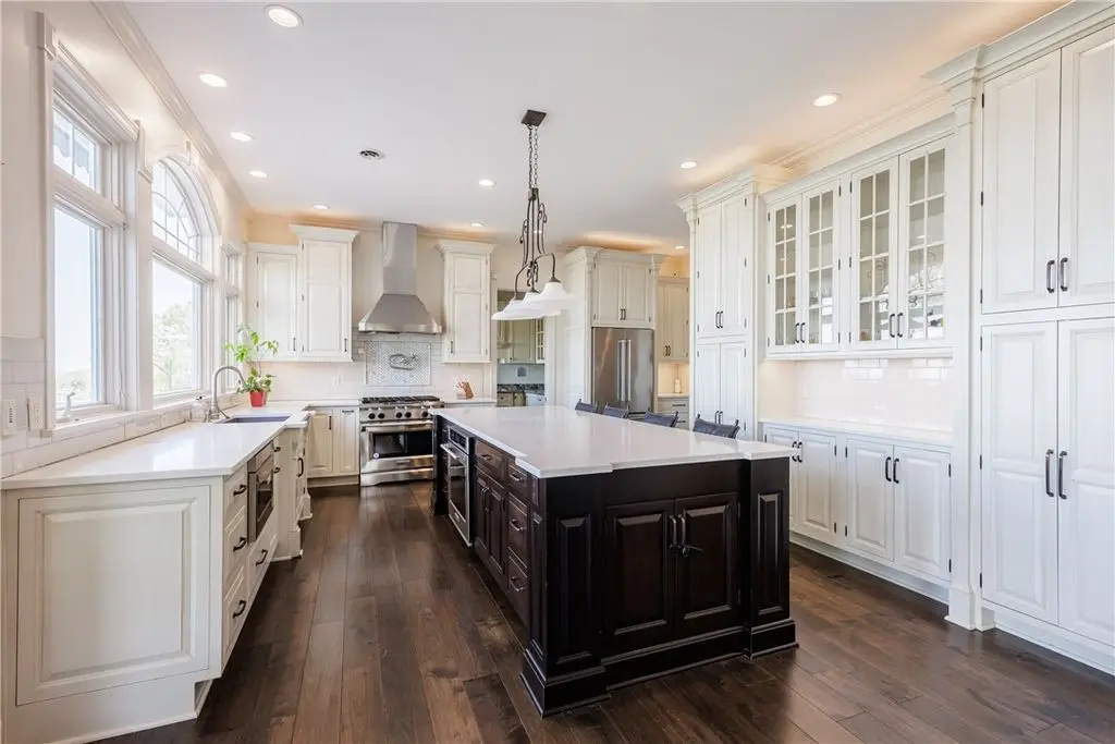 Gourmet kitchen with quartz, glass, marble