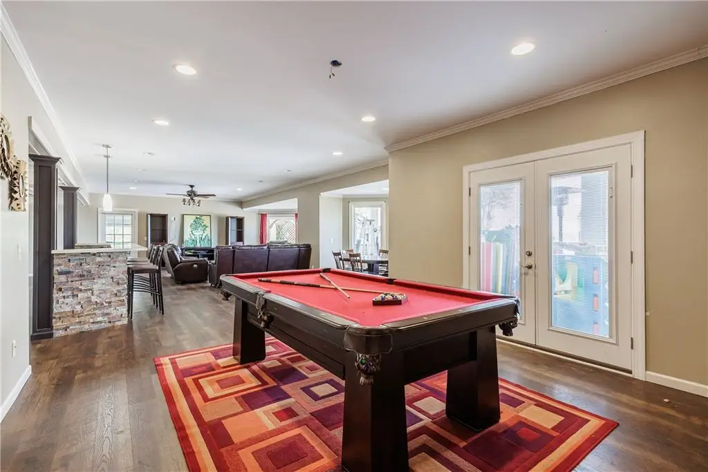 Massive stone patio with custom pergola