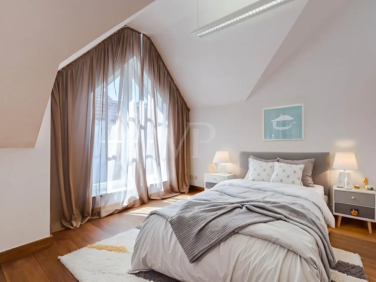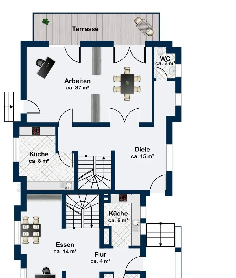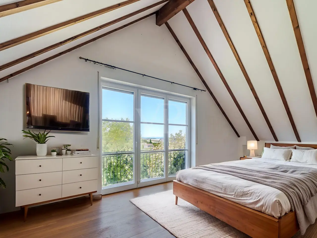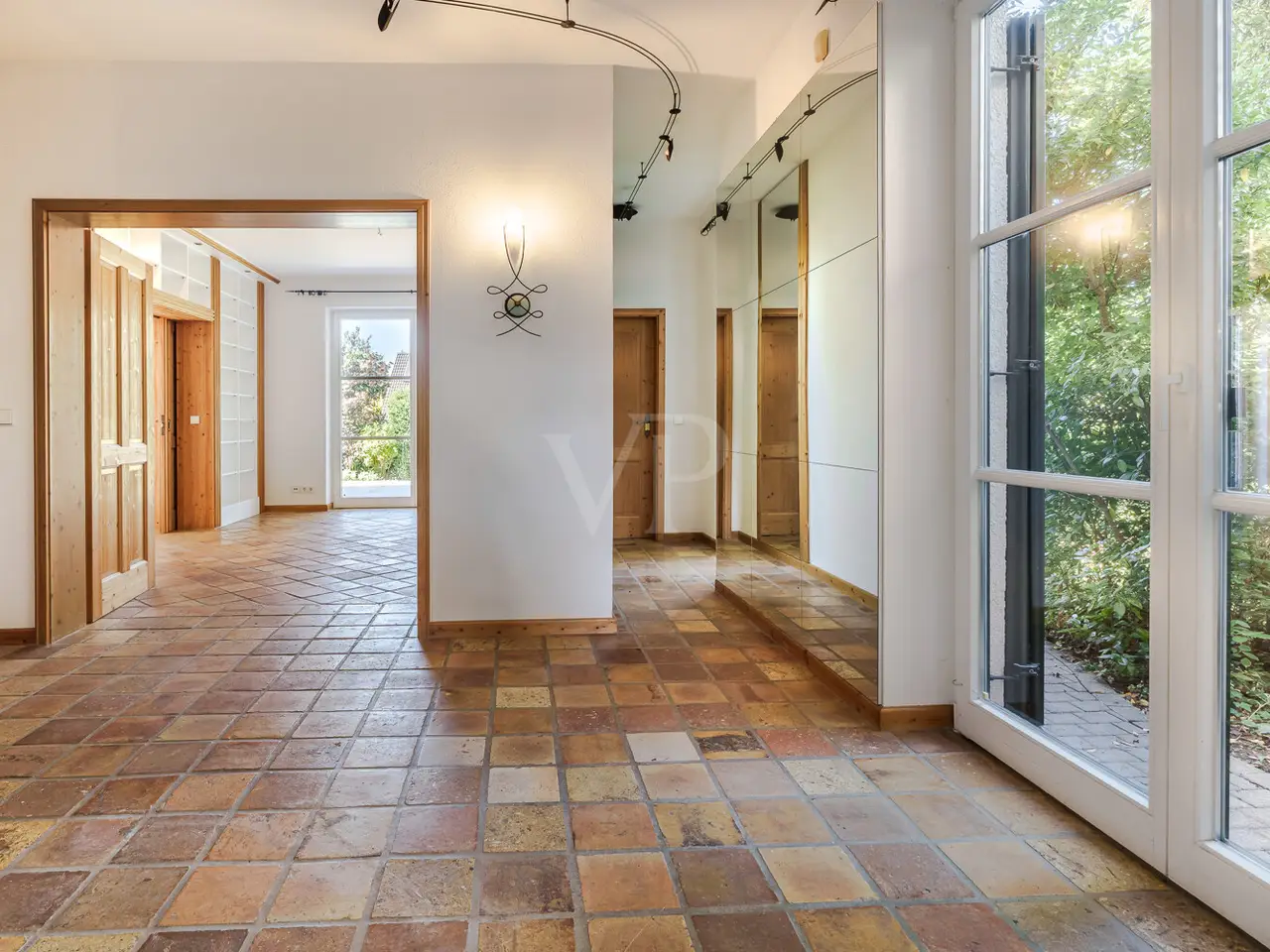 Just a few steps - and you are in the middle of the Taunus forest. Whether hiking, cycling or enjoying nature: here your leisure paradise starts almost on your doorstep. A wide range of leisure activities (such as tennis, horse riding, gliding, etc.) and the short journey time to Bad Homburg or Frankfurt will quickly convince you of Obernhain's location. Here in this sought-after residential area of Wehrheim-Obernhain, in a quiet and family-friendly environment, you will find this very special two-family house, which consists of two separate house halves, each with separate entrances. This results in a variety of possible uses: Living and working under one roof, as a multi-generational house - each for themselves and yet together, or for owner-occupation and partial letting to third parties, which offers attractive financing options. The solidly built house with two storeys and a full basement is in excellent condition with high-quality fittings and selected materials. There are 8 rooms in total, including 4 bedrooms and 2 bathrooms. Floor-to-ceiling window elements and the comfortable ceiling height of 2.93 m ensure light-flooded rooms and a pleasant living ambience and provide views of the romantic garden and the plants around the house from all rooms. A terrace adjoining the living area across the entire width of the house offers ideal conditions for enjoying the garden, which is virtually secluded in summer, as well as peace and privacy. Special features of the garden-side half of the house: The antique, French cotto flooring throughout the first floor exudes a very special charm and is complemented on the upper floor by solid country house floorboards in oiled oak. The light-flooded studio/bedroom is adjoined by a balcony that offers a romantic view of the garden. The daylight bathroom on the upper floor has a shower, bathtub and a double washbasin in Rosso Sardo with a ceiling-high mirror element. The first floor is dominated by the large, open living and dining area with access to the terrace, which can be separated by a sliding door. The current room divider, which can be used as shelving, can easily be removed, allowing for flexible use. Special features of the front building: Here, too, you can expect high-quality fittings with natural stone floors on the first floor (Jura banded), various built-in wardrobes including a mirrored wardrobe and also a room divider between the living and dining area, which can be easily removed. On the upper floor there are two further living/bedrooms, one of which has a dressing room and a daylight bathroom. From the balcony adjoining the bedroom, you have a wonderful view of the greenery. The technical equipment has a lot to offer, such as underfloor heating on all living levels, fiber optic connection, lightning and surge protection, as well as an alarm and water protection system in the garden-side house. Last but not least, the existing lighting with designer lamps reflects the special ambience. The boiler room in the basement is accessible from both houses and secured by lockable fire doors. The overall attractive design is also continued outside. Even the entrance area to the two halves of the house and the garden, in pink sandstone and the folding shutters, give the exterior of this house ensemble a very special flair. The low-maintenance garden behind the house with rose and shrub beds and a unique sandstone sculpture by the fountain invites you to linger and daydream. A spacious double carport with two additional parking spaces rounds off the offer. The property is available immediately. Get in touch with us today. We look forward to your inquiry.