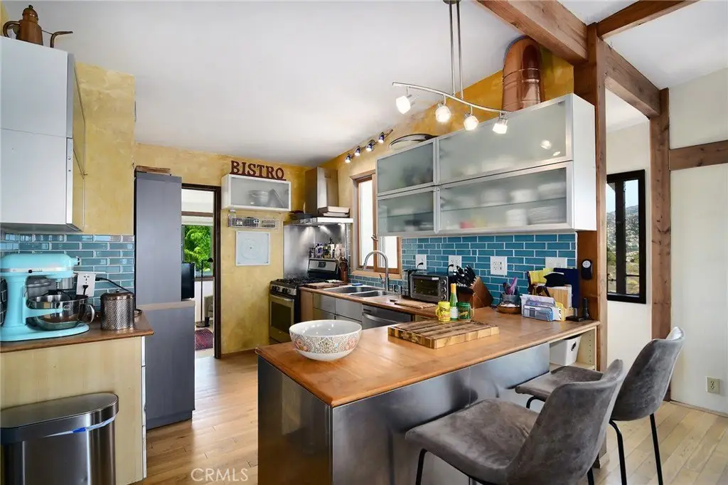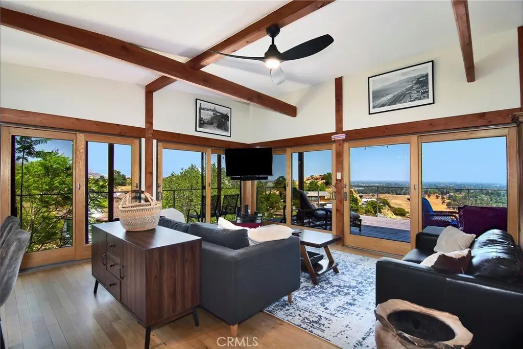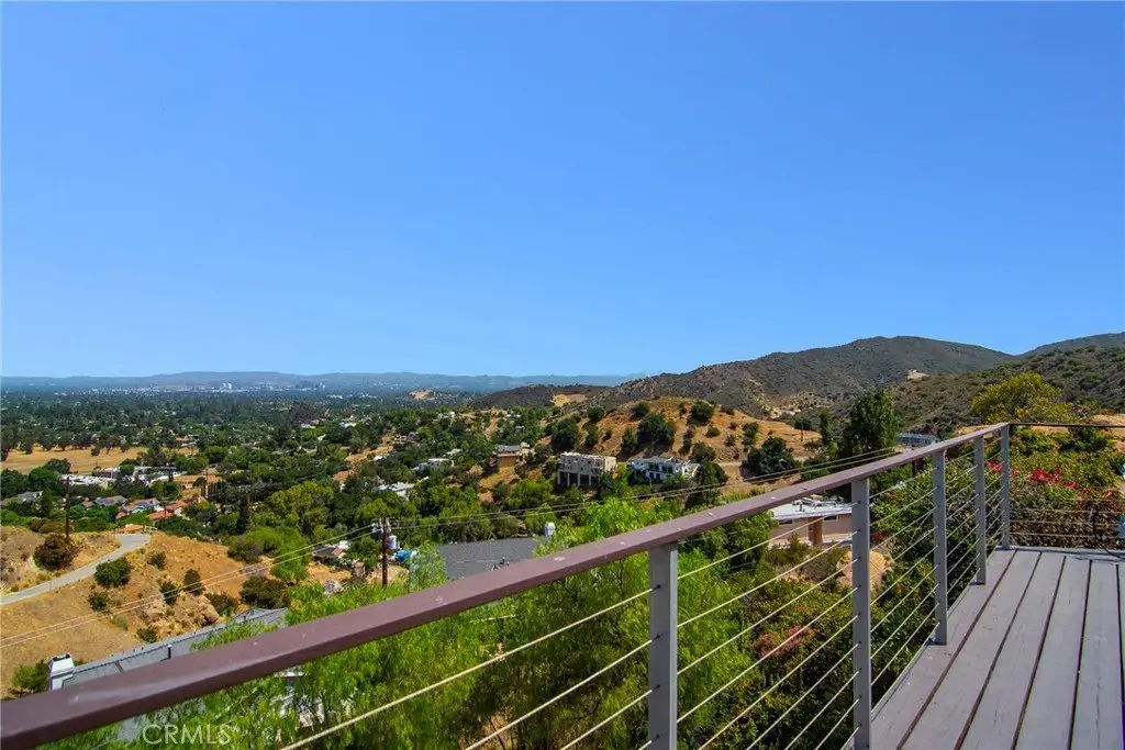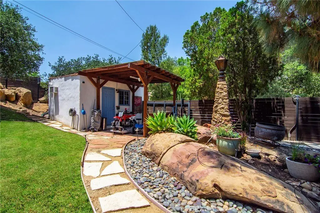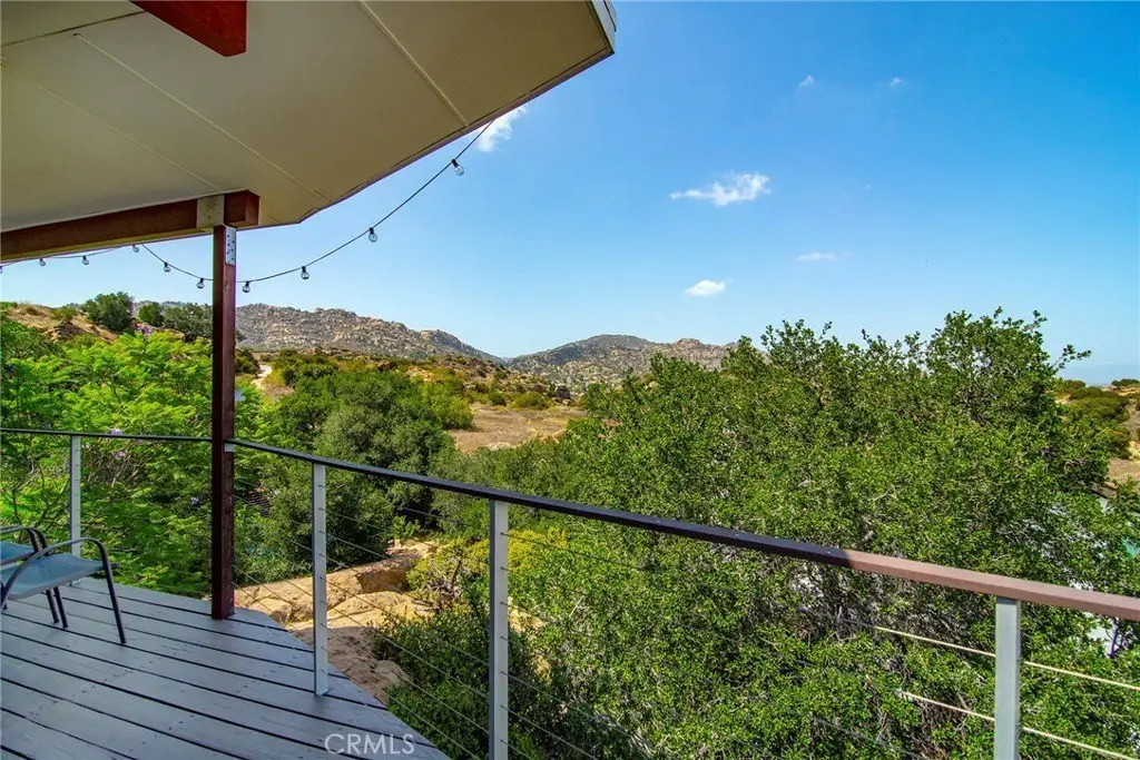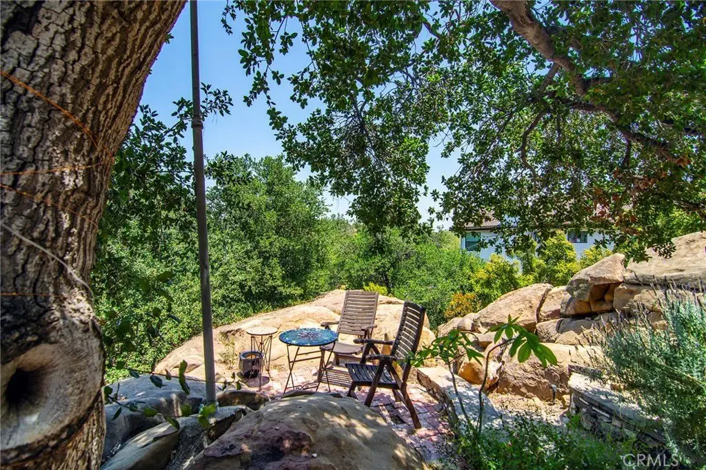 Hollywood Hills charm meets tranquil canyon living in West Hills. This one-of-a-kind Spanish adobe home is perched atop a sandstone ridge, offering unobstructed 360-degree views of the entire San Fernando Valley. Inside, you’ll find 3 bedrooms and 3 full baths across an open-concept floor plan featuring vaulted ceilings with exposed wood beams, creating a warm and airy ambiance. Enjoy seamless indoor-outdoor living with expansive sliding glass doors that open to a wraparound deck, sun deck, and a stylishly integrated above-ground pool with custom wood decking—perfect for relaxing, entertaining, or cooling off beneath the trees. The charming yard and sitting areas offer peaceful spaces to unwind while soaking in canyon and valley views. Modern upgrades include solar panels, a 200-amp electrical panel, landscape lighting, and a dedicated electrical panel by the pool. The property is fully fenced with dense Mangaris wood, and includes two sheds for extra storage, a one-car detached garage with carport, and ample parking. Smart home features include five Ring security cameras, a remote-controlled thermostat, and a WiFi-enabled deadbolt at the front gate, all easily managed from anywhere. Set at the end of a quiet, no-through street, this home offers ultimate privacy, European character, and direct access to incredible hiking trails. Other highlights include a mesh Wi-Fi system indoors and out, majestic oak trees, and the convenience of a main sewer connection (no septic). This rare architectural retreat seamlessly blends character, nature, and modern amenities.