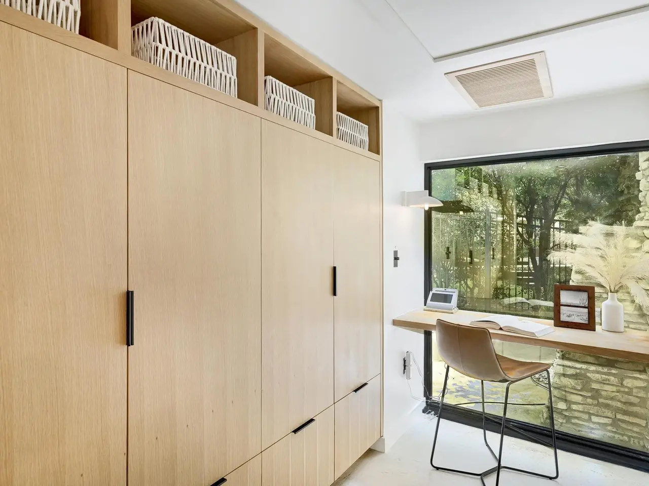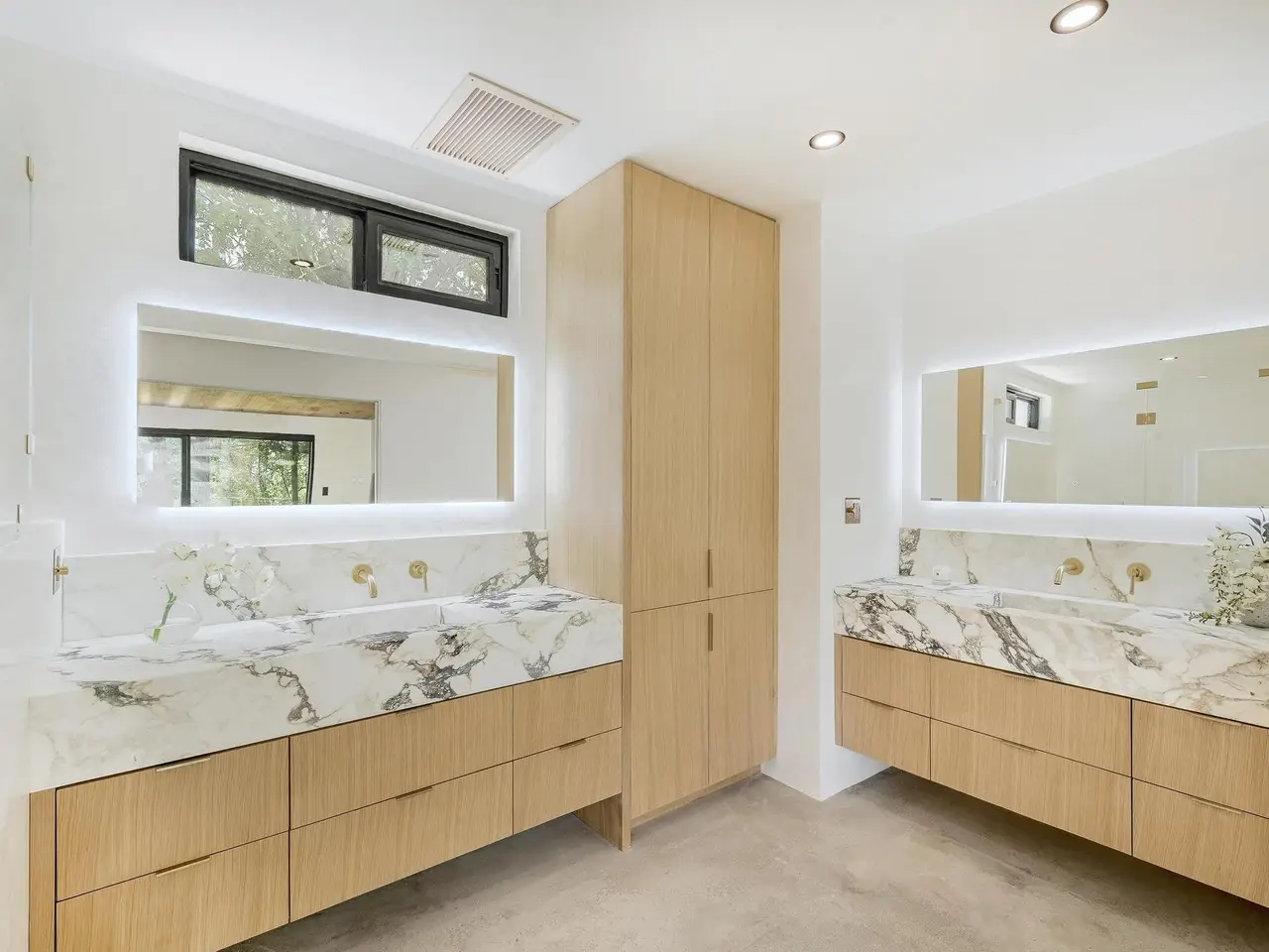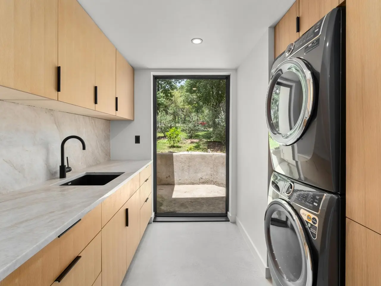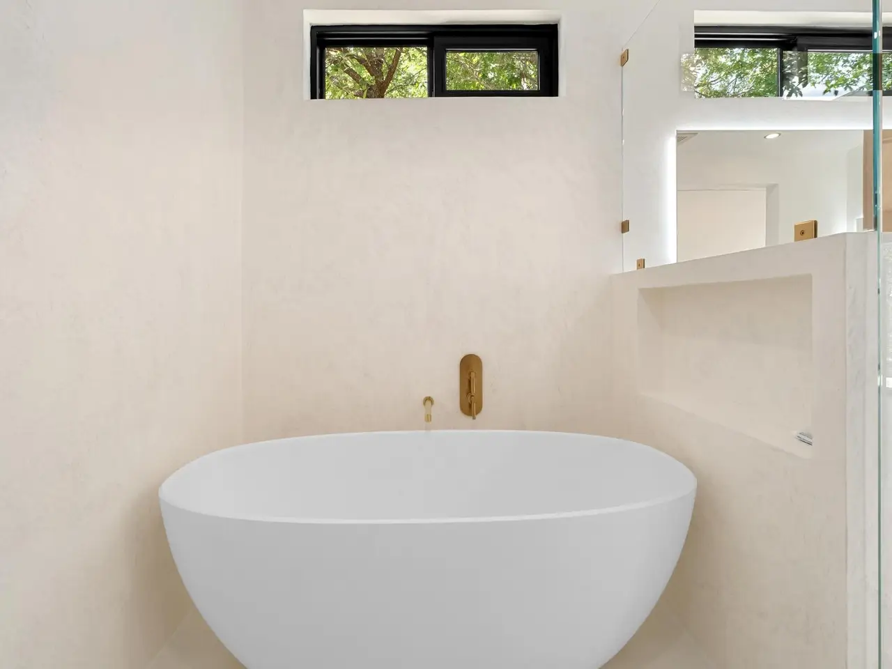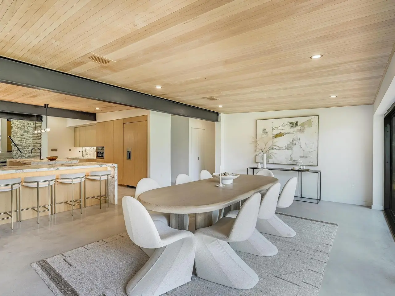 Tucked beneath a canopy of mature trees, 201 Redbud Trail invites you to experience the timeless charm of an expertly restored mid-century home, complete with a detached guest casita and pool house. Glass walls and expansive sliding doors open the home to its lush surroundings, blurring the boundary between indoors and out in the heart of central Westlake. From the moment you arrive, the architecture nods to another era -- but the updates are thoroughly modern, with elevated finishes, fixtures, and functionality throughout. The main residence features light-filled living spaces that open to patios and a pool courtyard, while the detached guest quarters include a fully outfitted outdoor kitchen -- ideal for entertaining or accommodating guests with privacy. This home offers the rare combination of architectural integrity, modern comfort, and natural seclusion -- all within Eanes ISD and just a few miles from downtown Austin and retail and dining in Westlake.