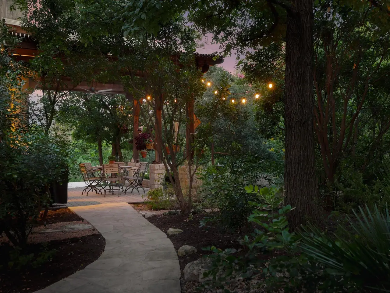103 Woodview Court is a private, light-filled retreat on over an acre in the coveted Las Lomas enclave of Westlake. Tucked within a quiet cul-de-sac, the home is set back from the street and framed by a looping, tree-lined drive that offers both convenience and seclusion. Its timeless façade is complemented by dual-level porches that extend a warm welcome and provide additional outdoor living space, while ample parking makes hosting effortless. Inside, a dramatic foyer with a sweeping staircase and soaring ceilings sets the tone for the home's inviting elegance. From here, the floorplan unfolds into airy, interconnected living spaces anchored by a striking two-story fireplace and overlooked by a spacious loft above. The main level includes a formal dining room with its own fireplace, a library/office opening through French doors to a screened porch, and the first of two expansive primary suites with a spa-style bath, walk-in closet, and private patio. Upstairs, a sunlit loft connects two large bedrooms with en-suite baths and walk-in closets, one with porch access. Across the loft, the second primary suite is a true retreat, featuring a generous dressing area, spa-like bathroom with heated floors and walk-in shower, and French doors opening to the upper porch. A hidden staircase leads to the finished attic, a versatile space with dormer windows ideal for play, creative use, or storage. Outdoors, the grounds are a nature-lover's paradise, filled with mature trees, blooming laurels, and native plants. Covered porches and multiple patios--one with a saltwater spa--create seamless indoor-outdoor living, while open lawns and garden spaces provide room for pets and play. Located within the acclaimed Eanes ISD and just minutes from schools, shops, and downtown Austin, 103 Woodview Court combines refined living, thoughtful design, and an enviable Westlake location.