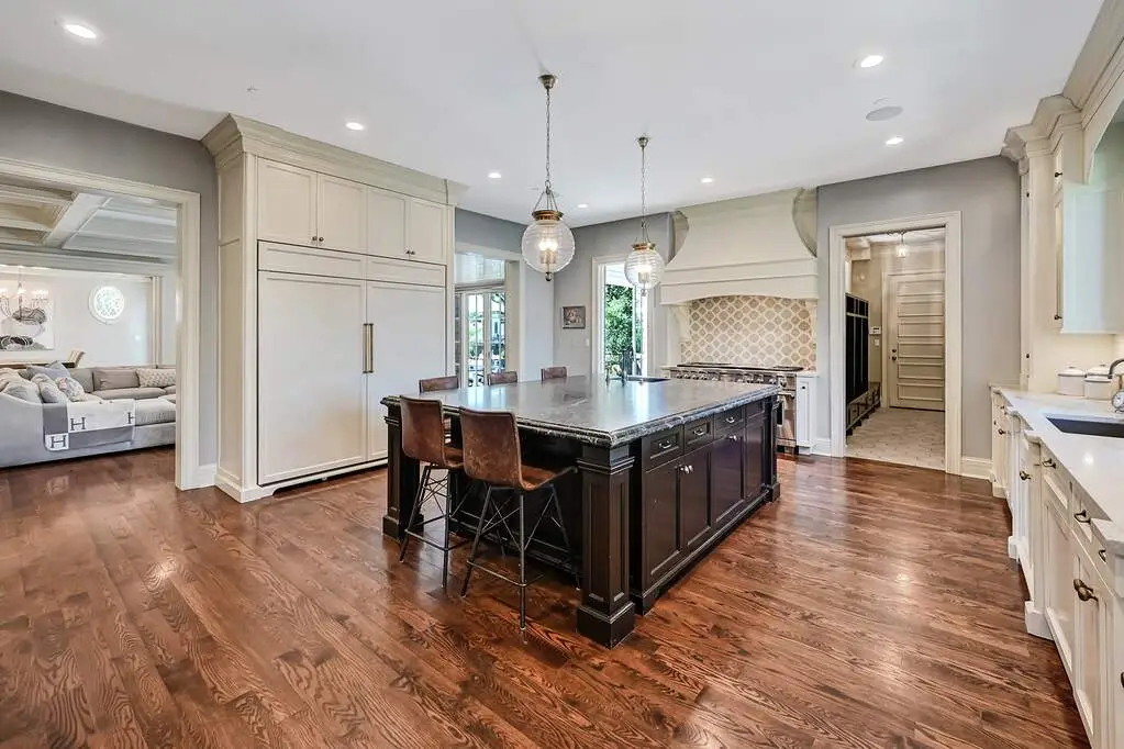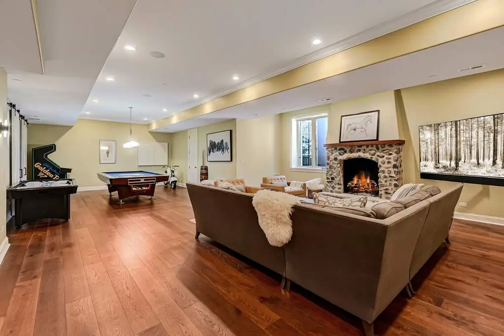 Exuding timeless elegance and masterful craftsmanship, this custom-built home stands proudly on a rare 120-by-187-foot lot in the prestigious Forest Hills neighborhood of Western Springs. Every detail of this 7,798-square-foot home reflects the artistry and precision of bespoke construction-offering a level of quality and character rarely achievable today. Thoughtfully designed for comfortable everyday living and grand-scale entertaining, it blends classic architectural form with sophisticated modern luxury. A dramatic two-story foyer introduces light-filled interiors with soaring ceilings, intricate millwork, and architectural symmetry showcasing the home's custom pedigree. The expansive family room features coffered ceilings, a limestone fireplace, and walls of windows overlooking professionally curated grounds. A seamless transition leads to the formal dining room with French doors opening to a bluestone terrace-perfect for indoor-outdoor gatherings. The designer kitchen is a true statement in craftsmanship and function. Anchored by a reclaimed-brick fireplace, it features an oversized island with honed stone countertops, Wolf range, double ovens, artisan tile backsplash, and handcrafted cabinetry-details that reflect the bespoke nature of this residence. A vaulted breakfast room offers the perfect place for family dinners by the stone fireplace. A private office framed by French doors, and a first-floor bedroom suite with a fireplace, a walk-in closet with laundry, and a full bath complete the main level. Upstairs, the grand primary suite is a peaceful retreat featuring a private balcony, two walk-in closets, a spa bathroom with heated floors, dual vanities, a freestanding soaking tub, and a glass-enclosed shower. Three additional bedroom suites, each beautifully designed, share access to a versatile flex space with a winding staircase that leads to a whimsical upper-level retreat, ideal for reading, playing, or creative activities. The primary laundry room is also located here. The finished lower level is an entertainer's dream. It features a full sports court, a stone fireplace, a large family and gaming area, a large bedroom with a full bath, and plenty of storage, including a wine room. Outdoors, resort-style living unfolds across a custom stone patio with covered outdoor kitchen, gas fire pit, and lush, irrigated landscaping. An attached one-car garage with mobility lift complements the heated detached three-car garage with upper-level flex space. Meticulously maintained, this home integrates 400-amp service, dual-zoned HVAC, a whole-house generator, sprinkler, and security systems. This is a once-in-a-lifetime opportunity to own a curated, timeless home in a true walk-to-town, train, and school location.