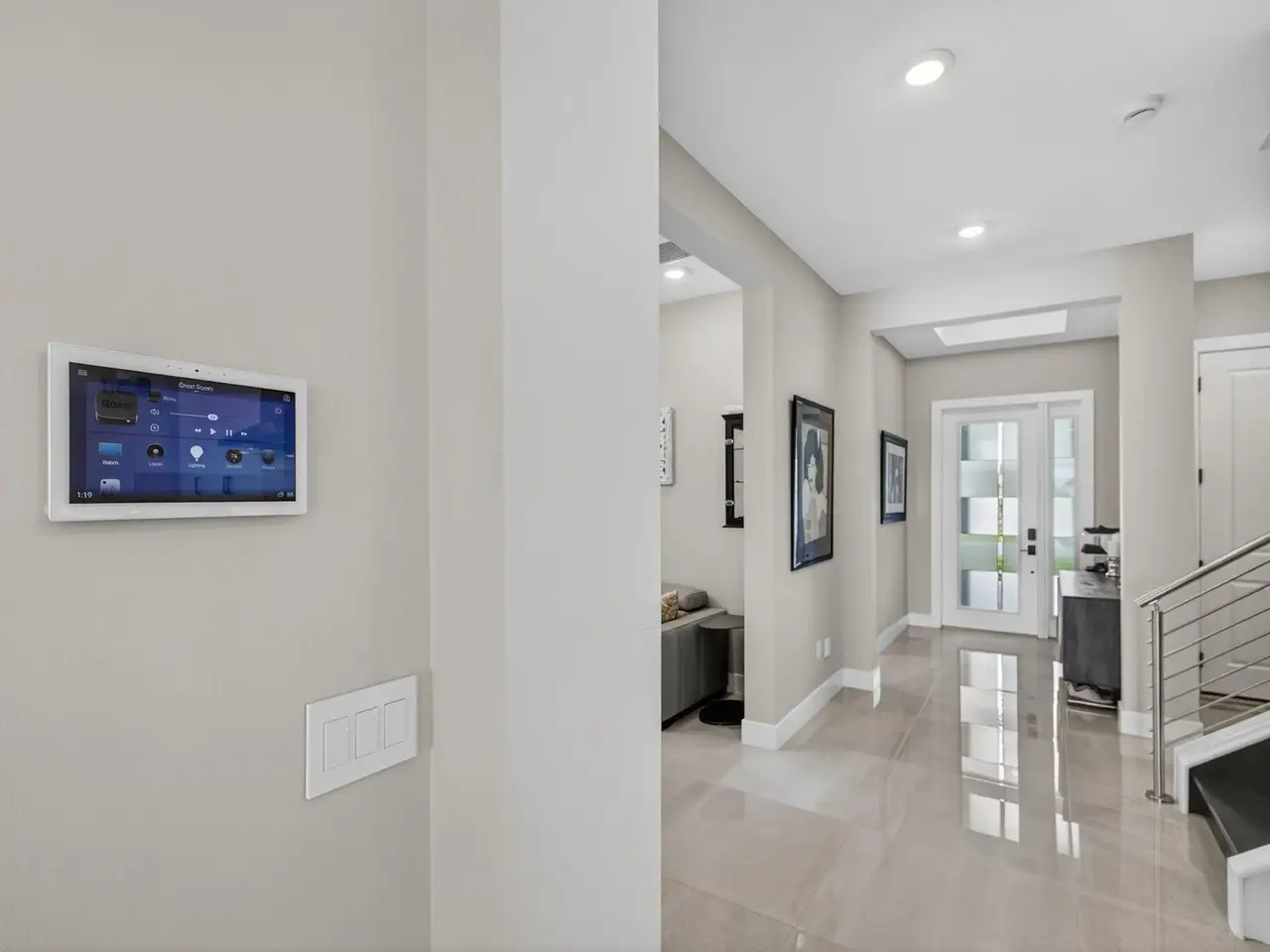 This is luxury Florida living at its finest, located on a waterfront lot, this designer styled home has been thoughtfully crafted with limitless upgrades and high-end finishes. The focal point of this home is the gourmet kitchen with waterfall quartz counters, level 7 soft close cabinets, GE Monogram SS appliances, six burner gas stove top, massive island and custom walk in butlers pantry. The luxurious primary suite features hardwood flooring, an oversized his/her walk in closet, smart mirrors and a spa like bathroom. The outdoor space is a true oasis featuring a heated pool surrounded by travertine decking, water views and a storm smart screening system. Also enjoy smart home technology, complete indoor/outdoor surround sound system and modern home theatre.