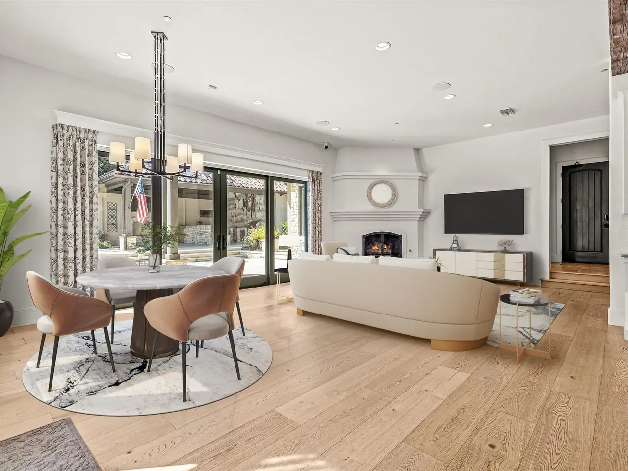Santa Barbara-inspired estate in Vaquero, privately tucked on a cul-de-sac within the coveted guarded and gated community. This 4 bedroom, 4 full and 3 half bath home features a 4-car garage with expanded driveway for additional parking. The gourmet kitchen is equipped with Thermador appliances, quartzite countertops, custom cabinetry and reclaimed warm beams, complemented by all-new Pella windows and doors and designer light fixtures throughout. The luxurious primary suite offers a sitting area with fireplace, while the spa-like bath is finished with Cremo Delicato marble countertops, Calacatta Gold marble floors and a zero-transition oversized shower. Upstairs youll find two bedrooms, a spacious game room and media room, perfect for entertaining and family fun. The outdoor oasis includes a NEW sparkling Claffey pool and spa, fire pit, pergola with grilling station and lush landscaping. Premier location with access to Westlake Academy IB World School and the option for a Social Vaquero membership available separately.