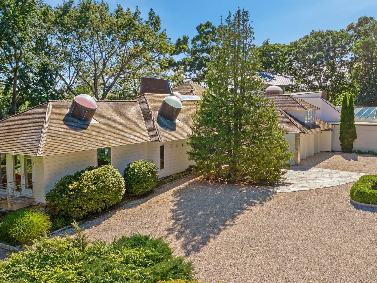 A true Westport icon, 11 Beachside Common is one of the most architecturally distinctive homes on the Connecticut coast-known to anyone who's ever strolled Burying Hill Beach. Set on 2.6 waterfront acres, the property offers sweeping southern views over Sherwood Island and Long Island Sound, with sunsets that rival the Low Country and birdlife that fills the surrounding marsh with movement and sound. With water access for kayaking and paddle boarding, it's a nature lover's paradise wrapped in high design.Originally built in 1971, the home underwent a $13M transformation under acclaimed architect James Biber of Pentagram. The goal: not to create rooms, but to dissolve them. Nearly 9,000 sq ft of open, gallery-like living space is unified by a 150-ft handmade tile path that runs the length of the main level. A soaring central room with exposed aluminum column is flanked by playful architectural elements -domes, portholes, skylight tubes, and a floating staircase.A 3-story tower, designed as the intellectual center of the home, offers 360-degree panoramic views and quiet workspace. This is a home where design, art, and imagination intersect-and where brilliant minds have found inspiration. From Academy Award winners to world-renowned scientists and adventurers, this home has drawn extraordinary lives. If genius gravitates toward whimsy, perhaps it's because whimsy makes room for wonder-and for those bold enough to see differently.