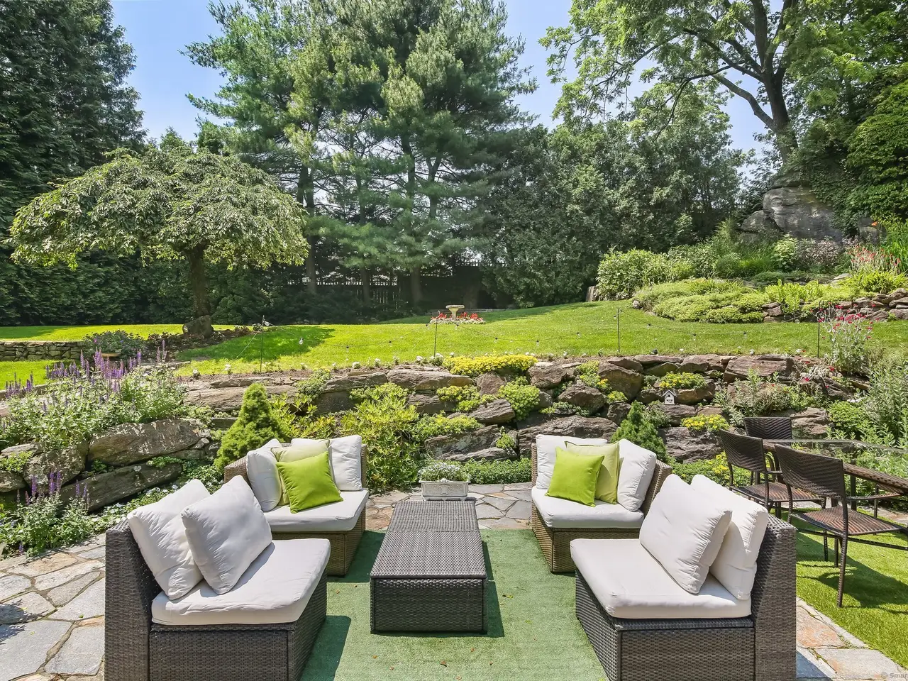 • Stone patios and lush gardens for entertaining