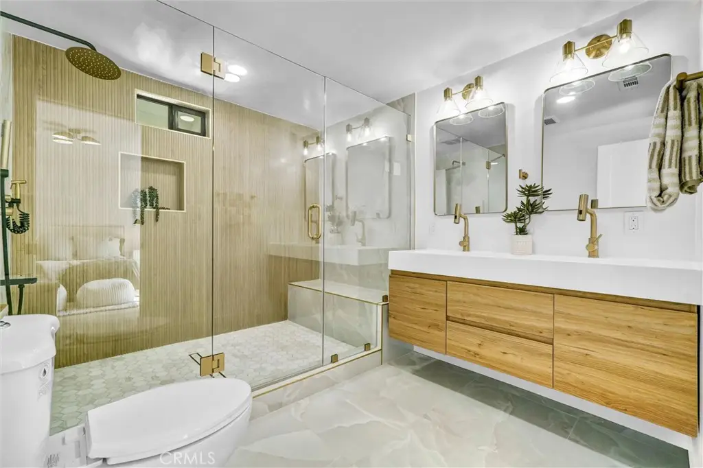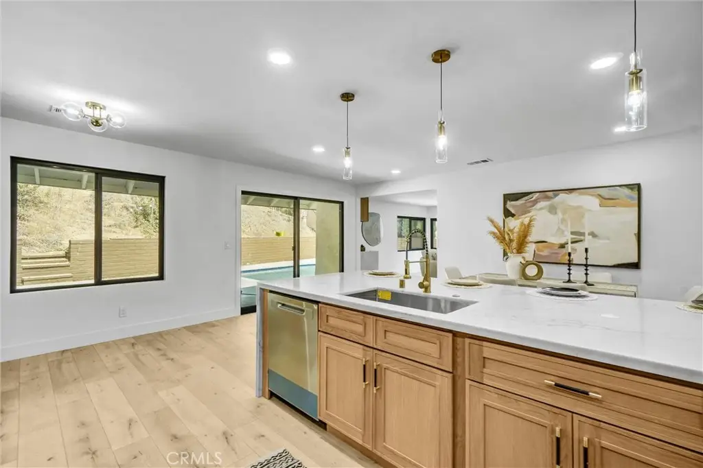 Welcome to this stunning fully remodeled 4-bedroom, 3-bath pool home located in Whittier's highly sought-after and secluded Forest neighborhood. This move-in ready home offers modern comfort and style throughout, featuring brand-new vinyl flooring, recessed lighting, and an open, airy floor plan. The chef's kitchen is equipped with quartz countertops, custom cabinetry, stainless steel appliances, a 5-burner oven, and a dishwasher -- perfect for entertaining or family gatherings. Enjoy year-round comfort with a brand-new A/C and HVAC system. The home also includes convenient in-house washer and dryer hookups. Each bathroom has been tastefully updated with designer finishes, and the spacious primary suite offers direct access to the backyard retreat. Step outside to your private oasis featuring a sparkling remodeled pool, new decking, and mature trees providing shade and privacy. A rare 3-car garage adds ample parking and storage. Ideally located near Uptown Whittier, shops, dining, and scenic trails -- this is a true Whittier gem offering resort-style living in a peaceful setting.