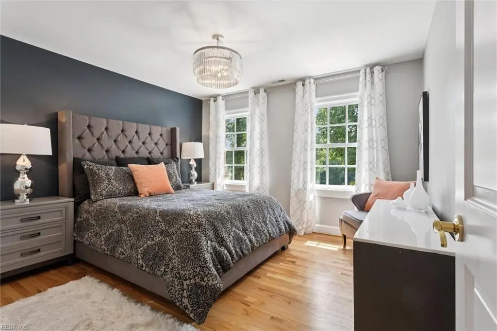 UNRIVALED GOLF AND WATER VIEWS, plus exceptional privacy, are found in this all-brick home offering breathtaking vistas of the 5th hole of the Blue Heron golf course and No. 15 of the Blackheath course. With fairways, greens and three tranquil ponds, this truly is one of the most spectacular settings in Ford's Colony! Inside, the space is defined by exquisite millwork and refined finishes. The great room with a cathedral ceiling and dramatic lighting opens to an expansive deck overlooking the views. A chef's kitchen features rich inset cabinetry and a professional-grade Viking range. Cherry floors and intricate moldings elevate the formal living and dining rooms. The four-season sunroom is perched high above the golf course and water for year-round enjoyment. A first-floor bedroom with an adjacent full bath doubles as an ideal office. Upstairs, the spacious primary suite offers a custom California closet, plus two additional bedrooms and a large bonus room.